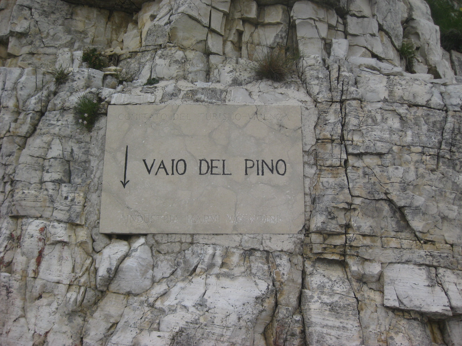 Arrivati a Ponte verde e dopo aver preso la strada per colle Xomo si incrocia una strada sterrata e li si può mettere l’auto . Dopo aver preso la strada sterrata che porta al sentiero 322 fontana d’oro si mantiene la destra al primo bivio attraversando la sbarra , si prosegue per circa 1 km passando per due canali fluviali , si arriva ad un masso sulla sinistra con una lapide , proseguendo per la strada si nota sulla montagna di fronte una larga breccia , li parte il vajo del pino , per raggiungerlo si prosegue fino ad incontrare un masso sulla sinistra , quindi si imbocca un canale fluviale a destra , si prosegue fino ad arrivare all’interno del canale molto stretto denominato Voro de Toni, da li il sentiero risulta ben segnalato .