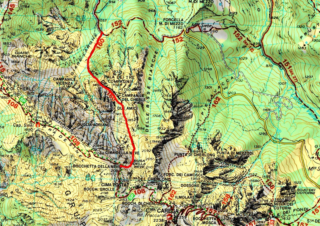 • Ciao , hai fatto bene prendere il vallon dei cavai da Ometto , e la soluzione migliore poi il 145 e un sentiero poco praticato e selvatico , anche il vallon dei cavai non è un gran che , e molto praticato nel periodo invernale per lo sci alpinismo , e conosciuto per il castello del Cherle , la Pala dei tre compagni ed il campanile del Cherle…ciaoo Buon Cammino