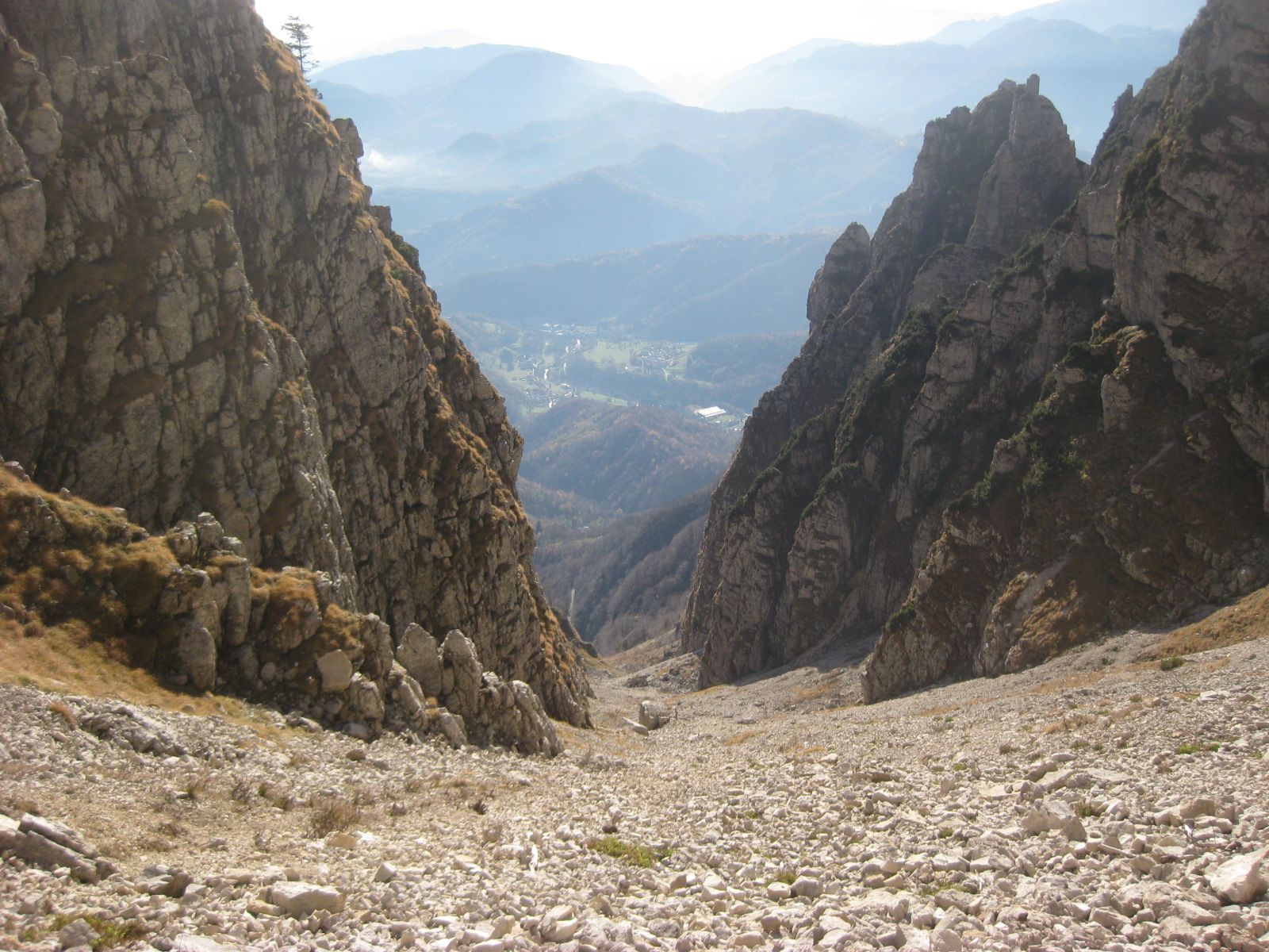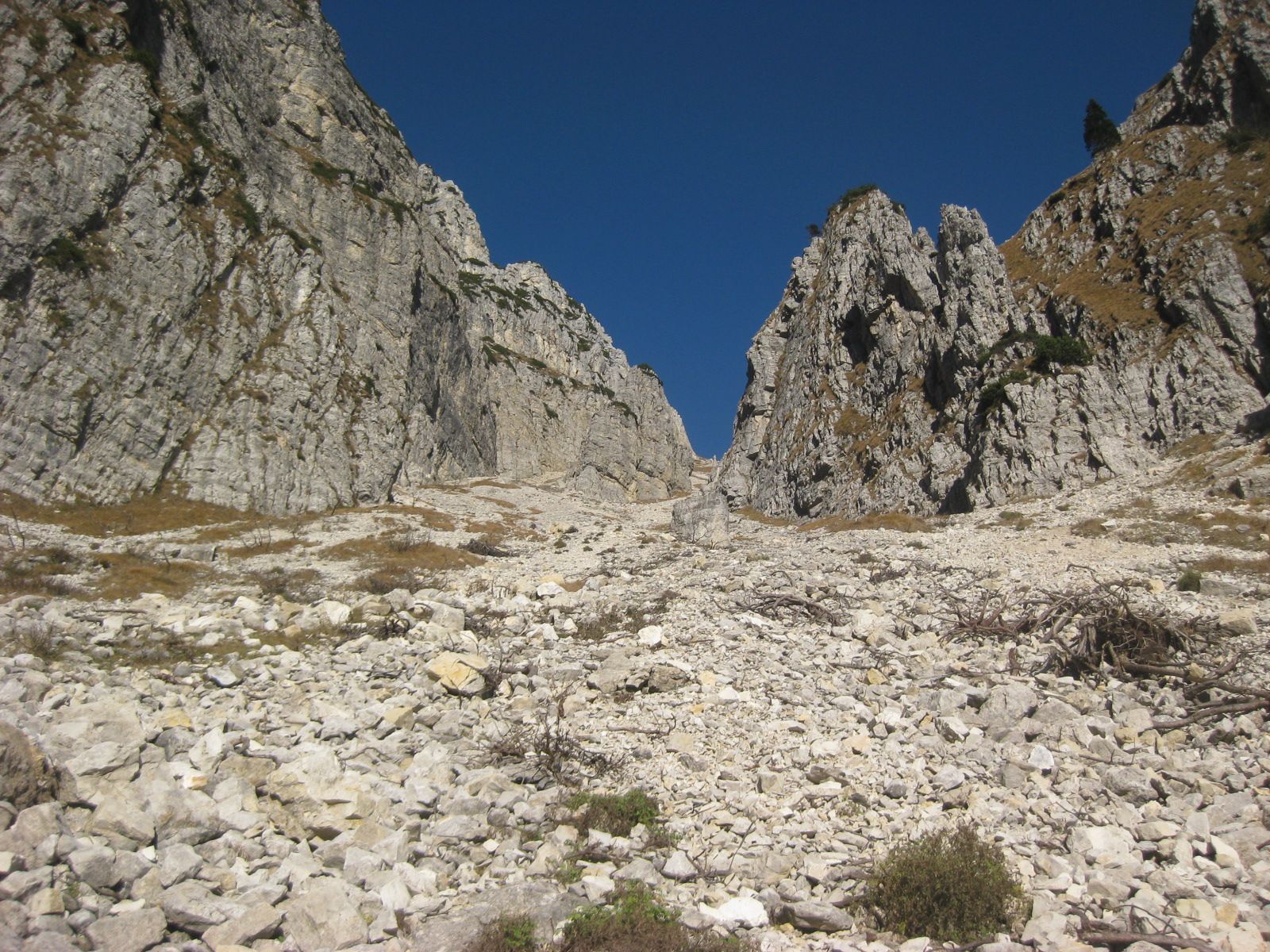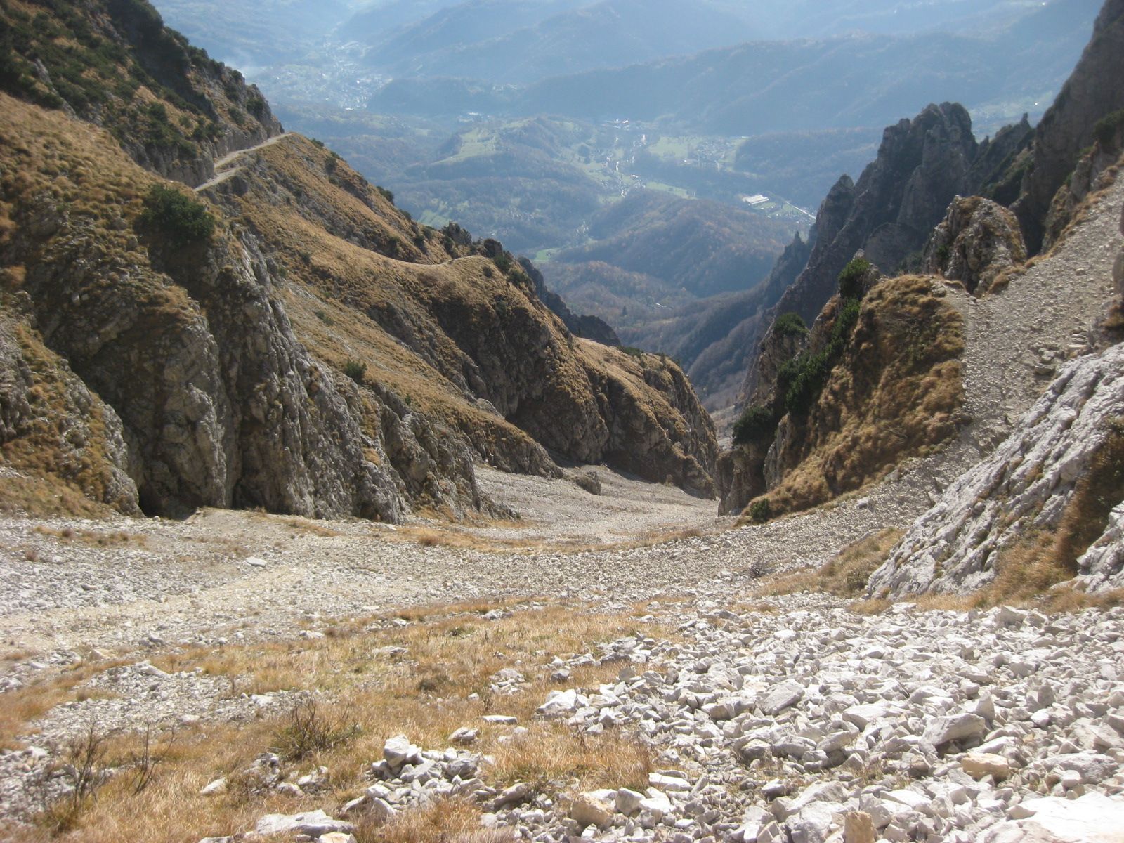 Arrivati al ponte verde , si imbocca la strada che porta a colle Xomo , arrivati in una curva molto ampia e con numerosi massi di fianco , si può notare anche un posto per mettere l’auto da li sulla sinistra inizia il percorso nella valle boschiva , il percorso è impegnativo sotto il profilo fisico non presenta pericoli dal punto di vista tecnico , dopo aver percorso il primo tratto boschivo si entra in un tratto prativo per poi procedere in mezzo ai ghiaioni in alcuni casi molto instabili , il sentiero non e segnalato ma risulta praticamente impossibile sbagliare il percorso il tempo di percorrenza e di circa 3h fino ad arrivare a forcella camossara , questo percorso e molto bello da fare anche in inverno in quanto la valle e molto ampia ed esposta al sole quindi scarica la neve subito risulta quindi poco pericoloso ed ideale per i primi approcci con i vaj invernali , la discesa può essere fatta dalla stessa valle , si raccomanda che se si volesse raggiungere il rifugio Papa dalle gallerie e necessaria l’uso della torcia , la valle sbuca tra la galleria 30-31. In eventuale si può scendere dal 322 Fontana d’oro ma poi si deve risalire fino all’auto sulla strada asfaltata
