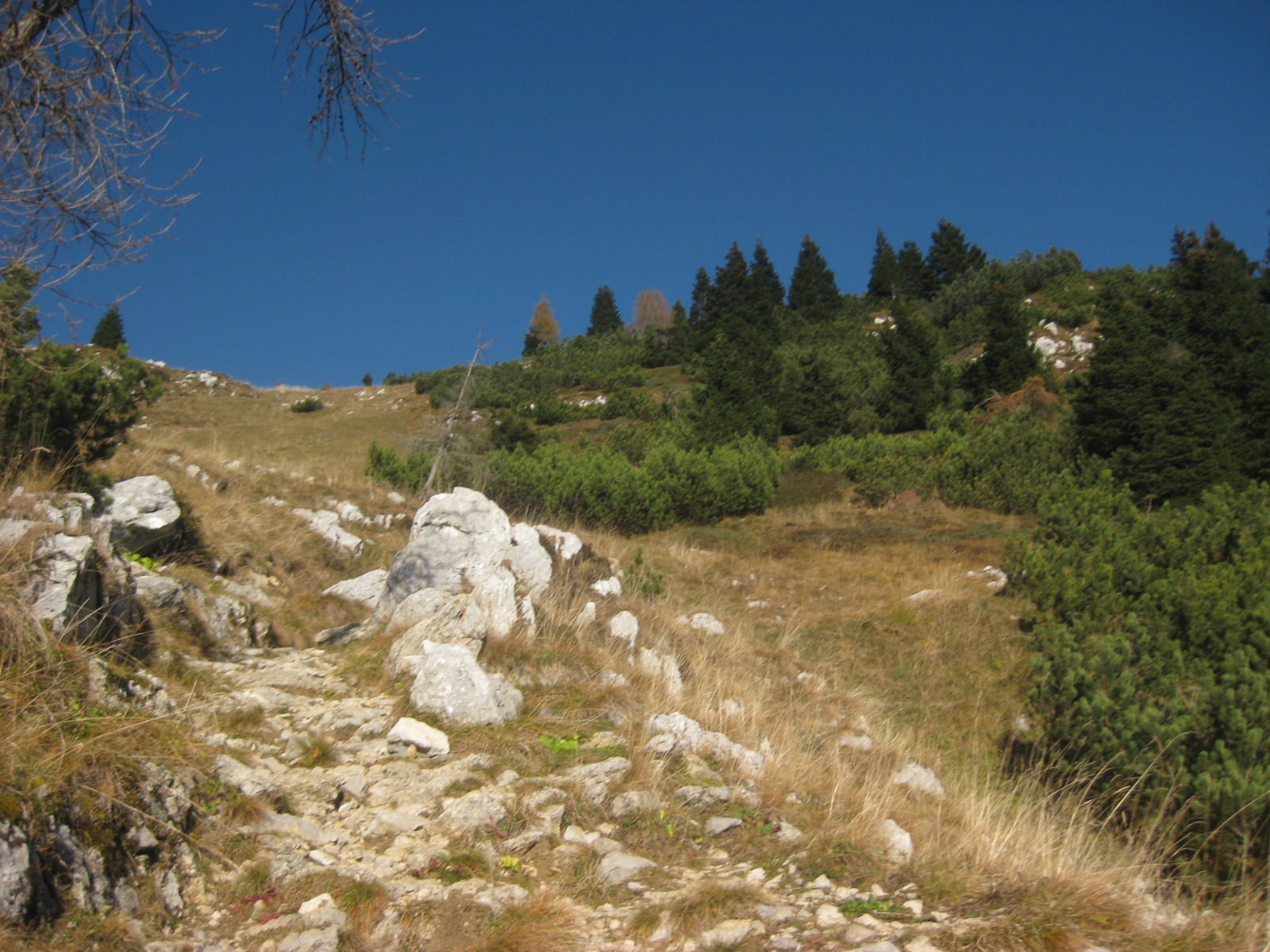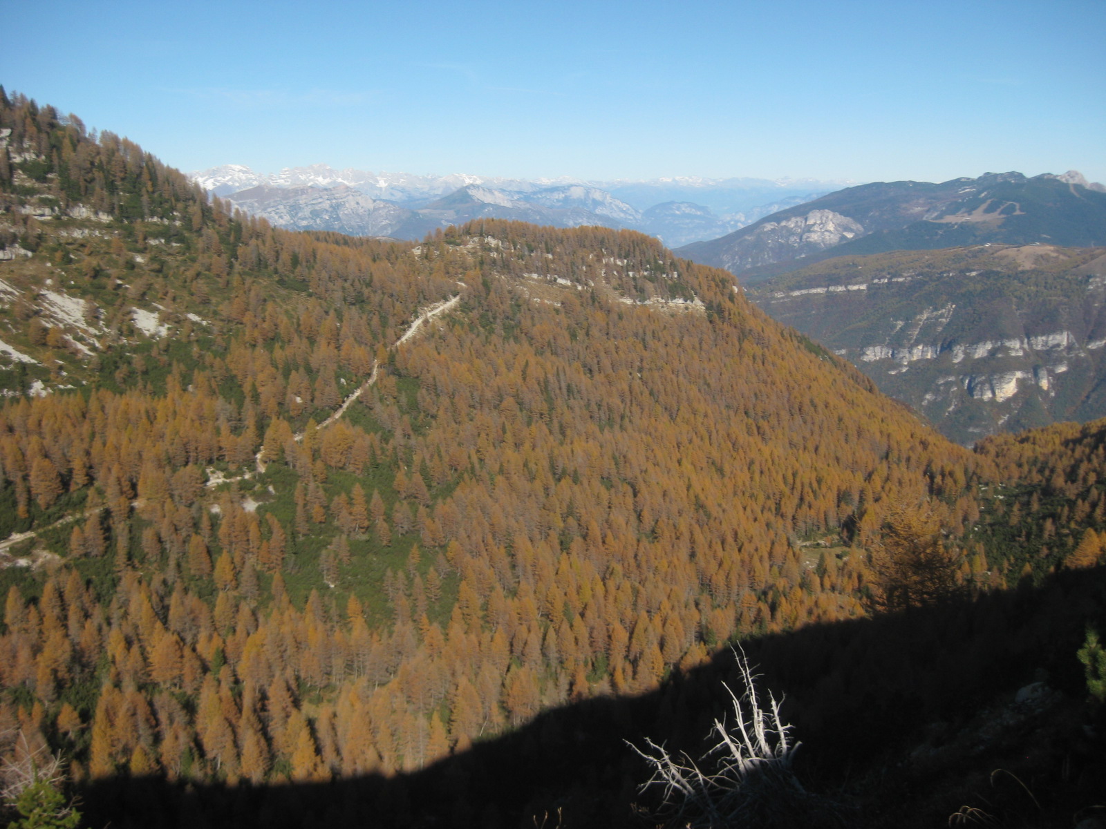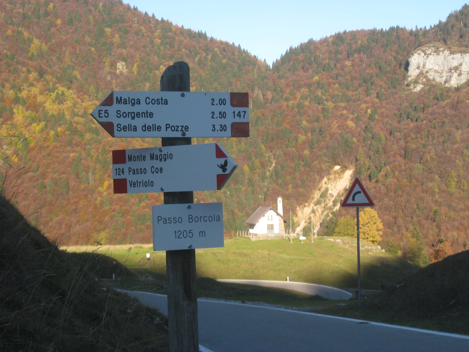 La discesa può essere fatta dallo stesso sentiero o si può prendere la 385 Val Caprara che scende sulla strada che porta al Passo della Borcola , anche se però si deve percorrere un buon tratto di strada asfaltata per risalire al Passo.