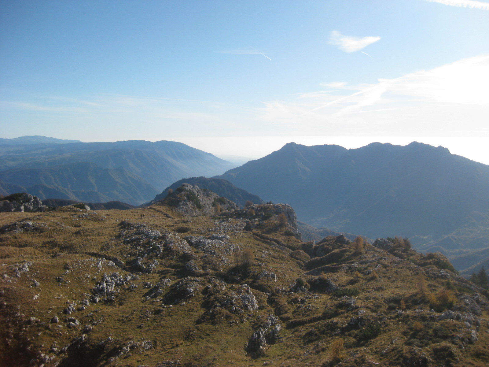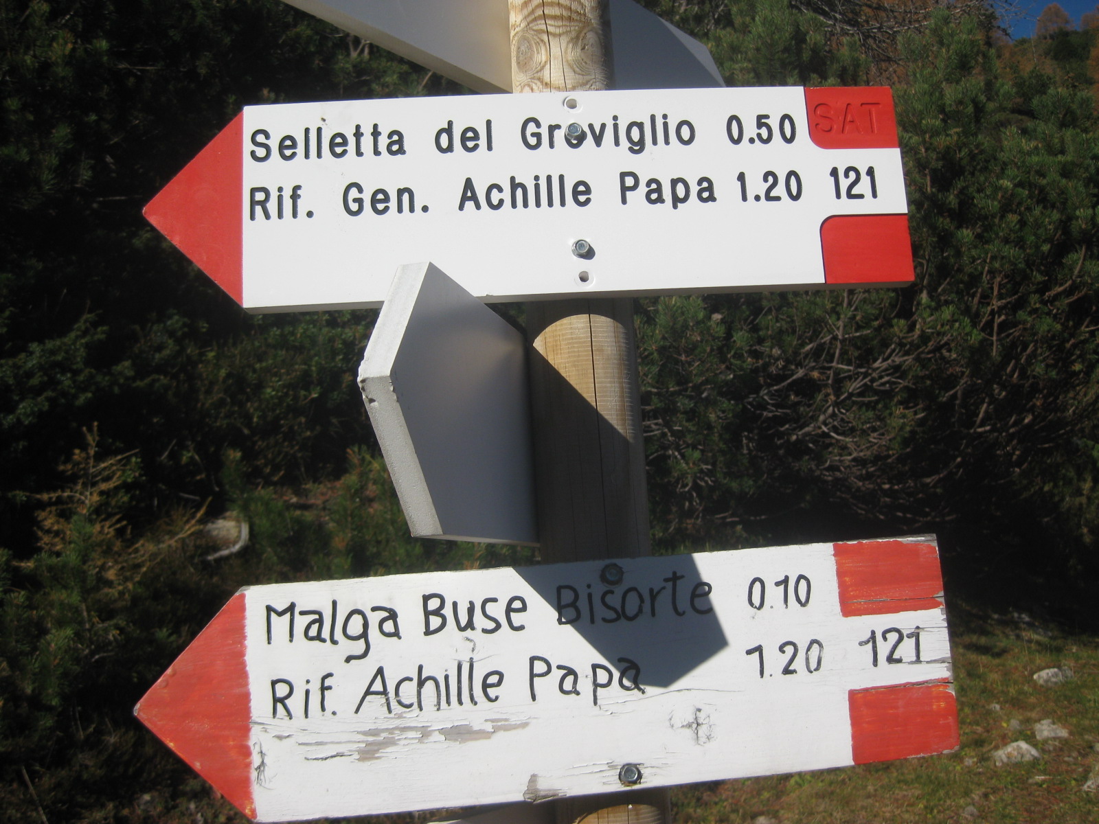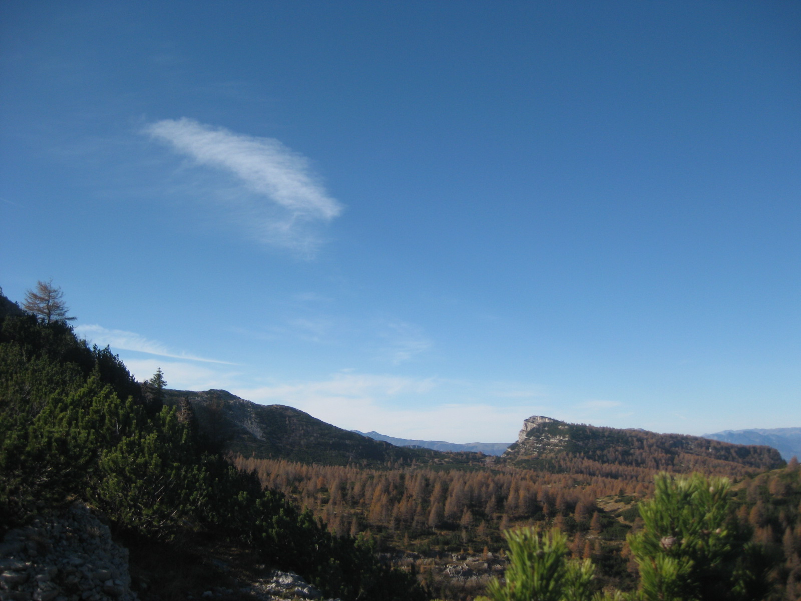 La discesa può essere fatta dallo stesso sentiero o si può prendere la 385 Val Caprara che scende sulla strada che porta al Passo della Borcola , anche se però si deve percorrere un buon tratto di strada asfaltata per risalire al Passo.