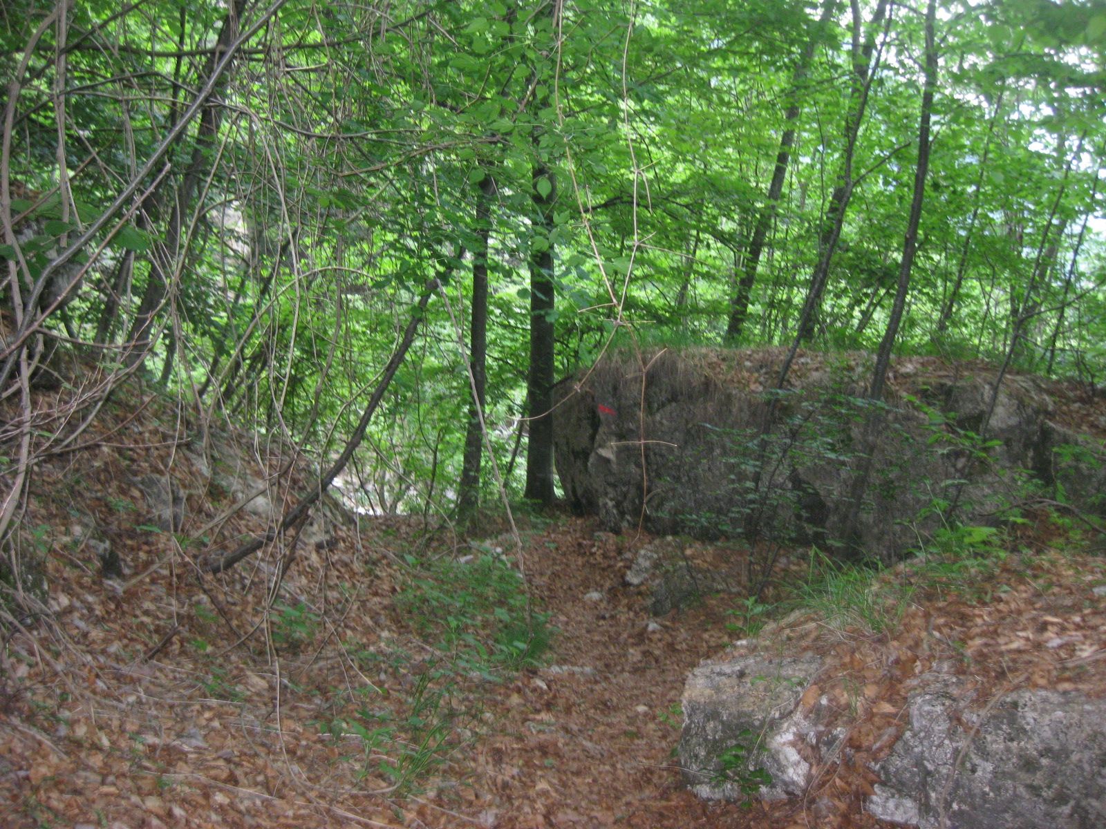 Monte Caliano quota 1622 e un contrafforte con postazioni di artiglieria in caverne , le postazioni girate verso il massiccio del Pasubio consentivano con un pezzo di artiglieria 149mm in ghisa di colpire sul dente austriaco e allo stesso tempo controllare il Passo della Borcola.