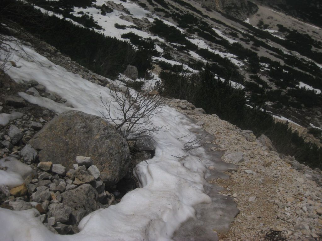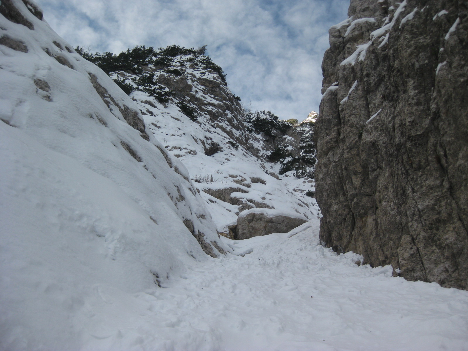 Nella salita in invernale o seminvernale e indispensabile l’uso dei ramponi e bastoncini.