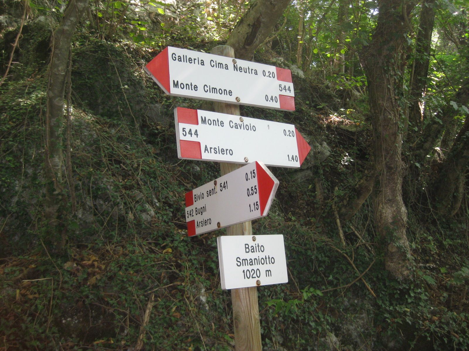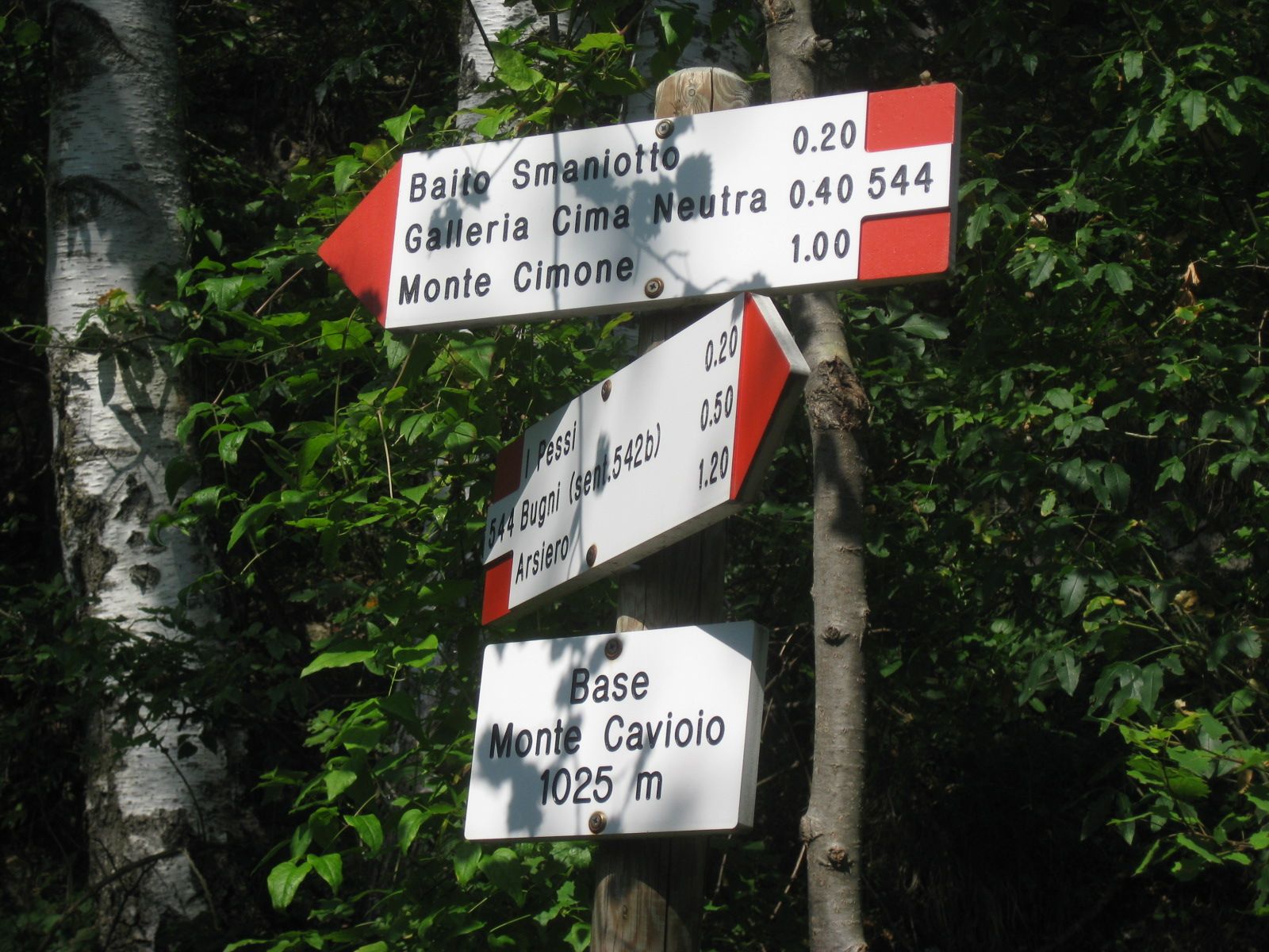 Dopo aver raggiunto l’abitato di Arsiero si posteggia l’auto in centro , si imbocca la strada provinciale che sale verso Tonezza del cimone dopo aver superato il bivio per Posina laghi arrivati ad una leggera curva si nota sulla sinistra , la partenza del sentiero 544 sale il leggera pendenza dapprima su terreno prativo , per poi entrare in un bosco , nel salire si può notare il monte priaforà sovrastante l’abitato di Arsiero , durante la salita si possono notare diverse fortificazioni militari risalenti alla grande guerra ,arrivati sulla base del monte Cavjoio si può salire fino al piccolo baito sulla sua sommita per poter vedere l’ossario del cimone ,passato questo punto si entra nel sentiero 542 segnalato tratteggiato , poi si prende per il sentiero verso la galleria quota neutra che si snoda con un complesso sistema di cunicoli fino alla cima della Quota neutra e molto bella questa parte del percorso sotto il profilo storico per la lunghezza delle scalinate interne provviste di corde fino a fuoriuscire in quota , per poi ridiscendere e risalire fino al monte cimone , da li si prosegue attraversando la parte dove e scoppiata la famosa mina e tutti gli appostamenti situati sulla Bolgia delle streghe , dopo aver superato tutta la linea fortificata del monte cimone si inizia a scendere verso la località scalini di Valdastico attraverso il sentiero 547 che passa in diverse linee fortificate prima di scendere fino ad Arsiero . Oppure come si può vedere dalla cartina si scende dal 542 ritornando così in centro ad Arsiero .Si ricorda inoltre che sul Monte Cimone si può salire anche in auto prendendo la strada di Tonezza