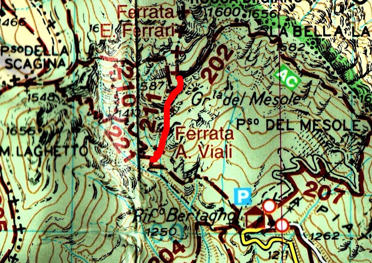 La ferrata Angelo Viali o meglio conosciuta come ferrata del gramolon la si può percorrere sia andando al rifugio Bertagnoli in auto , attraverso la valle del Chiampo salendo verso Campodalbero e proseguendo fino al Rifugio , o altrimenti percorrendo dalla località Gazza , rifugio Cesare Battisti , attraverso il 121 sentiero Passo Ristele , per poi scendere fino al Passo della Scaggina ed imboccare il 221 Rifugio Bertagnoli , prima di arrivare al rifugio , si incrocia la ferrata.