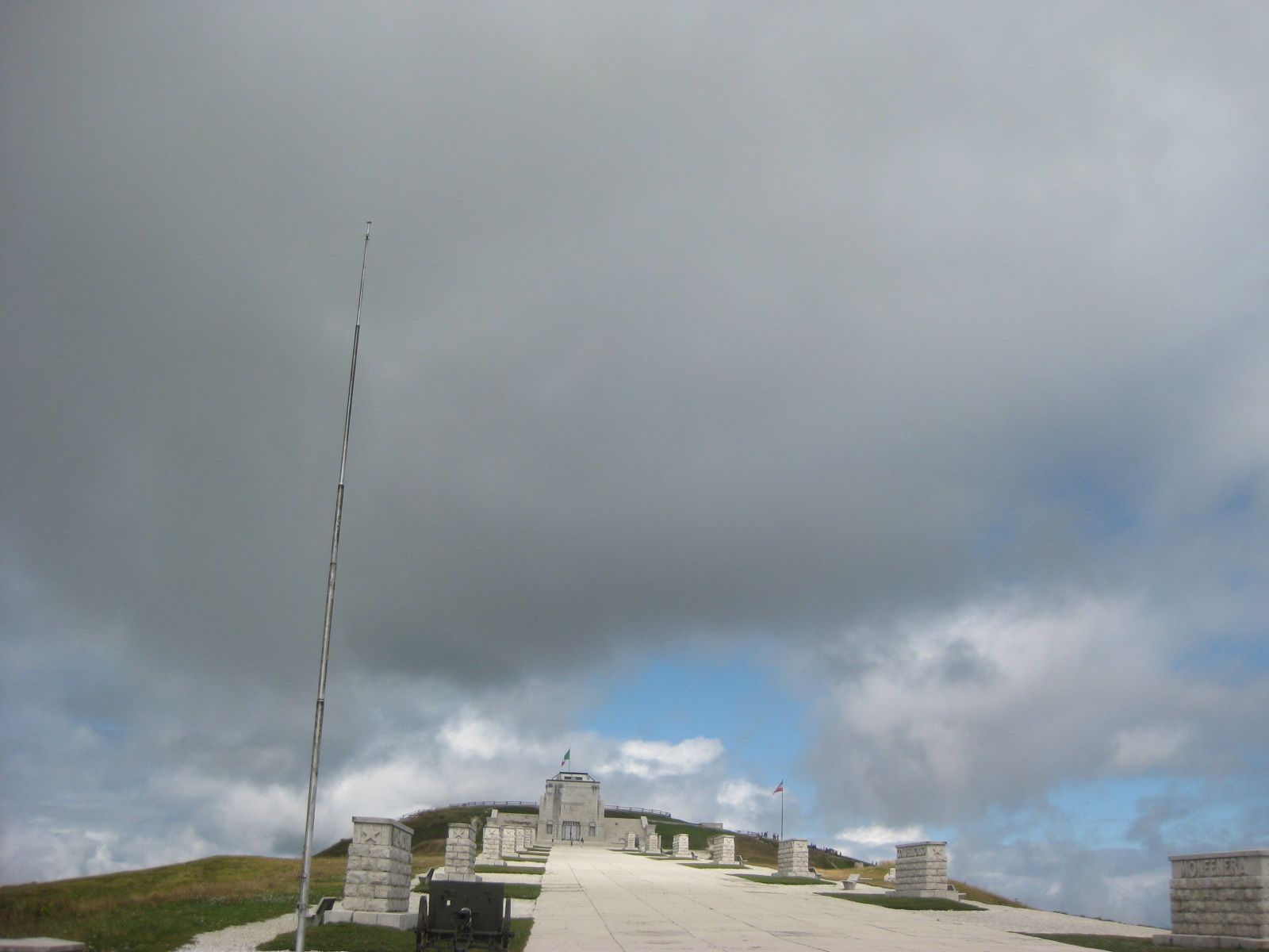 Tra i due ossari, c’è la cosiddetta via Eroica lunga 300 metri, con a lato i cippi recanti i nomi delle cime teatro di guerra.