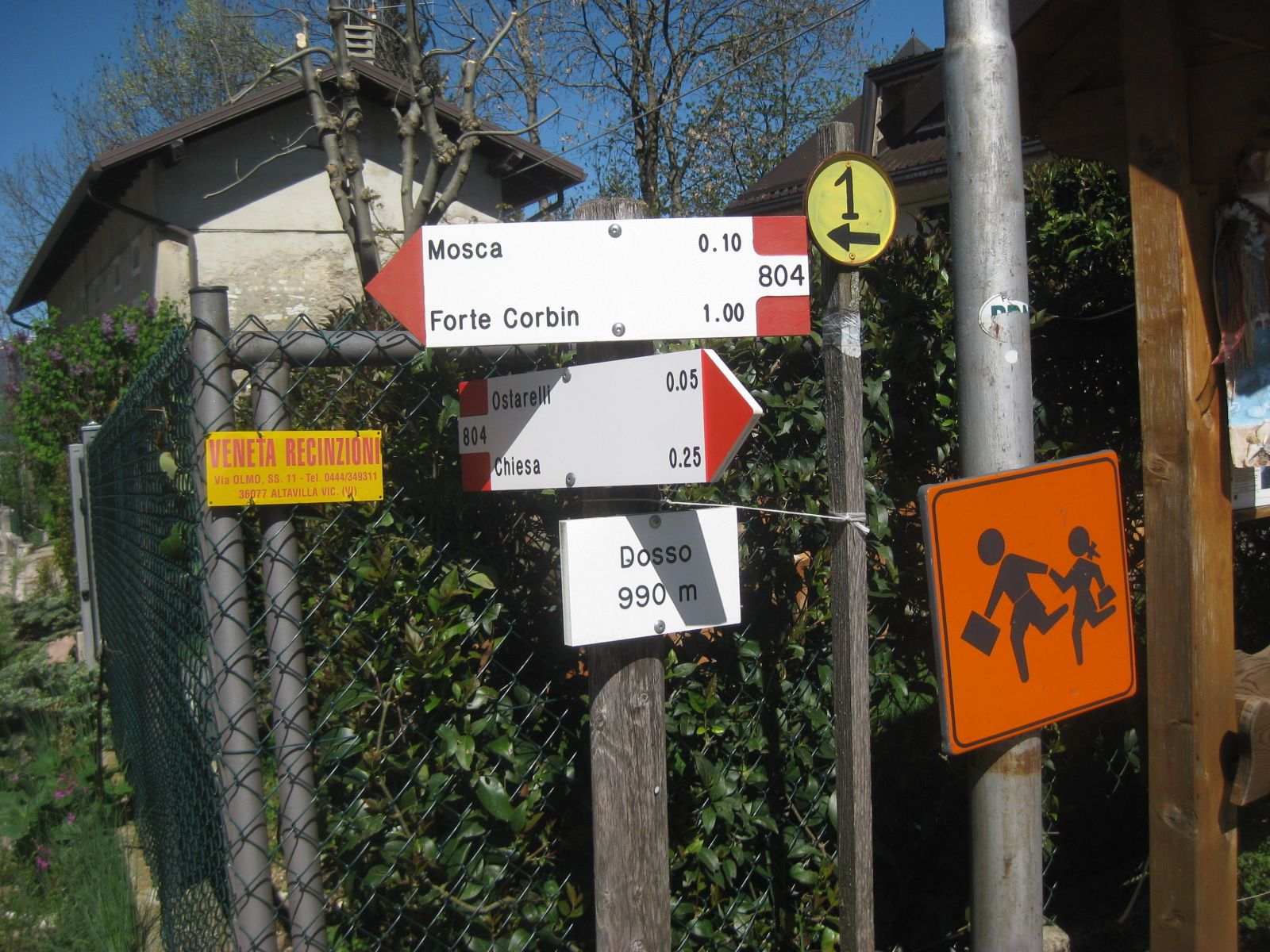 Questo sentiero viene utilizzato generalmente per raggiungere il forte Punta Corbin a piedi , oppure da chi sale dal 635 Pedescala – Forte Punta Corbin per arrivare al bivio in località Mosca con il 633 per ritornare a Pedescala . Presenta una variante segnalata solo in alcune carte , cioè quella che porta ad Albaredo se presa assieme al 635 risulta molto impegnativa visto il dislivello del secondo tratto (quella tratteggiata) . Questo sentiero e molto accessibile a tutti presenta anche molti particolari interessanti nel periodo primaverile e una parte del percorso e una mulattiera , mentre invece dopo l’uscita dal forte e prativo veramente molto bello . Le foto per ragioni di collegamento partono da Punta Corbin .