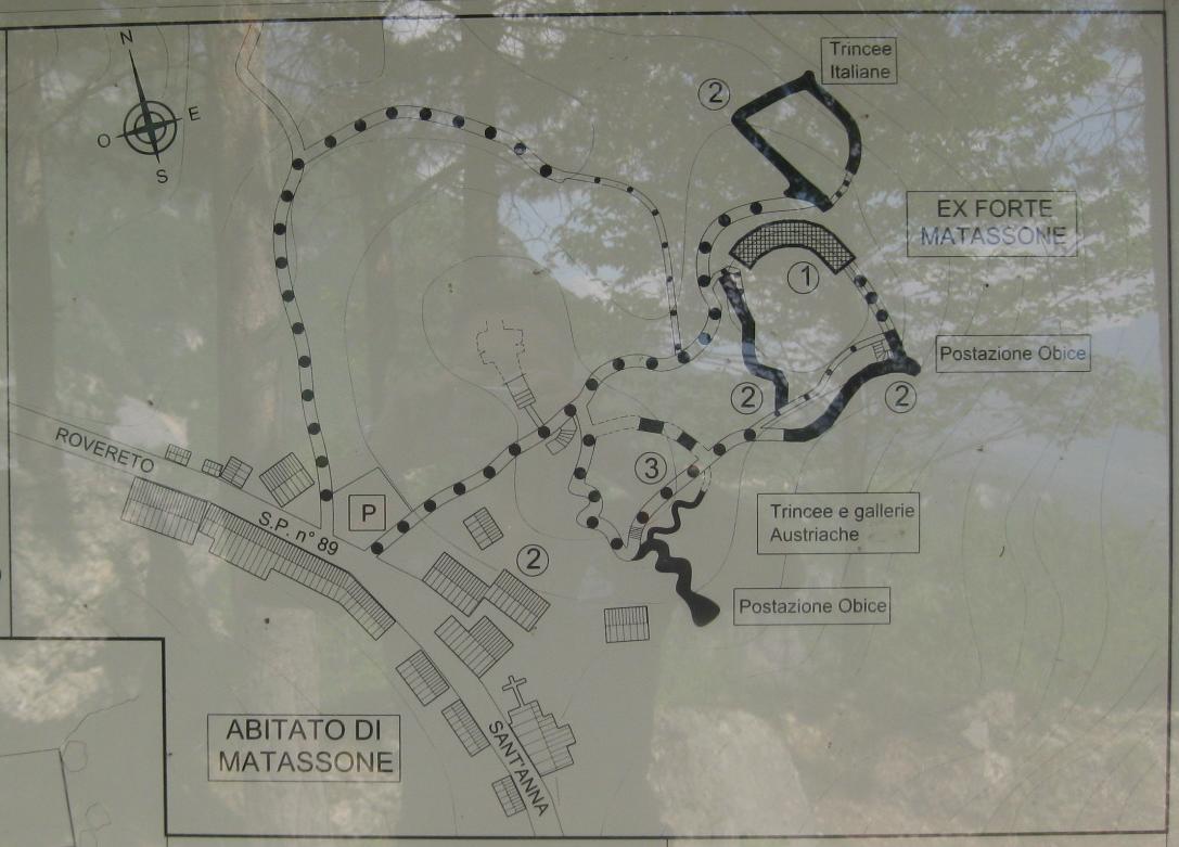 Tratti rossi : sono i collegamenti con i sentieri del CAI che portano nella via del tabacco (e che servono quindi eventualmente a tornare sulla strada Principale asfaltata)