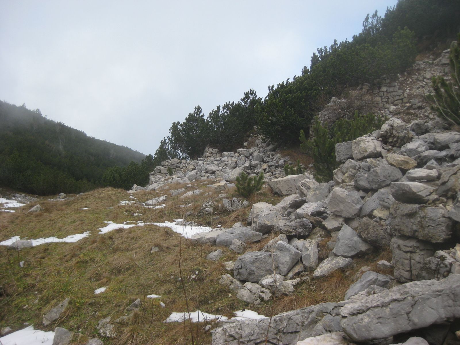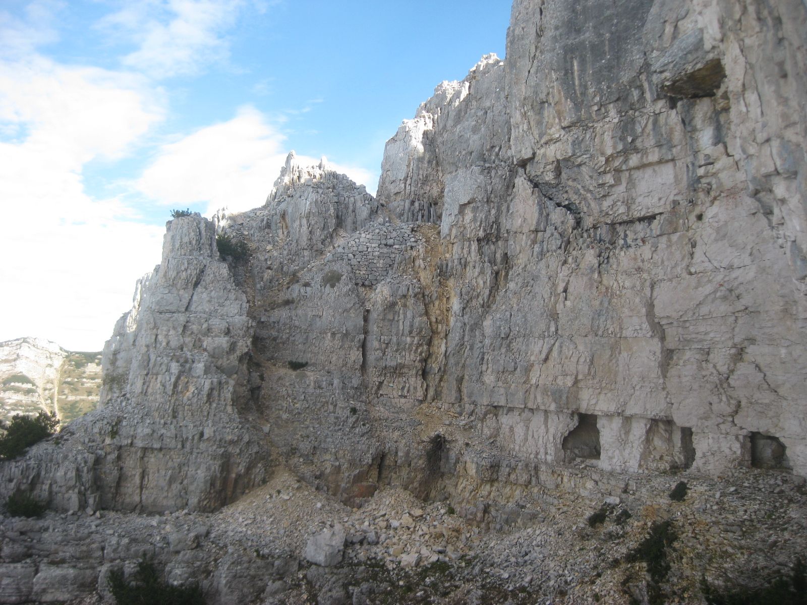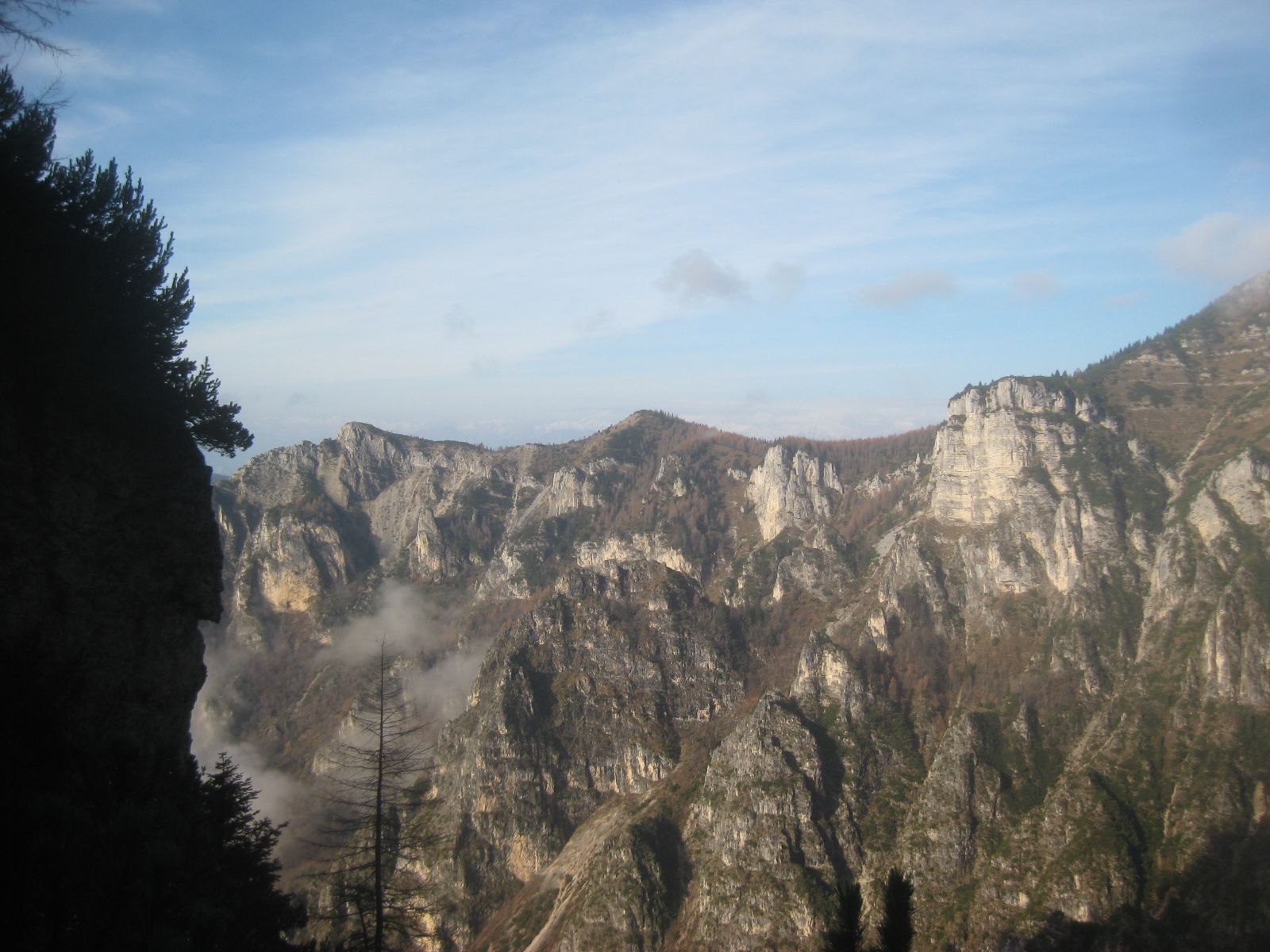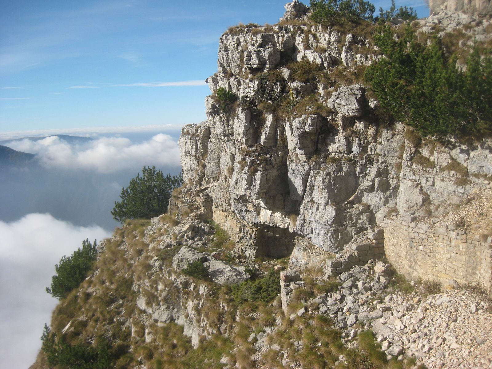 quindi se ben capisco potrei partire con la sola attrezzatura da ferrata, ed evitare il pezzo descritto come alpinistico da fare in cordata e calare lungo la trincea verso la Malga, oppure ritornare indietro e fare l’arroccamento della Lora sbucando alla sella di Cosmagnon.