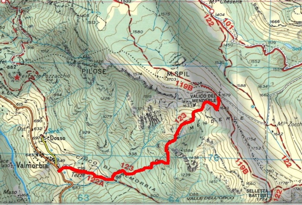 Dopo aver superato il pian delle Fugazze proseguendo verso Rovereto si arriva all’abitato di Val Morbia , si posteggia l’auto e si sale a destra prendendo il sentiero 122 prima che porta verso il Monte Trappola e poi 123 Valico del Menderle sentiero molto bello e con nessuna difficoltà tecnica ma richiede una buona preparazione fisica , viste alcuni tratti con pendenze rilevanti, arrivati al Valico per andare al rifugio Lancia si può proseguire sulla carrareccia che passa per il valico e prosegue verso malga Zocchi ed arrivando al Lancia dalla strada sterrata . Se non si vuole passare dal Rifugio Lancia si può proseguire verso sinistra scendendo prima il 119B e poi il 119 fino a scendere al Paese Pozzacchio , da li bisogna salire sulla militare che prima porta al Werk Valmorbia Pozzacchio e poi attraverso un sentiero fino a Dosso di Valmorbia . In ogni caso il consiglio che mi posso permettere di dare e di salire prendendo il 119B a destra fino alla selletta Battisti dove furono catturati Battisti e Filzi per poi salire nell’omonimo corno Battisti , conosciuto anche come corno di Vallarsa . Ci sono anche altri itinerari percorribili sia per arrivare al rifugio Lancia che scendere all’auto ma devono essere ben ponderati , in quanto richiedono un tempi di percorrenza molto più lunghi .