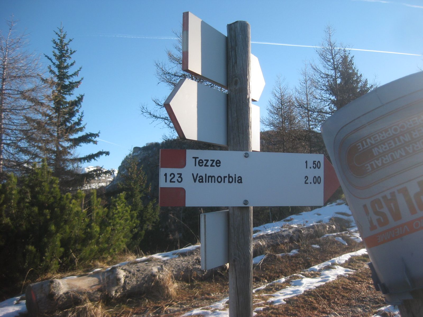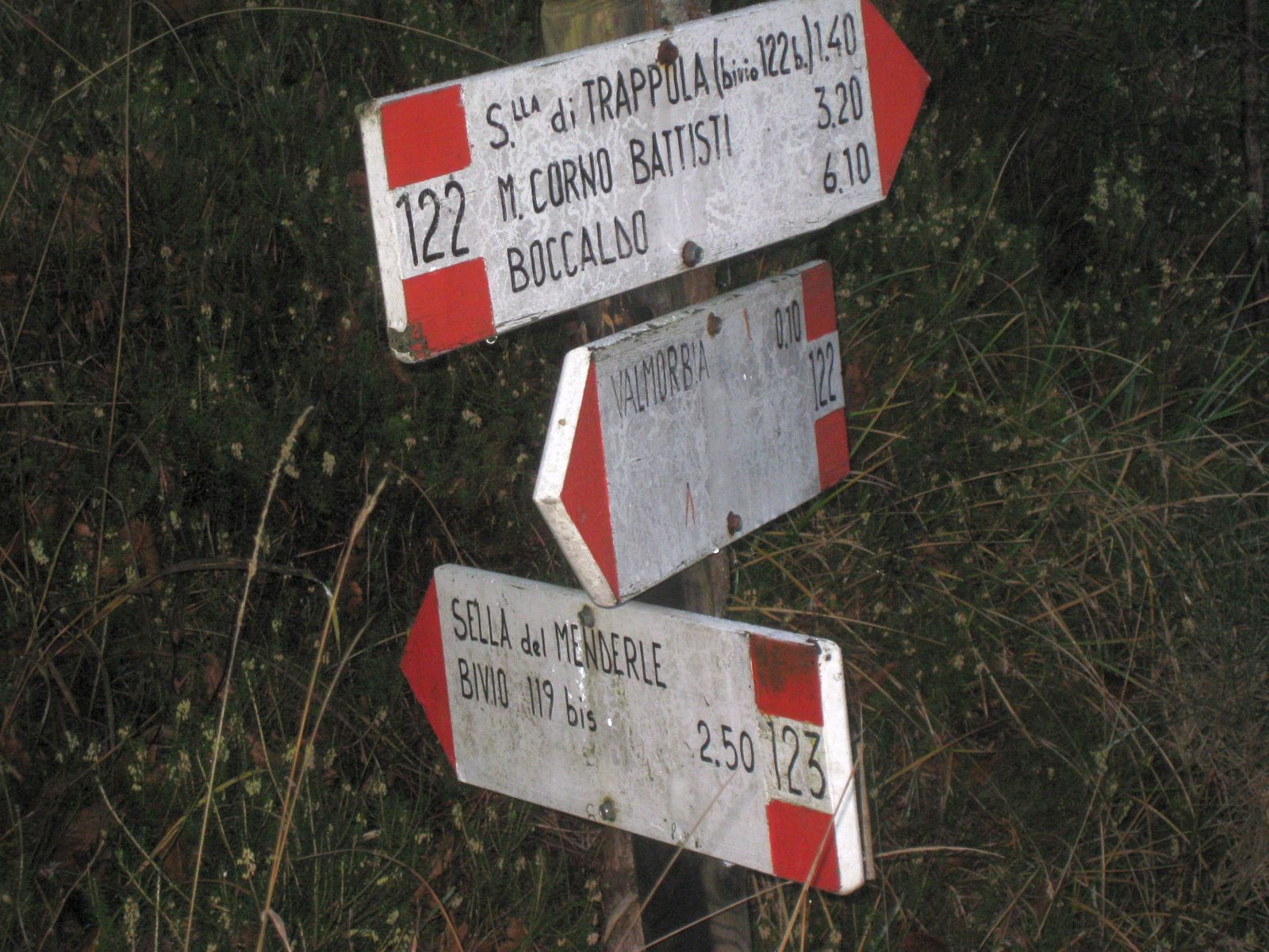 Si può anche proseguire da una via alternativa passando per la selletta Battisti per poi attraverso il 122 Bocchetta delle Foxi e il 102 Bocchetta delle corde o il 102B per il monte Testo fino arrivare al Rifugio Lancia( molto più lungo) , se non si vuole passare dal Rifugio Lancia si può proseguire scendendo prima il 122B e poi il 122 fino a scendere di nuovo a Dosso di Valmorbia .