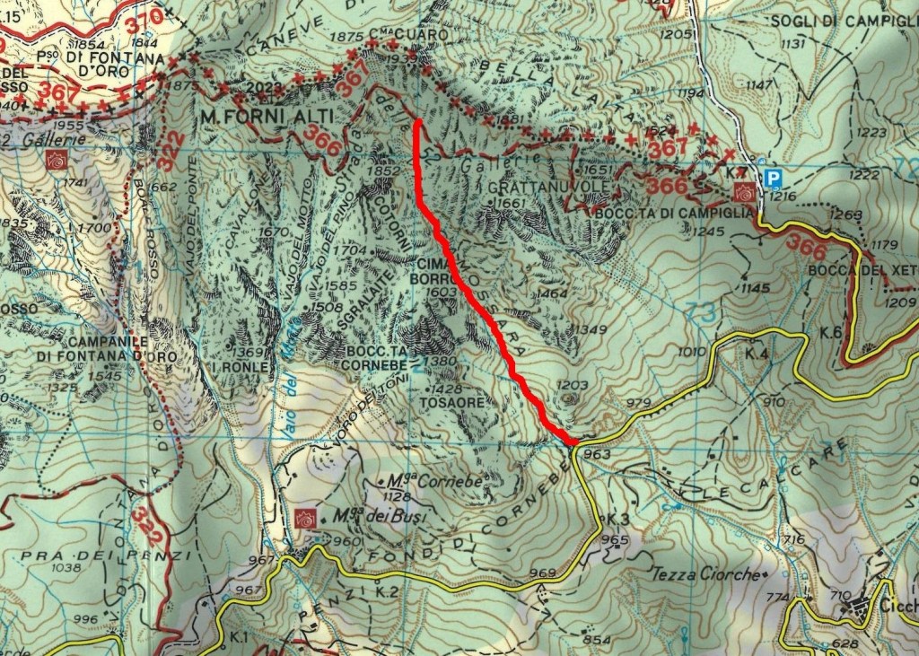 Arrivati al ponte verde , si imbocca la strada che porta a colle Xomo , arrivati in una curva molto ampia e con numerosi massi di fianco , si può notare anche un posto per mettere l’auto da li sulla sinistra inizia il percorso nella valle boschiva che normalmente e poco innevata, il percorso è impegnativo sotto il profilo fisico non presenta pericoli dal punto di vista tecnico , dopo aver percorso il primo tratto boschivo si entra in un tratto aperto quindi abbondantemente innevato , il sentiero non e segnalato ma risulta praticamente impossibile sbagliare il percorso il tempo di percorrenza e di circa 3h fino ad arrivare a forcella camossara , questo percorso e molto bello da fare la valle e molto ampia ed esposta al sole quindi scarica la neve subito risulta quindi poco pericoloso ed ideale per i primi approcci con i vaj invernali , la discesa può essere fatta dalla stessa valle , si raccomanda che se si volesse raggiungere il rifugio Papa dalle gallerie e necessaria l’uso della torcia , la valle sbuca tra la galleria 30-31. In eventuale si può scendere dal 322 Fontana d’oro ma poi si deve risalire fino all’auto sulla strada asfaltata