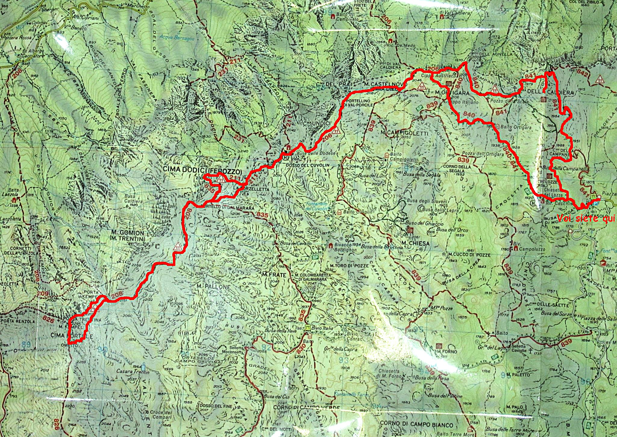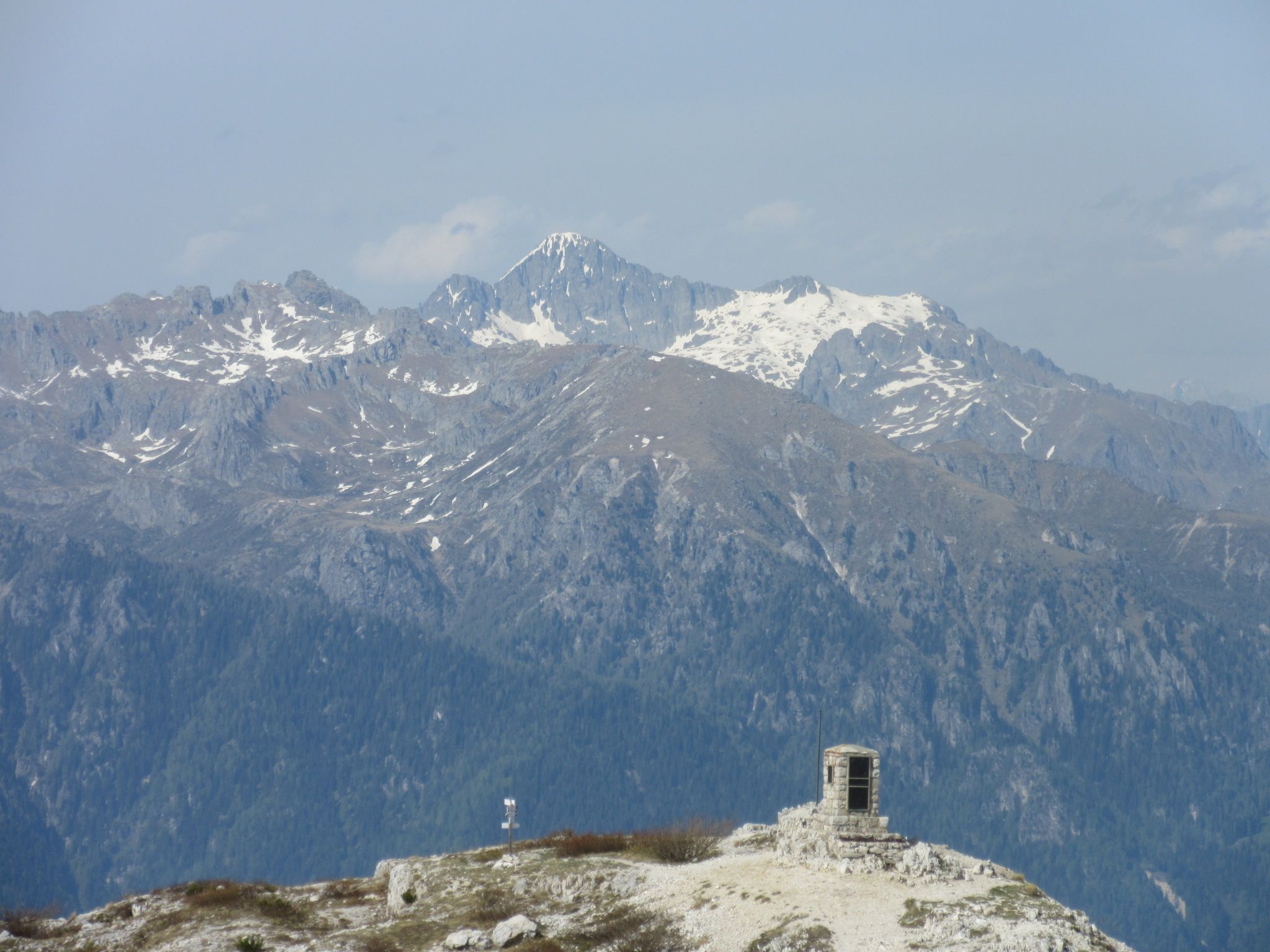 Ma tutto cambia quando lo si vuole descrivere donando ai propri lettori una parte di emozioni uniche che si possono provare solo salendo su questo luogo considerato “Terra Sacra agli Alpini” , io ci sono salito con mio padre da bambino , che puntualmente partecipava a tutte le adunate , ma questa ha un fascino particolare ” il Campo di Battaglia” un terreno grullo , una pietraia nessun’albero solo tanti mughi , con tante ferite aperte , da trinceramenti e feritoie per armi di piccolo , medio e anche di grossi calibri , un terreno pieno di buchi di granate che ne hanno dato la forma , ma per descriverlo in tutta la sua grandezza bastano solo tre parole scritte con una semplicità unica sulla colonna mozza “PER NON DIMENTICARE “ , e devo dire che ogni volta che ne parlo e percorro questi luoghi mi assale una fortissima emozione e ancora adesso scrivendo queste poche righe mi assale un senso di commozione … che spero di suscitare anche in voi , quando e se un giorno vi salirete…