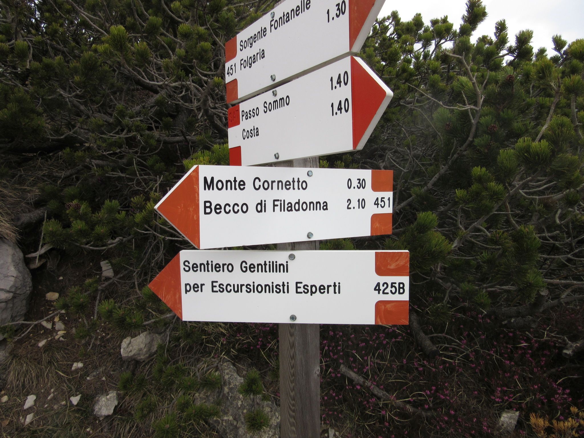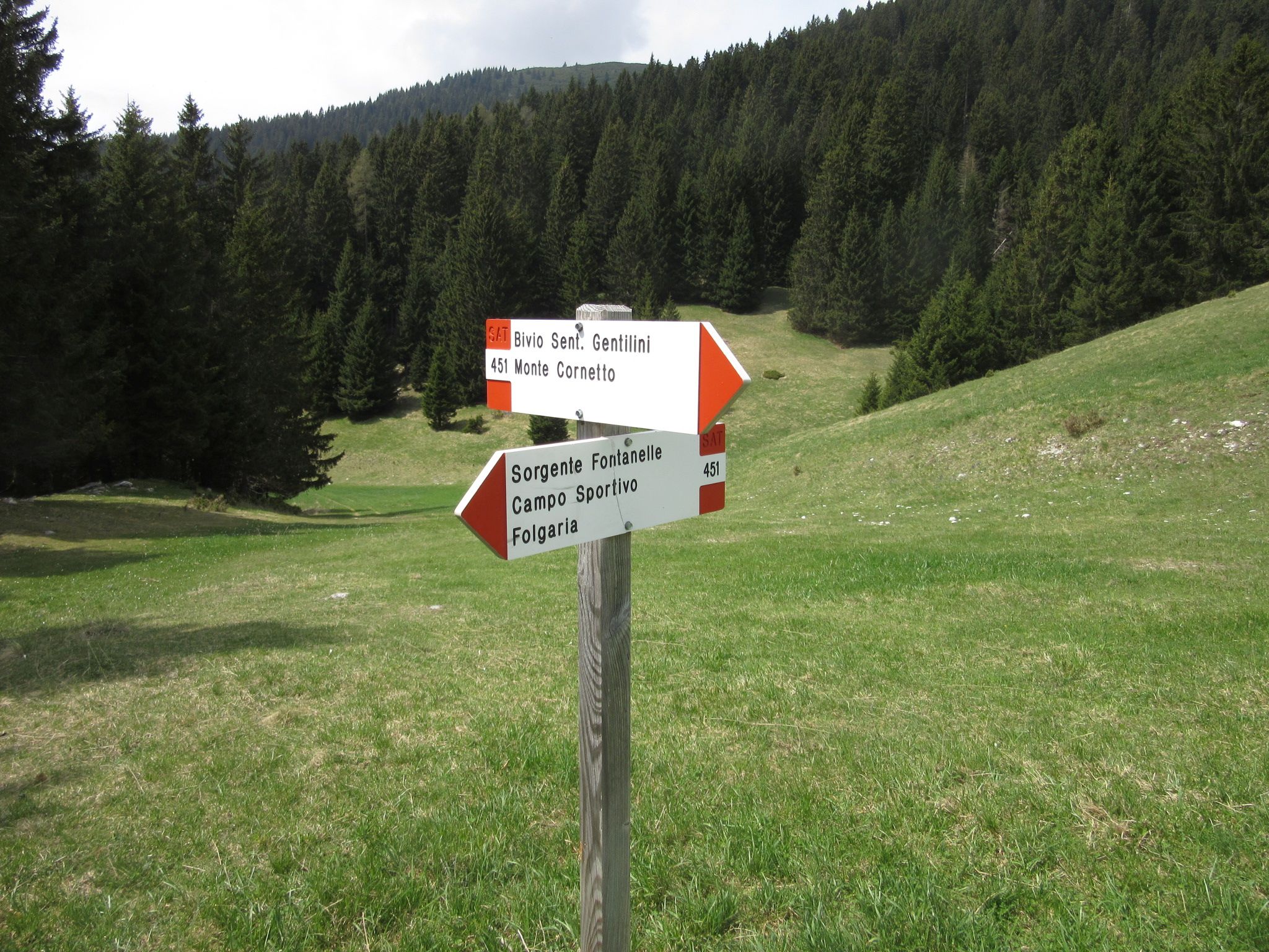 Per arrivare a questo sentiero un pò fuori portata , si sale con l’auto fino a Folgaria , cittadina molto bella , per raggiungerla ci sono diverse strade tutte però con diversi km di strada di montagna , io ci sono salito da Tonezza del Cimone . Comunque credo che la via migliore sia la Valdastico passando per Lastebasse e Carbonare . Arrivati in centro si prosegue per il campo sportivo , li si puo mettere l’auto oppure nel primo posteggio che si trova , io l’ho messa in via del parco ( dove si trova un parco per bambini ) posteggio gratuito , visto che era anche a metà strada tra il sentiero 425 e 451 , tornando in dietro si trovano le segnalazioni per il sentiero risalendo prima una valle , e poi attraverso una carrareccia si entra nella parte boschiva , per poi uscire in un zona prativa adibita a piste da sci , ora in disuso , da li si sale con facilità il sentiero e molto bello e poco difficile anzi molto rilassante , anche se ovviamente in salita , si passa vicino ad una fontana molto carina e ad un bivio che porta al rifugio Paradiso gia segnalato in un ‘altro post , si continua a salire fino a monte cornetto , dove tempo permettendo si offre un panorama incredibile a 360 gradi , da li si può salire ancora oppure discendere per il 425 che va chiudere ad anello il percorso .