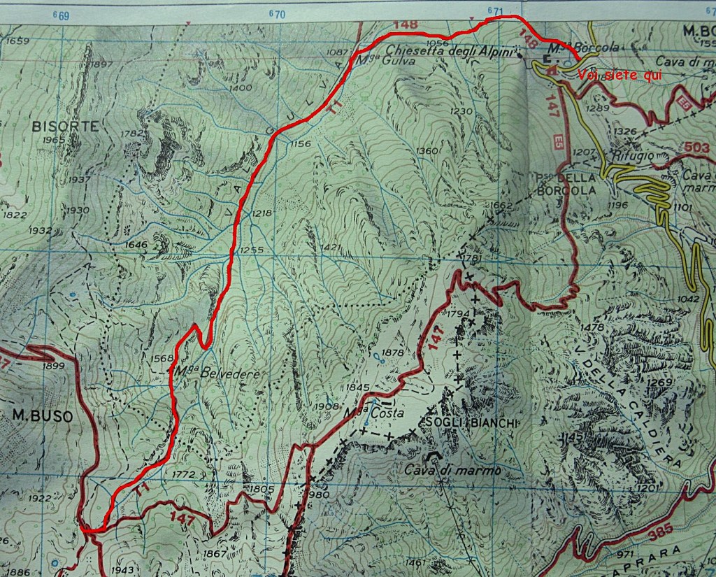 Si sale da Posina fino al Passo della Borcola dove si può posteggiare l’auto , si scende fino alla Malga Borcola e sotto il laghetto parte il sentiero 148 Passo Lucco , ( in alcune mappe il sentiero risulta segnalato con T1 , mentre in altre non viene nemmeno riportato ) la prima parte fino alla Malga Gulva e bellissimo con le staccionate molto rustiche , arrivati alla malga poi si sale mantenendo la malga a sinistra per la strada forestale fino ad arrivare alla fine della stessa , da lo bisogna imboccare il bosco , il percorso è misto tratti boschivo e alcuni tratti sul canale fluviale , non presenta difficoltà alpinistiche ed è abbastanza segnalato anche se i segnavia sono deteriorati nel tempo ed in alcuni casi si vedono poco il tracciato sale fino a Sorgente dove si trova il bivio di malga Buse Bisorte , da li se si prende la sinistra si va verso malga costa con il sentiero 147 così facendo si potrebbe scendere al passo della Borcola . Mentre attraverso il 121 ed il 121A si possono vedere le numerose postazioni e ricoveri degli austroungarici per poi raggiungere la selletta del groviglio e prendere il 147A sul crinale della prima linea austriaca e salire verso malga Costa per poi scendere fino al passo della Borcola , questa è a mio avviso la via più bella . Tuttavia si può anche scendere dal 148 che porta fino a malga Borcola , per arrivare su quel sentiero si deve tenere la destra giunti a Sorgente , arrivati sul bivio successivo tenendo la destra si scende per il 133 strada delle malghe e poi il 144 per la Val zuccaria , entrando alla fine nel 148 malga Gulva e passo della borcola il sentiero è molto bello con uno splendido sottobosco in buone condizioni e ben segnalato.