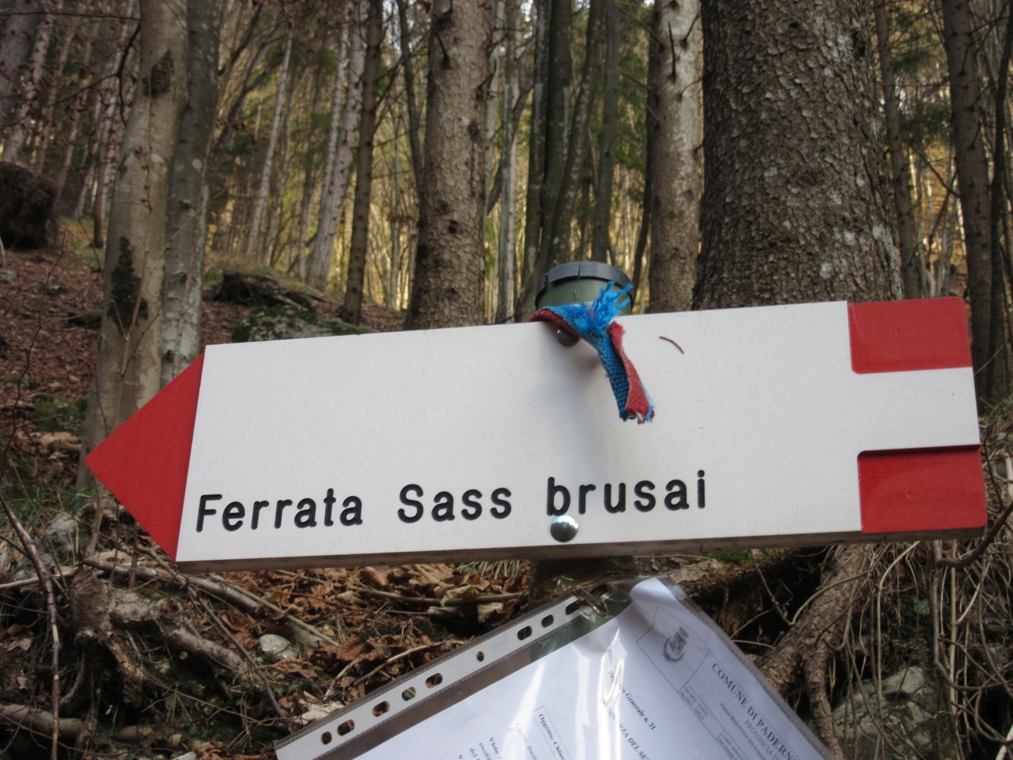 Volelo solo segnalare che la Ferrata sassi brusai e chiusa con un’ordinanza del sindaco a causa della rottura di un tirante sul ponte tibetano situato alla fine della ferrata , secondo il mio punto di vista sarebbe stato più facile sostituire il tirante che non mettere quei assurdi cartelli . Resta per tanto il divieto di percorrere la ferrata . Anche qui mi viene un dubbio in quanto la ferrata e percorribile tranne che nel ponte tibetano , quindi si poteva chiudere solo il tratto interessato visto poco prima del ponte si può raggiungere il sentiero 152 per arrivare nello stesso punto della ferrata .Ciao Buon Cammino