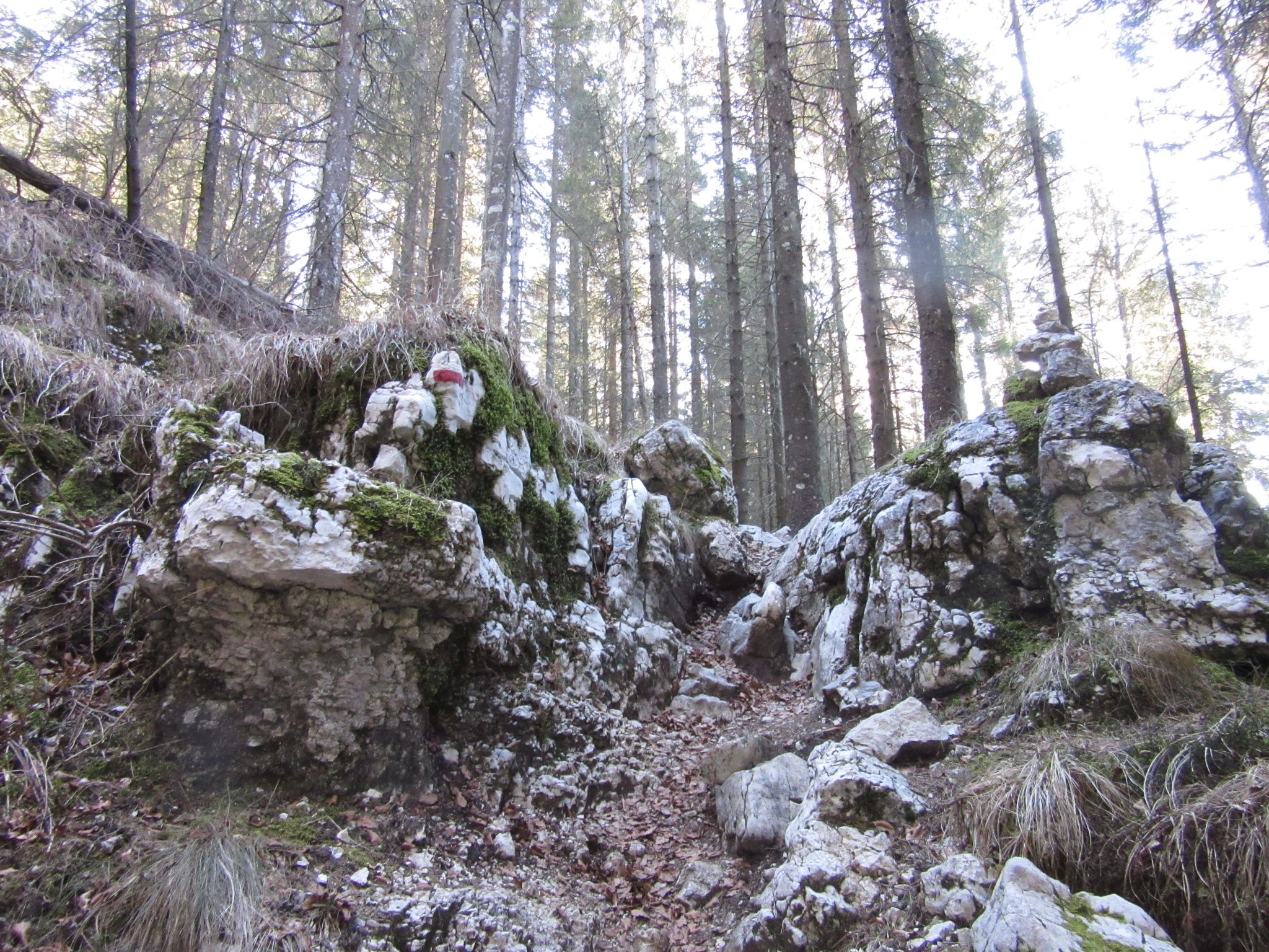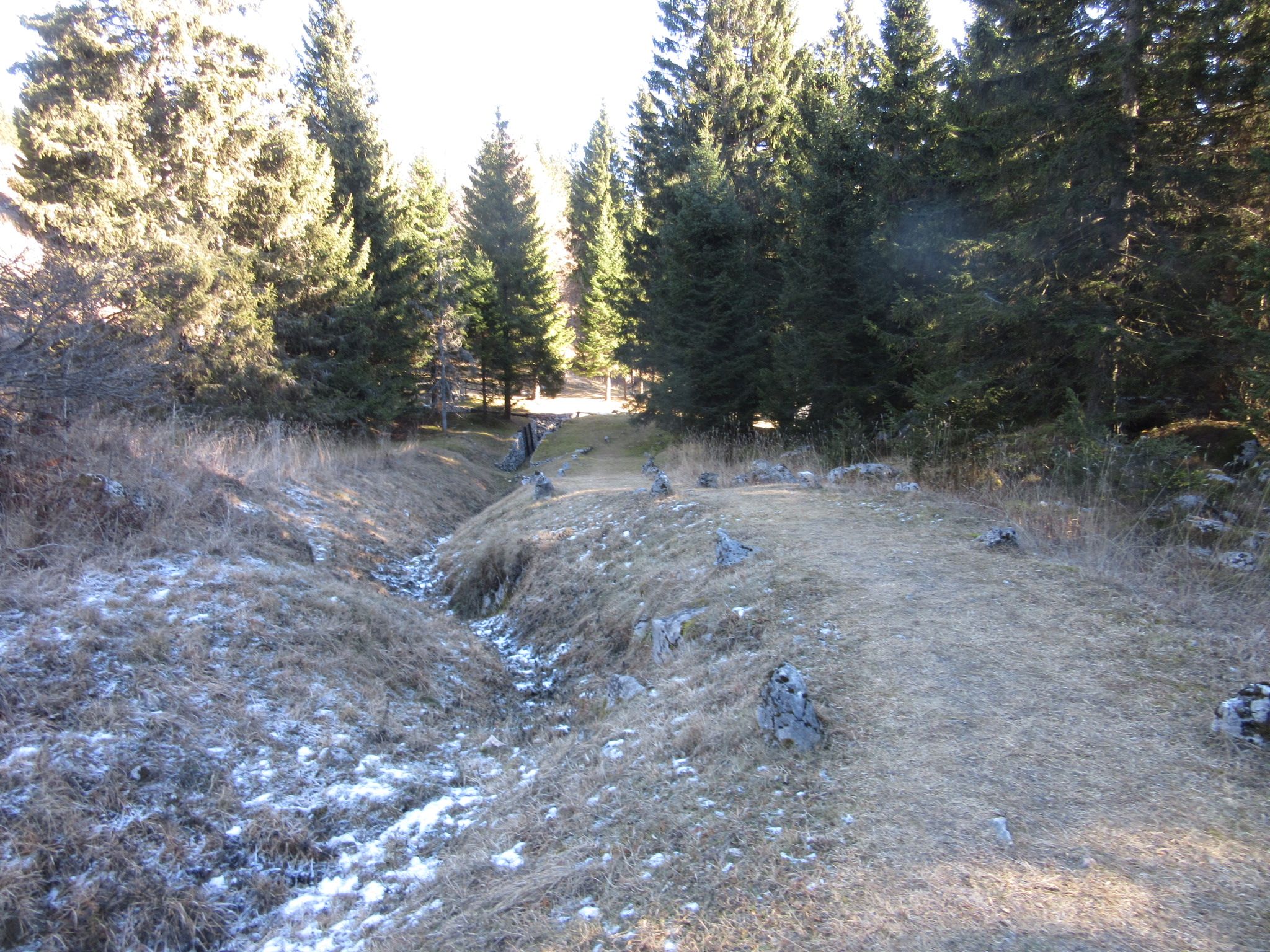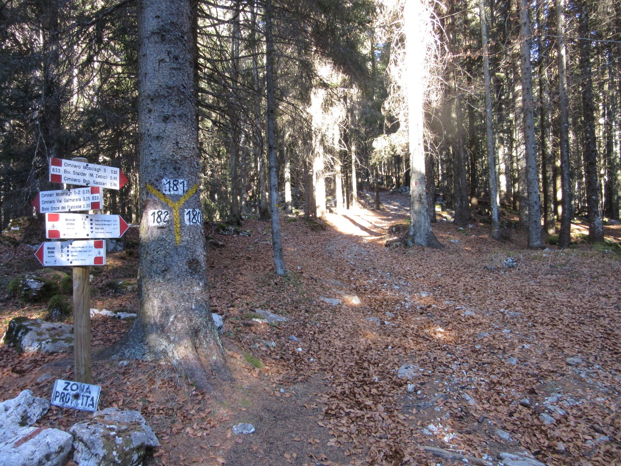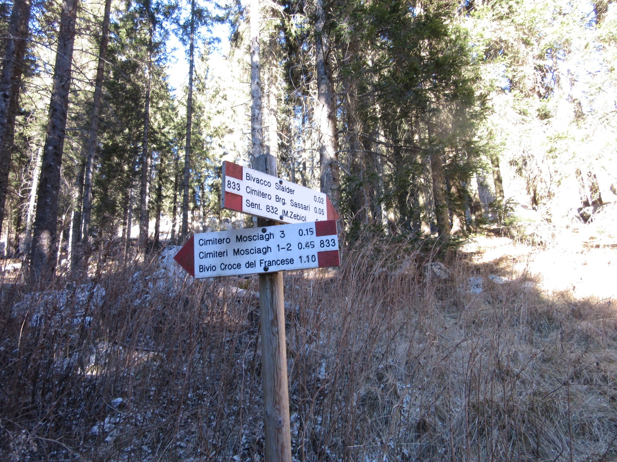 Per imboccare questo sentiero dopo essere salito ad Asiago si prosegue prima per Camporovere e poi si imbocca la strada che porta verso Trento passando da Lavarone , dopo essere usciti dall’abitato di Camporovere si incontra una stradina sterrata sulla destra che sale la Val Gamarara , l’auto la si potrebbe lasciare anche li , salendo una parte del sentiero della pace che percorre la valle , oppure si sale ancora un po con l’auto . Se si prosegue a piedi e sufficente seguire la strada fino ad arrivare in località Croce Francese , da li parte il sentiero . Questo sentiero e a mio avviso molto interessante ed importante sotto il profilo umano , ma bisogna avere l’umiltà di comprendere la grandezza di questi luoghi , anche del semplice fatto di tutti quelle persone che sono perite da eroi mantenendo il giuramento fatto verso la patria a cui hanno donato la vita . Il sentiero parte dalla Croce Francese , arrivati al bivio del cimitero di Mosciagh 1 si può proseguire fino ad arrivare a Forte interrotto , ricordo solamente che per questo sentiero si sale e sui scende , per ora non conosco una possibilità diversa , magari in seguito potrò trovare qualche nuova via per effettuare il ritorno