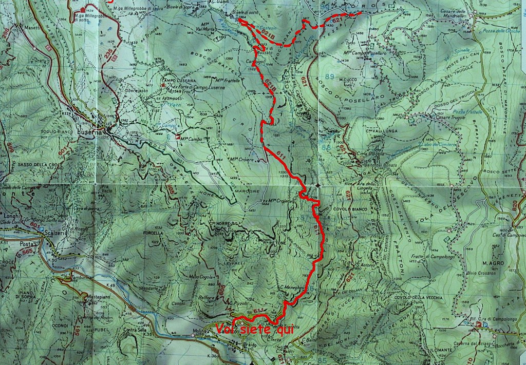 Dopo aver preso la strada che sale la Val D’astico direzione Lastebasse Folgaria , si arriva alla cava appena dopo San Pietro di Valdastico , si gira a destra per il ponte e si gira di nuovo a destra fino ad arrivare all’abitato di Casotto , li si può mettere l’auto in basso lungo la strada nel piccolo posteggio a sinistra e salire a piedi fino alla Chiesa , oppure salire in auto e posteggiarla vicino alla Chiesa . Poi appena superata la chiesa e poco prima della fontana sulla sinistra ci sono i segnavia dei due sentieri che partono da li . Salendo sul prato ed uscendo dall’abitato di Casotto si incrocia la strada forestale che porta in quota , percorsi un 150 metri si trova il bivio con il 605 che sale a sinistra mentre mantenendo la destra si sale sul 611 , la strada e in buona parte asfaltata ed e molto panoramica poi diventa sterrata ed iniziano alcuni pezzi di sentiero fino ad arrivare alla malga Croier , molto bella e anche la malga con dei panorami molto belli , se si mantiene la sinistra si può proseguire fino ad arrivare a Luserna in circa 45 minuti , molto utile quindi se si sale dal 605 , mentre se si mantiene la destra si prosegue per il 621B che porta a malga Camporosà per poi eventualmente scendere dal 611 ( io consiglio di fare il contrario salire dal 611 ), in ogni caso i due sentieri sono molto ripidi e richiedono un discreto impegno , diciamo che il problema di questi due sentieri è che praticamente portano solo in giro a malghe e quindi trovarle aperte bisogna aspettare il momento della transumanza , o in alcuni casi come mi pare la Malga Campo sia aperta anche di sabato e domenica (tempo permettendo ). Si può anche salire da questo e proseguire verso Luserna per poi scendere dal 605 , anche in questo caso io farei il contrario cioè salirei dal 605 e scenderei dal 611. Per collegare sul fondo valle i sentieri 611 e il 621 a mio avviso è opportuno lasciare l’auto nel piccolo posteggio situato sotto il paese di Casotto , e salire dal 621 che si trova in località Lucca , vedi post del 621 .