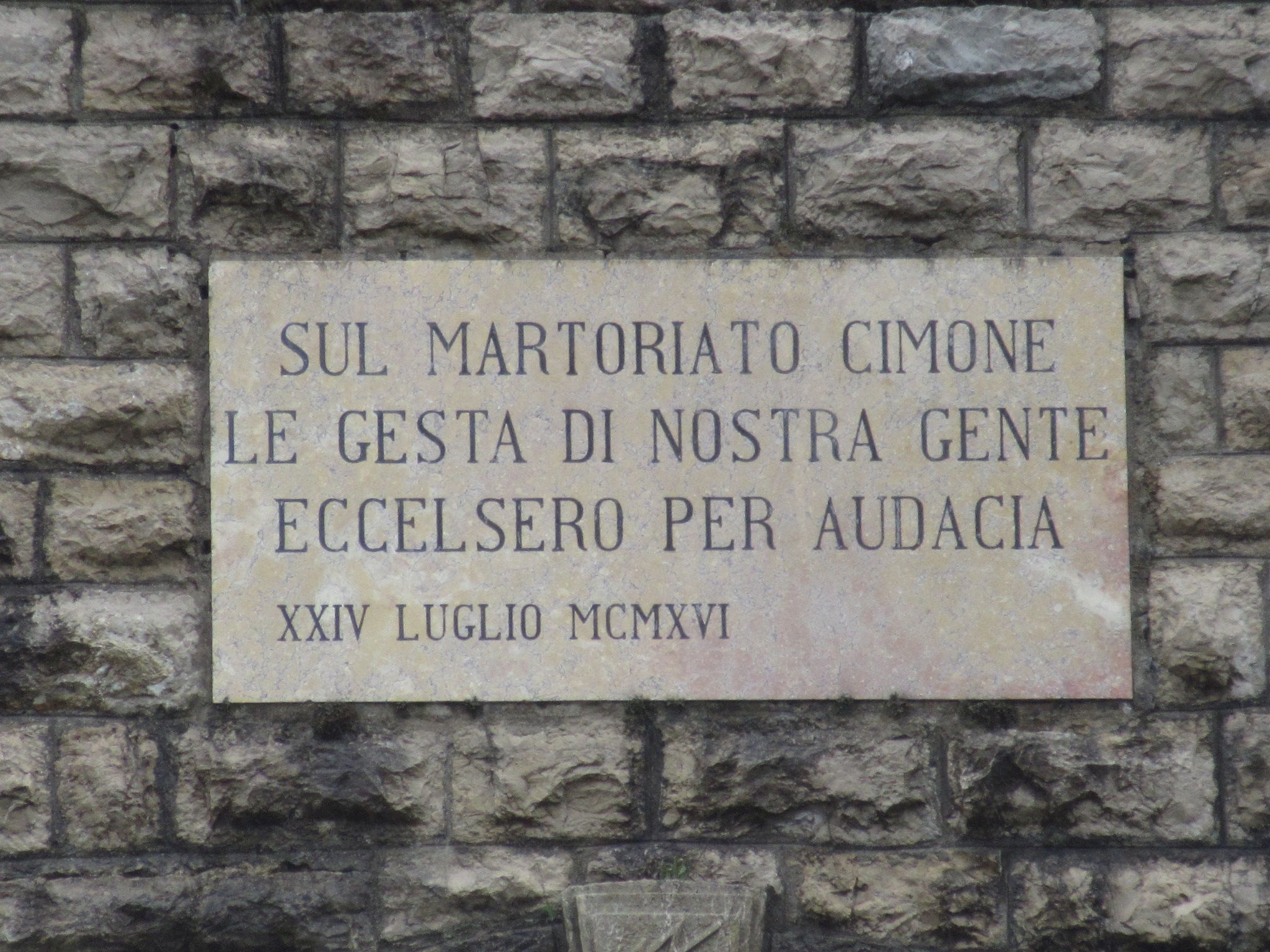 La vetta del monte Cimone fu profondamente modificata da una grande mina scavata dalle truppe austroungariche. Alle ore 5.45 del 23 settembre 1916, furono fatti brillare 14.200 kg di sostanze esplosive, seppellendo l’intera brigata di fanteria Sele lì dislocata. I resti di 1.210 caduti (tutti ignoti) furono recuperati nel primo dopoguerra e ricomposti in un ossario