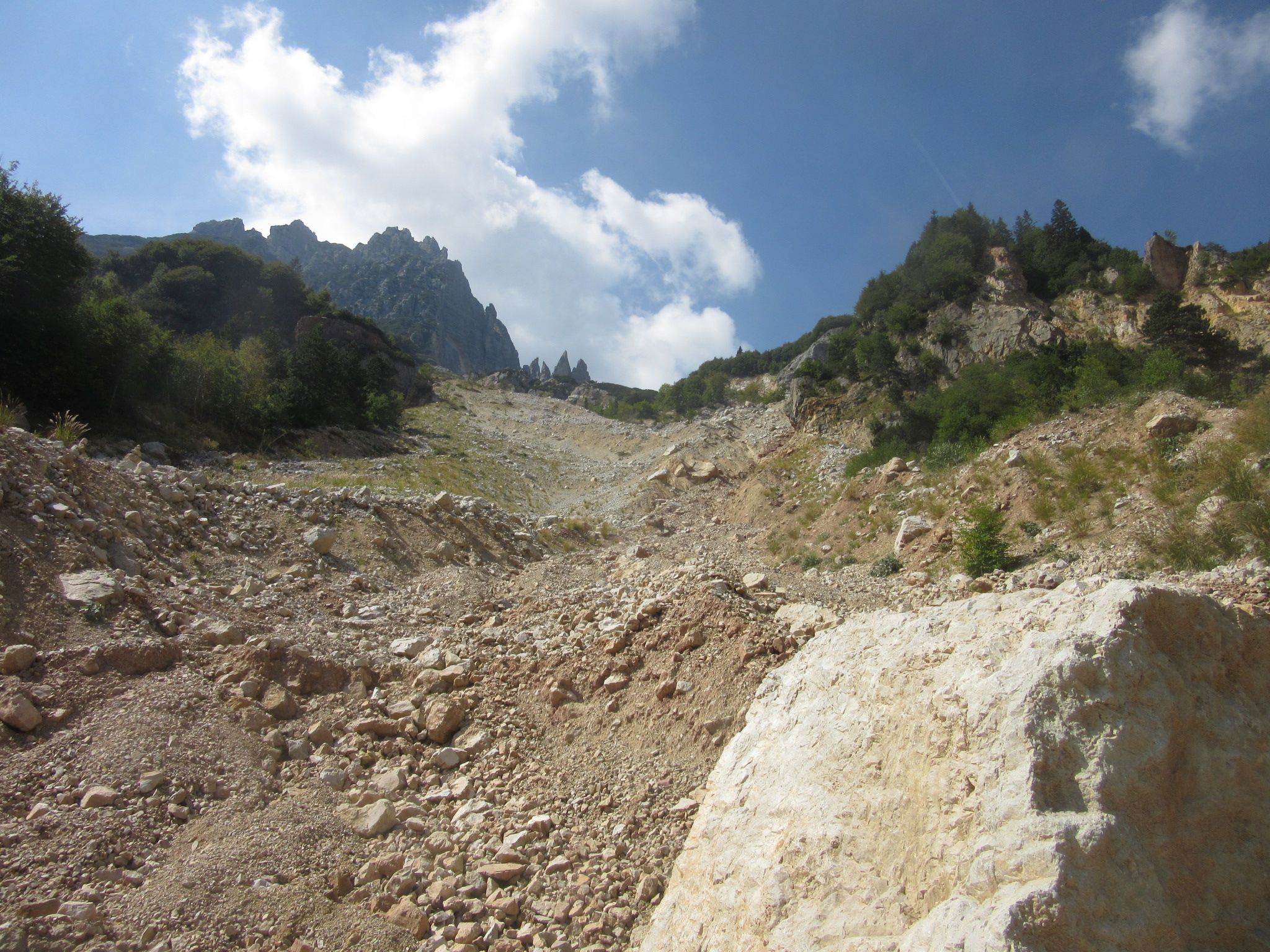 ATTENZIONE QUESTO SENTIERO E OBBLIGATORIO IL CASCHETTO PER IL SEMPLICE MOTIVO CHE PASSANDO SUL BOALE DETRITICO POTREBBE ESSERCI CADUTE ACCIDENTALI DI SASSI