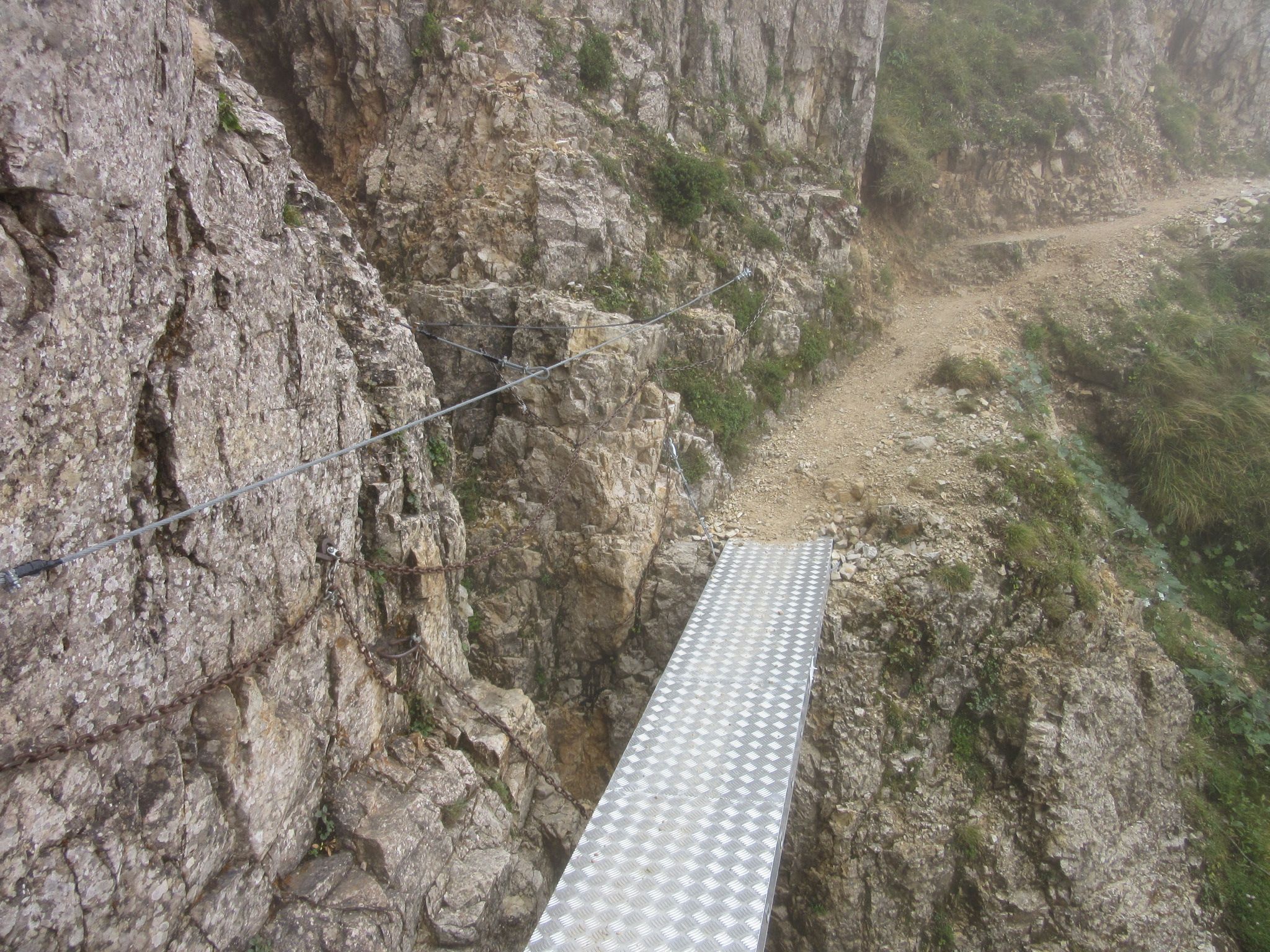 Il ponte di acciaio di 105 metri con un altezza di 35 metri e stato costruito per superare queslla frana che un’alluvione del novembre 2010 ha spazzato via quella parte di strada già in cattive condizioni .