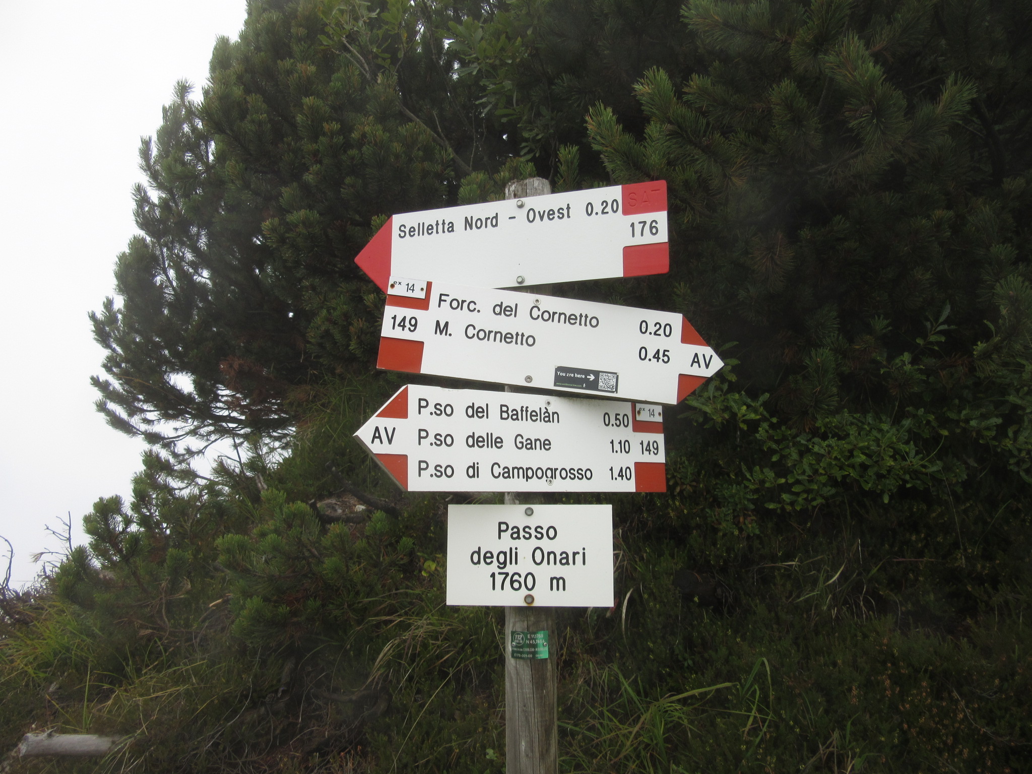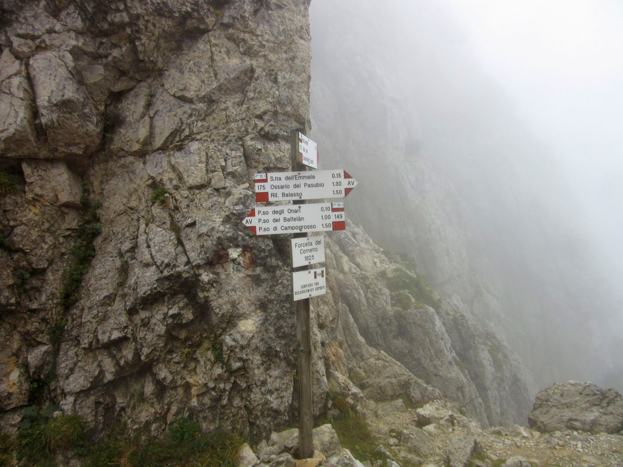 Arrivati al primo posteggio in Località Gazza si prende il sentiero a destra appena entrati nel posteggio quello che poi conduce a quello 113 dell’omo e la dona , e al 114 pelegatta si prosegue e superate alcune deviazioni si parte con il 105 , il sentiero e abbastanza difficile sotto il profilo fisico , tecnicamente e ben attrezzato e presenta alcune parti abbastanza difficili e molto bello e presenta dei scenari incredibili sopratutto nella parte finale quando si esce dal castello degli angeli (e si può vedere il rifugio Fraccaroli), per la discesa si scende al rifugio Scalorbi e poi si prosegue verso il forcellino del plische e quindi il passo Lora oppure semplicemente dall’Omo e la dona. Per chi è in forma si può scendere fino a Campogrosso e poi rientrare per il sentiero delle Mole , che poi si trova il bivio alla Guardia che riporta alla Gazza .