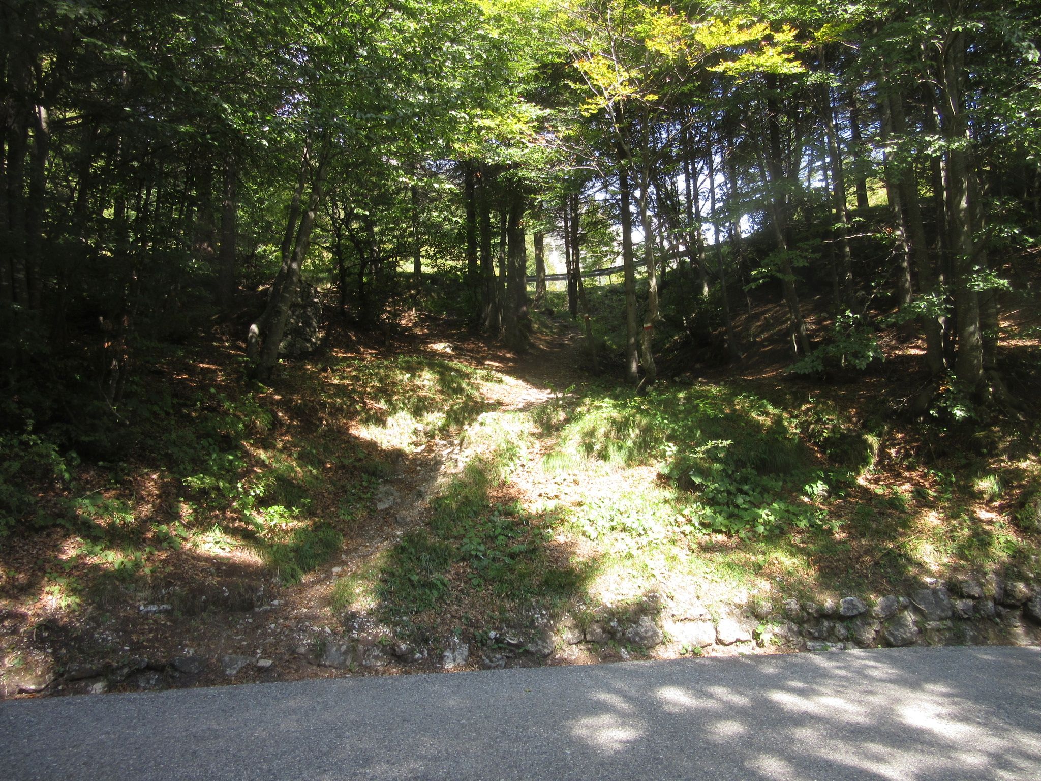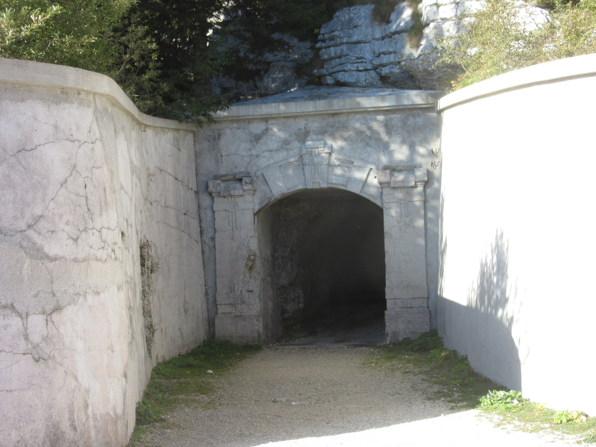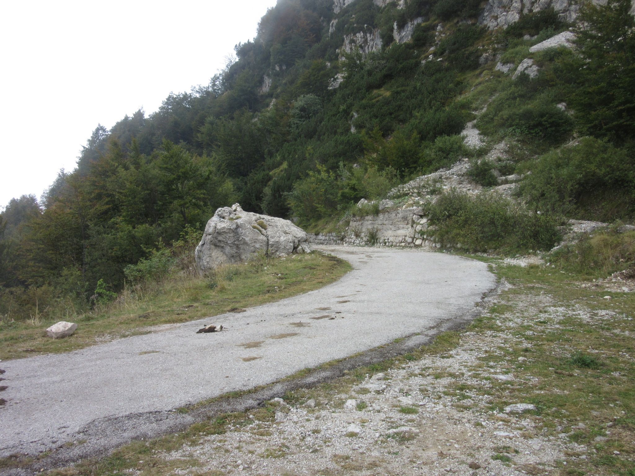Per questo itinerario si può salire passando per Schio e Valli del Pasubio fino al Pian delle Fugazze , si lascia l’auto e si prende la strada asfaltata che porta verso il museo della 1° Armata e il colle Bellavista dove si trova l’Ossario del Pasubio , si supera la Malga Cornetto , dove parte anche il Vajo stretto , si sale mantenendo la destra e si prosegue per una strada sempre asfaltata fino ad arrivare al ponte di acciaio lungo 105 metri e alto 35 metri dalla frana , costruito allo scopo di attraversare la frana che era avvenuta diversi anni or sono , e che era raggirabile attraverso un ripido sentiero che saliva in alto per poi rientrare di nuovo nella strada , ricordo che la strada e chiusa da una sbarra all’altezza dell’imbocco del bivio con l’Ossario .