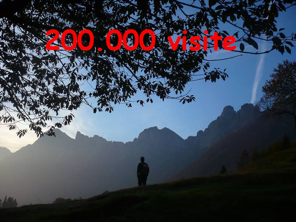 Sono senza parole , coltivo questo blog con la passione con cui salgo in montagna … 200.000 visualizzazioni e 78.920 visitatori , 73 paesi del mondo 137 follower via mail e 1215 follower via facebook . E un bel traguardo per il mio piccolo Blog …. non e sponsorizzato e non prendo soldi per questo , ma per me e una grande soddisfazione ….Grazie a tutti di cuore