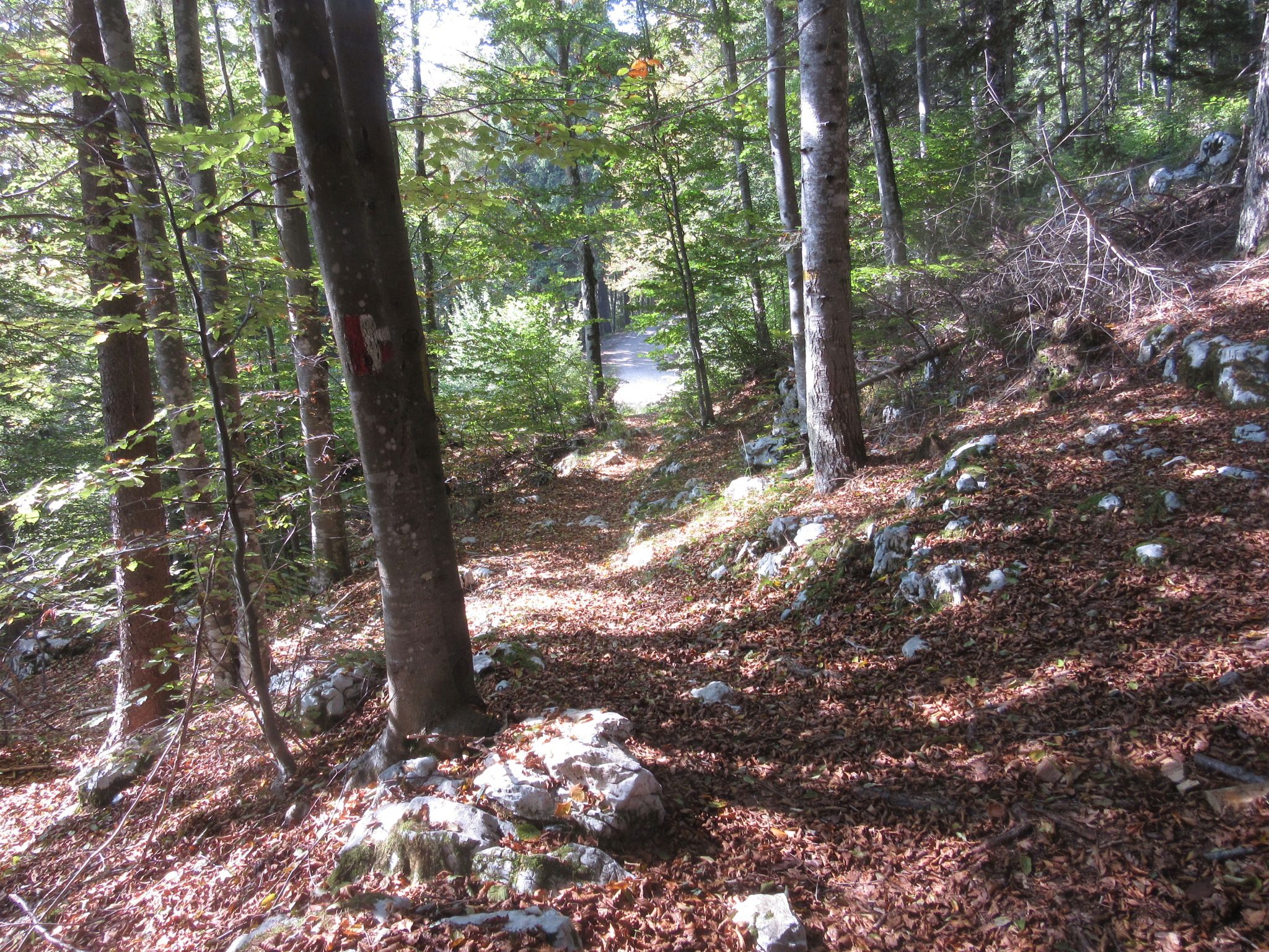 Ci sono due vie per salire per l’imbocco di questo sentiero , si può salire da Cogollo del Cengio passando per Tresche conca e proseguire fino ad Albaredo per poi imboccare la Val Martello , ovvero la via che porta a l’istituto Elioterapico di Mezzaselva. Oppure salire da Pedescala passando per Castelletto e superato l’abitato di Rotzo salire per la Val Martello , ovvero sempre la via che porta a l’istituto Elioterapico di Mezzaselva .Superato il bivio con l’istituto , si prosegue fino ad arrivare in Spiazzo Garibaldi dove inizia anche il sentiero 810 . Da li si sale su per la strada asfaltata fino ad incontrare un bivio a destra , si imbocca la strada che nel periodo invernale fa parte della pista da fondo di Campolongo , si sale fino ad arrivare in localita Chemple a quota 1576 metri , da li inizia l’anello vero e proprio , si tratta di un anello molto bello composto di alcune parti in verdi pascoli ed stupende parti di un sottobosco molto bello ricco di flora e fauna selvatica , anche se presenta alcune parti dello stesso in cui sono stati tagliati alberi e pare siano stati abbandonati tal quali , ma in montagna si sa che il periodo di taglio della legna dev’essere rispettato con doviziosa cura , per il resto anche se presenta una salita inizialmente un po irta nel tratto che incrocia le due contrade di Roana , rimane un itinerario veramente molto bello che da visibilità ad un luogo così poco conosciuto ai più che è la comunità di Rotzo , Roana . Voglio ricordare a chi ha poca pratica di questi luoghi alcuni sentieri facili e nello stesso comprensorio , 802 altare Knotto , 810 Forte Campolongo ed infine 820 Monte Verena .