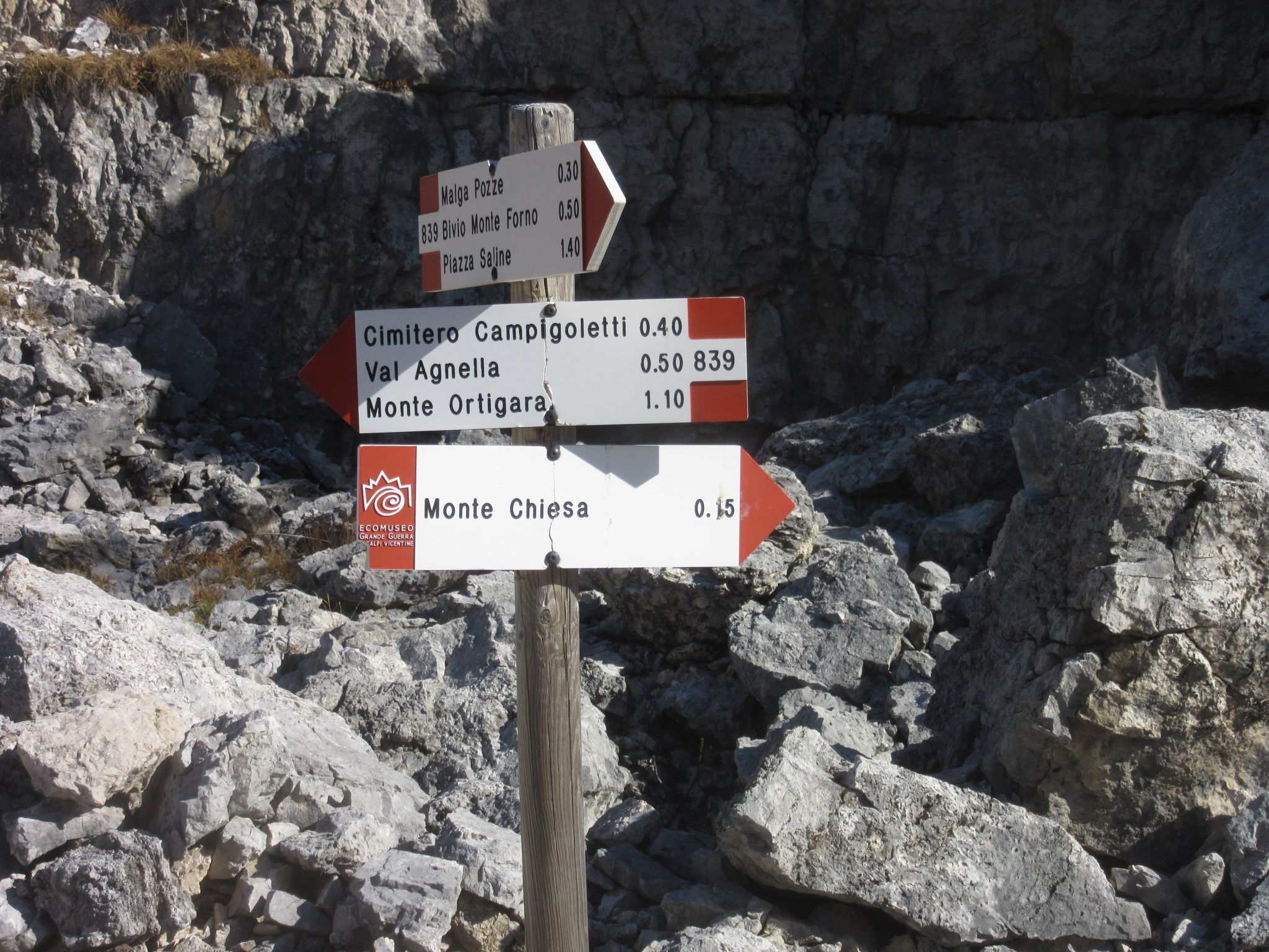 Questo itinerario molto bello ed interessantissimo sotto il profilo storico , non richiede una preparazione fisica e tecnica eccezionale , ma bensi una discreta conoscenza di questa parte di altipiano teatro di sanguinose battaglie anche se parte di questo percorso e sulla linea definita delle alture ovvero le zone logistiche e di comando dell’esercito austroungarico , da molte di queste posizioni si possono vedere i trinceramenti e le postazioni dell’avversario da diverse prospettive . Questo percorso assieme a 841 – 840 – 830 – 835 – Monte Chiesa – Monte Ortigara – Anello piazzale Lozze – cima XII – cima Portule completano la visione del complesso sistema del Ortigara , e riescono con un approfondimento cartaceo a dare utili informazioni …PER NON DIMENTICARE E PER FAR SAPERE …