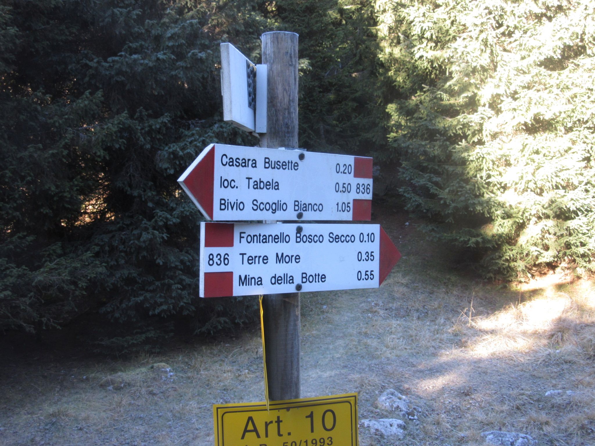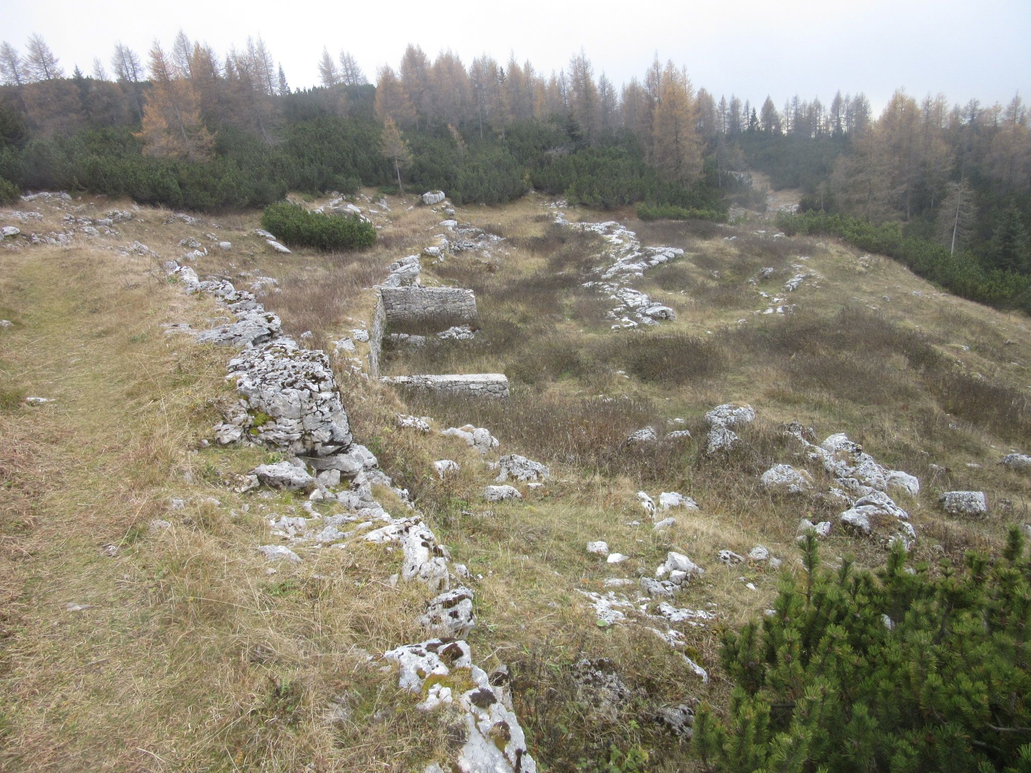 Visto che il sentiero non e molto lungo si può salire fino al monte Forno per poter vedere i baraccamenti e le postazioni di quello che fu una delle basi logistiche dell’esercito austroungarico situato poco lontano dal bivio delle Terre More.