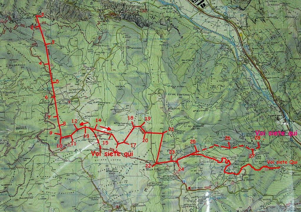 VOGLIO SOTTOLINEARE L’IMPORTANZA DI QUESTA MAPPA COSI COSTRUITA PERCHE SE SI PENSA CHE PERCORRENDO IL SENTIERO DEI CIPPI E COMPOSTO DAL SENTIERO 869 IN ALCUNE SUE PARTI E 869B IN ALCUNE SUE PARTI .