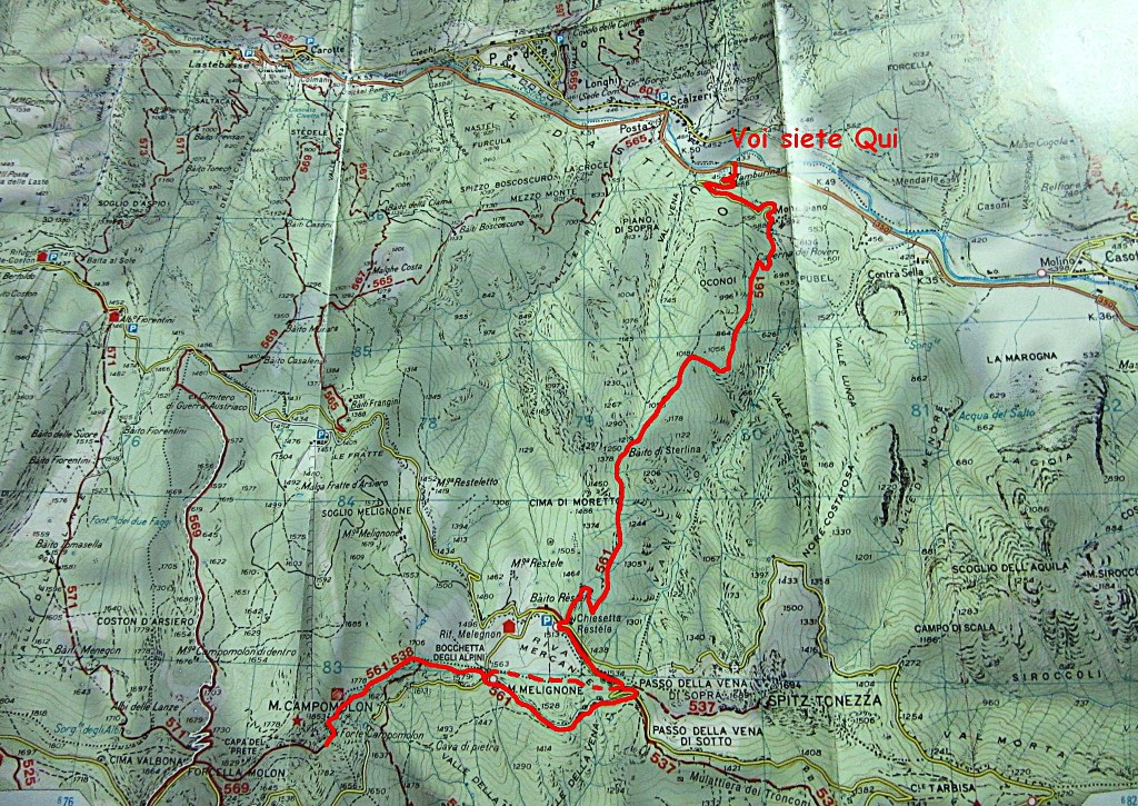 Si sale sulla strada asfaltata che porta a Montepiano , una contrada molto bella che dispone anche di una piccola Chiesetta , anche se a quanto ho potuto vedere quasi tutte le case chiuse , da li su una strettoia parte il sentiero , molto bello anche se in parte boschivo ma con una visuale in autunno senza le foglie molto interessante , il sentiero sale abbastanza ripido , ma presenta dei tratti esposti molto belli dapprima sulla valle Loza , poi salendo sul crinale del monte propone una visione sia a destra che a sinistra per poi arrivare alla Chiesetta del Restele ed incrociare la strada che porta da Tonezza del Cimone ai Fiorentini e successivamente al Passo Sommo . Si prosegue la salita sulla stradina che porta al Passo della Vena , per poi proseguire con il sentiero poco di sotto al Passo , lo scenario panoramico è unico da cima Grappa , lo Spitz di Vezzena , il Cimone , il Portule , il becco di Filadonna , io consiglio la piccola variante che porta a Monte Melagnon dove essendoci solo mughi si rimane estasiati e completamente presi dalla vista panoramica , per poi mantenendo questa vista salire fino al Forte Campomolon , da li si vede uno scenario unico , sperando nel tempo , buona visione .