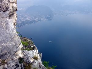 Dopo aver raggiunto Riva del Garda si prende la strada che porta da Riva alla val di Ledro attraversando la galleria , si prosegue per Biacesa , piccolo abitato sulla strada per il lago di ledro , arrivati al semaforo si svolta a destra e si sale in paese , entrando in un posteggio dove c’e anche un parco per bambini ed il campo di calcio si lascia la macchina e ritornando a piedi indietro per alcune decine di metri si prende il bivio di destra , in fondo alla strada oltre alla fontana si nota il primo segnavia , si segue e si superano altri segnavia fino ad iniziare a salire ed incrociare il bivio del 470 sentier del Bech , salite finche non lo trovate e raffigurata una mattonella con un caprone , proseguite su questo sentiero fino ad incontrare l’attacco della ferrata , la ferrata non richiede una particolare attenzione , i passaggi non sono pericolosi richiedono solo una buona maestria con le roccie , ma risulta sempre indispensabile l’imbrago , il caschetto . La via e molto panoramica con scenari incredibili sia verso Riva del Garda che il lago stesso , con strapiombi nella valle del Ponale .
