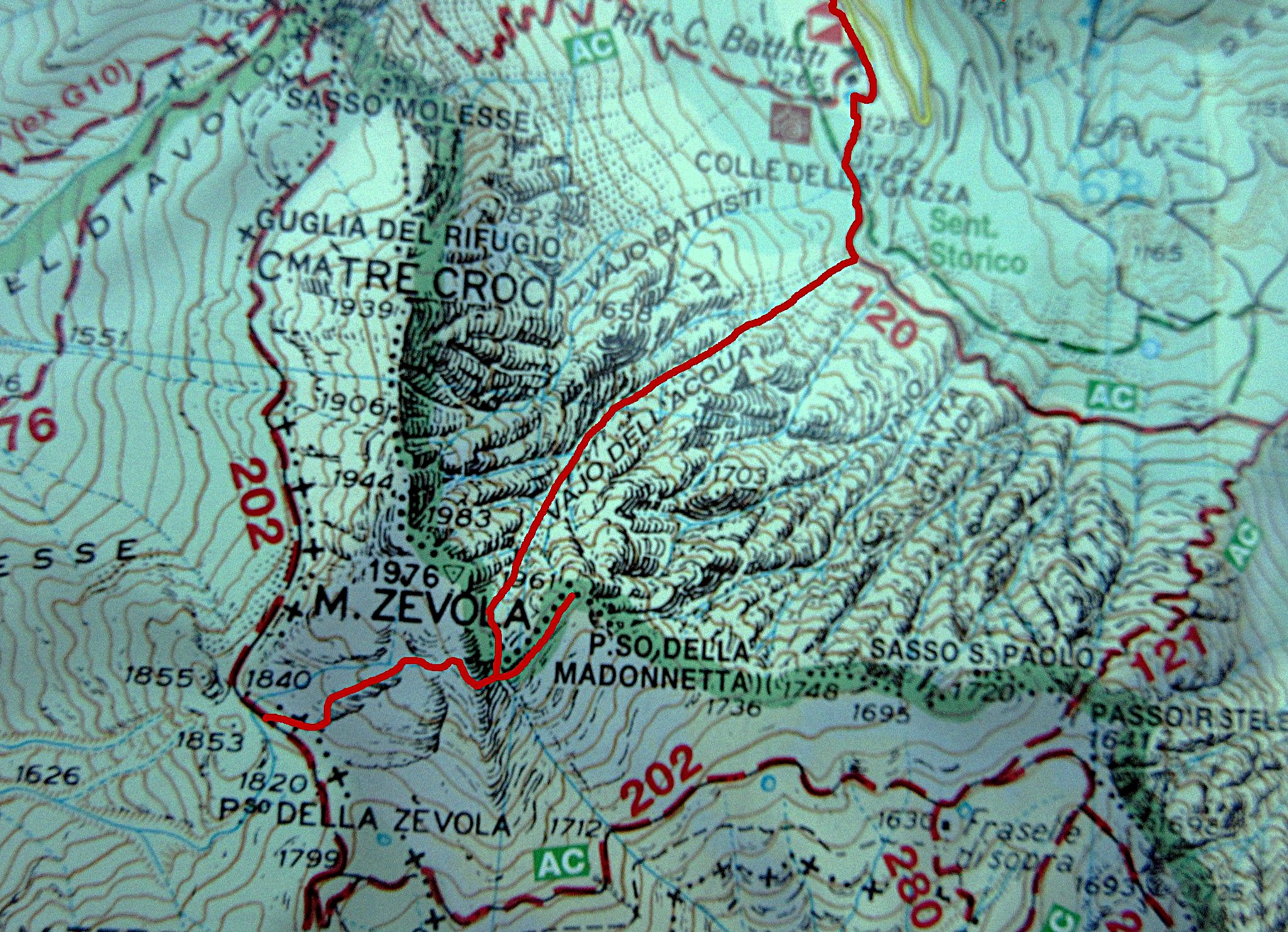 Si sale fino al rifugio Cesare Battisti si prosegue verso la mulattiera per malga rove , ad un certo punto nella prima semicurva si può notare sulla destra un ripido pendio , da li si parte per la salita del vajo , che non risulta molto impegnativo sotto il profilo tecnico ma richiede un buon allenamento circa 700 metri di dislivello, presenta una strozzatura a circa metà percorso , ma nel complesso risulta abbastanza chiaro come direzione , il vajo non possiede difficolta tecniche da renderlo complicato sotto il punto di vista alpinistico ma richiede un impegno fisico notevole , come del resto tutti i vaj che si fanno nel periodo senza la neve , le difficoltà aumentano notevolmente , ma lo spettacolo non ha eguali . La discesa può essere fatta sia dal 121 Ristele che dal 110 Passo della lora