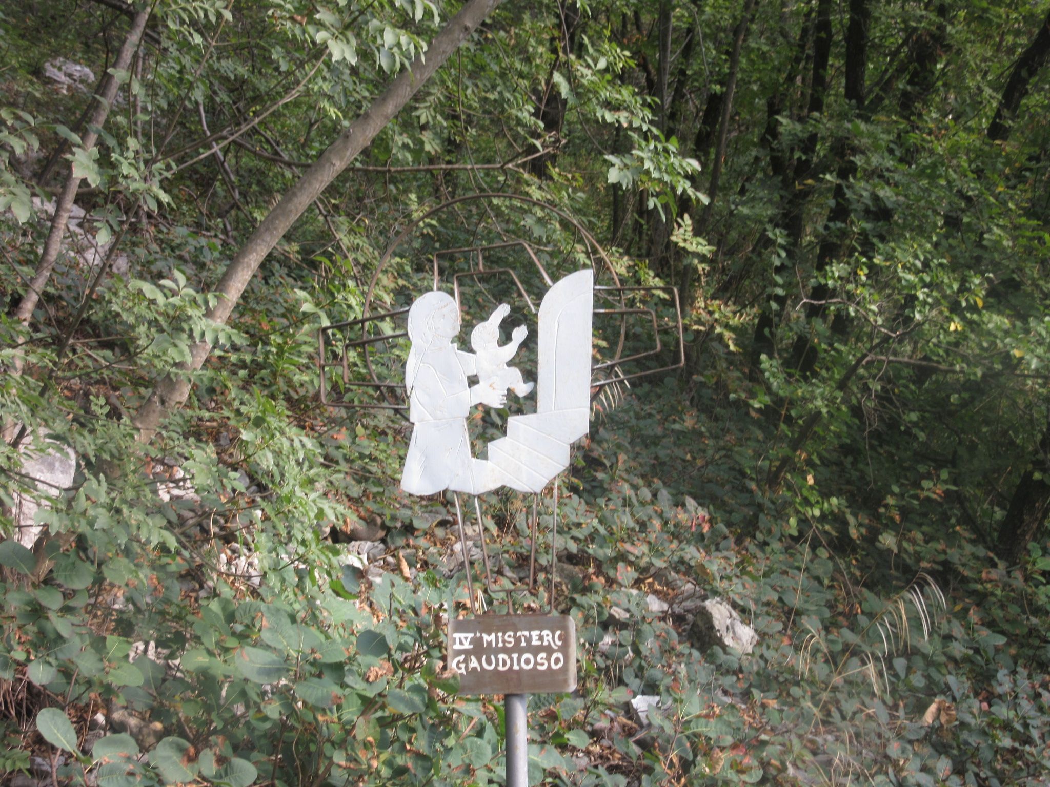 Allora si venne nella decisione di costruire lì una chiesuola. Vi era sempre però la grande difficoltà per i devoti di andarvi. Unico mezzo rimase per circa venti anni, calarsi giù dalle rocce con le funi dell’argano, mezzo impossibile per molti e pericoloso per tutti. Si pensò allora ad una strada. Ma come farla sulla nuda roccia? Questa era affatto impraticabile. Meno difficile era scendere dal dosso, che si protende al lato meridionale del luogo ove era la statua e diviso da esso da un vallone pietroso, che dal sommo del monte lo solca a picco fin giù al piano dell’Adige. In questo dosso le rocce sono interrotte da tratti boscosi curvantisi qua e là al dorso di mulo ed offerenti appigli al viandante….Di lì scesero i più animosi finché poterono scorgere la statua di fronte a loro sulla parete rocciosa a picco. Ma passare di lì non v’era nemmeno di tentarlo, perché impossibile inerpicarsi al di là di esso sulla roccia nuda. Perciò i più animosi si scoraggiarono e solo nella preghiera a Maria, che scoprisse il modo di arrivare a Lei, posero la propria fiducia. E Maria li aiutò. Narrano gli storici sopraccitati che nella notte dal duro macigno sorse un grande albero, che si piegava sopra la voragine fin all’opposta roccia, ed allargava così i rami poderosi da potersi sopra di essi gettare comodamente un ponte. Quell’albero, che sosteneva un ponte, fu notato anche da un naturalista del secolo XVI, Giovanni Pona…..A tale albero le popolazioni ascrivevano virtù miracolose chiamando “l’albero della Madonna”; perciò i numerosi pellegrini andavano a gara per asportarne pezzettini da conservare come reliquie nelle case e usarne per gli ammalati spediti dai medici. Ed a forza di tagliare pezzettini, si capisce cosa avvenne: un secolo dopo l’albero non v’era più. Solo se ne conservò una piccola reliquia, che ancora si può vedere nel tesoro del Santuario; al luogo poi del ponte di legno se ne costruisse uno di pietra”.