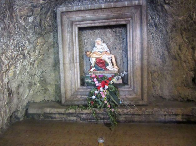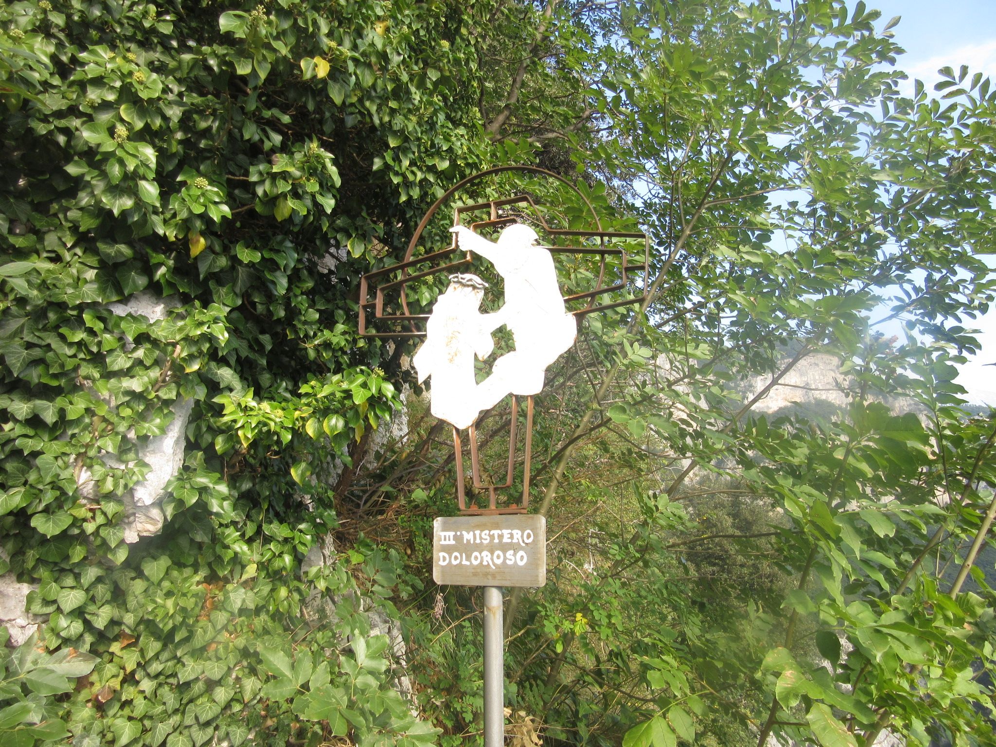 L’Addolorata voleva l’austera crudezza della roccia ferrigna e nuda che scende a picco, senza sorrisi e senza dolcezze, sotto uno stretto lembo di cielo limitato per ogni lato dalle rocce. E per la seconda volta Ella sparì dalla Cappellina di legno, e per la seconda volta fu ritrovata sul breve spiazzo roccioso.