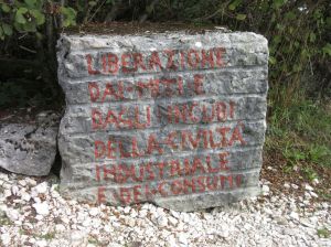 Mentre girovagavo per le cave , sono tornato indietro ed ho trovato li proprio lui il Maestro Toni Zarpellon , una piccola soddisfazione perche lui mi ha descritto un po come sono nate queste idee nel tentativo quasi di lanciare un grido di allarme che nel progresso non è detto che sia un avanzamento interiore o un miglioramento della vita , ma potrebbe essere frutto del becero capitalismo e consumismo a cui molti sono diventati dipendenti .
