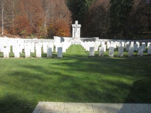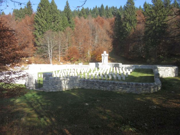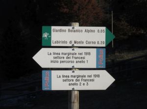 Dopo aver raggiunto in auto il Monte Corno di Lusiana , si lascia l’auto nel posteggio di Bocchetta Granezza , e da li si parte a piedi , in una delle due direzioni , io ho preso quella che sale a destra verso il monumento del Monte Corno . Prima si sale a Malga Monte Corno attraverso una stradina sterrata molto panoramica inizialmente in quanto guarda verso la pianura , per poi superare Malga Campo Ovest in lontananza e poi al bivio si scende a Malga Campo Est tenuta la malga a destra e seguendo il crinale fino all’entrata di un bosco dove si può notare il passaggio di una carrareccia boschiva , mantenendo la sinistra si scende nel bosco e si mantiene la rotabile , massima attenzione in questo tratto poco segnalato , si scende fino ad incrociare il segnavia 886 per un centinaio di metri fino ad arrivare a Bocchetta Camporossignolo , da li proseguendo per la strada sterrata si arriva a Malga camporossignolo mantenendo la malga a destra si arriva ad un bivio che sale sulla sinistra e che porta attraverso un nuovo tratto boschivo fino al Bivacco Rossingroba , molto bello , da li si continua fino ad raggiungere la valle granezza di Gallio che a circa 200 metri dall’entrata nei ampi pascoli della Valle sulla sinistra sale il sentiero che porta al Labirinto del Monte Corno tutto boschivo fino ad arrivare nel tratto del trincerone sulla dorsale opposta a Monte Corno , il trincerone finisce con una trincea ricostruita secondo le notizie e le ricostruzioni storiche della famosissima Feritoia n°14 del Monte Zebio. Per poi arrivare al cimitero inglese di Granezza , donato il suolo all’Inghilterra per le perdite subite dagli alleati in questa prima guerra Mondiale .