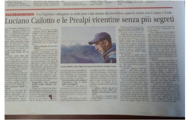 Che dire ringrazio molto il mio Amico Giancarlo Andolfatto per l’articolo su Bassano Week del mio sito , non ho parole , anche se non mi ritengo proprio alpinista , ma un grande appassionato di montagna e di storia , un buon conoscitore delle nostre zone , uno che cerca di mettere in evidenza quel grande patrimonio che sono le Prealpi Vicentine e i Teatri di quelle grandi e difficili Battaglie del 15-18 , un grazie di cuore . Luciano Cailotto