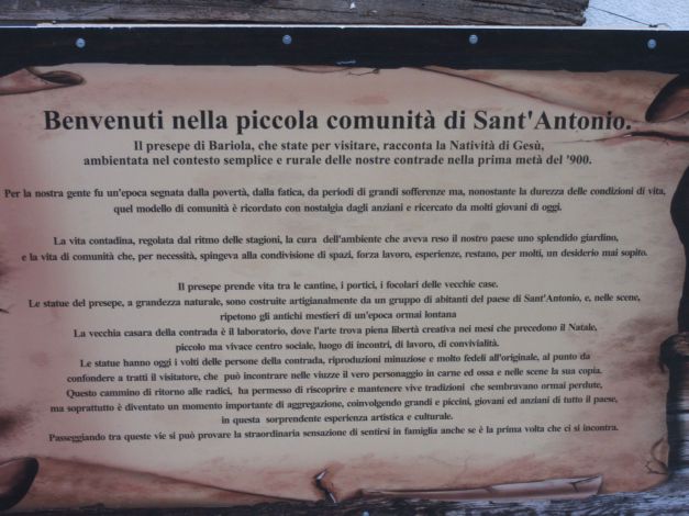 Definire presepio quello di Bariola e una cosa superficiale , cio che si vede va molto oltre l’immaginazione , si tratta di una ricostruzione storico affettiva di come andava e come si viveva la vita negli anni addietro , cose che per chi come me ha avuto la fortuna di poterle vedere e toccare con mano , nonostante io fossi solamente bambino , ma credo che una visita in questo luogo a tutti anche quei ventenni che credono di sapere tutto sia una bella esperienza di vita di quotidianità , semplicità ma nonostante che si possedeva poco , di grandissima ricchezza interiore . Un grosso plauso a quelle persone che con pazienza certosina hanno costruito tutto questo , per non dimenticare come eravamo , come vivevamo ma sopratutto se stavamo meglio o peggio , si c’era miseria e povertà , ma la contrà viveva con dei valori in cui credevano profondamente e sempre pronti a dare una mano , cose ormai perse nel tempo . Andateci respirerete un atmosfera unica nel suo genere fatta di storie e tradizioni all’insegna di un vero Natale . Luciano