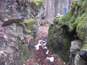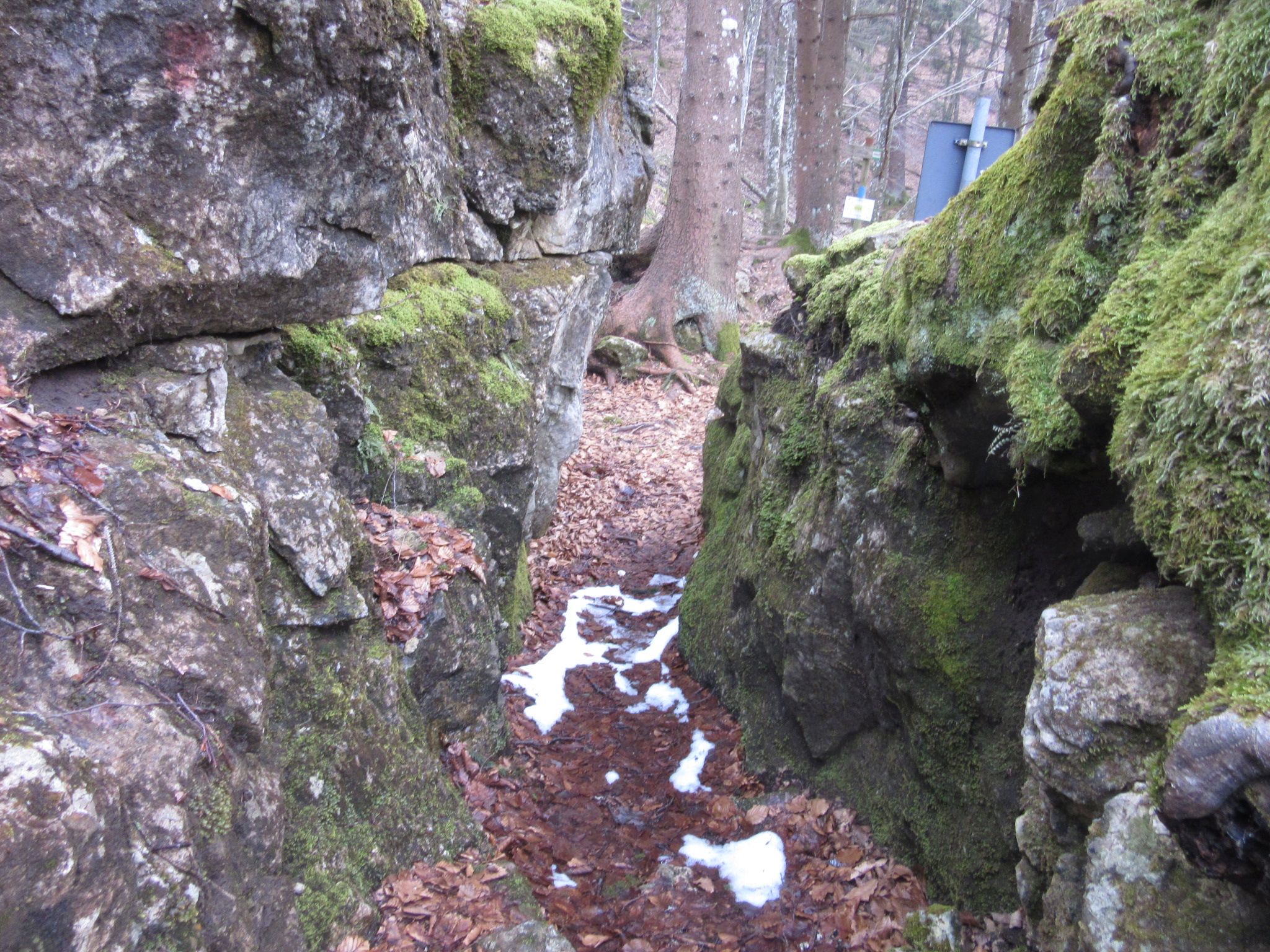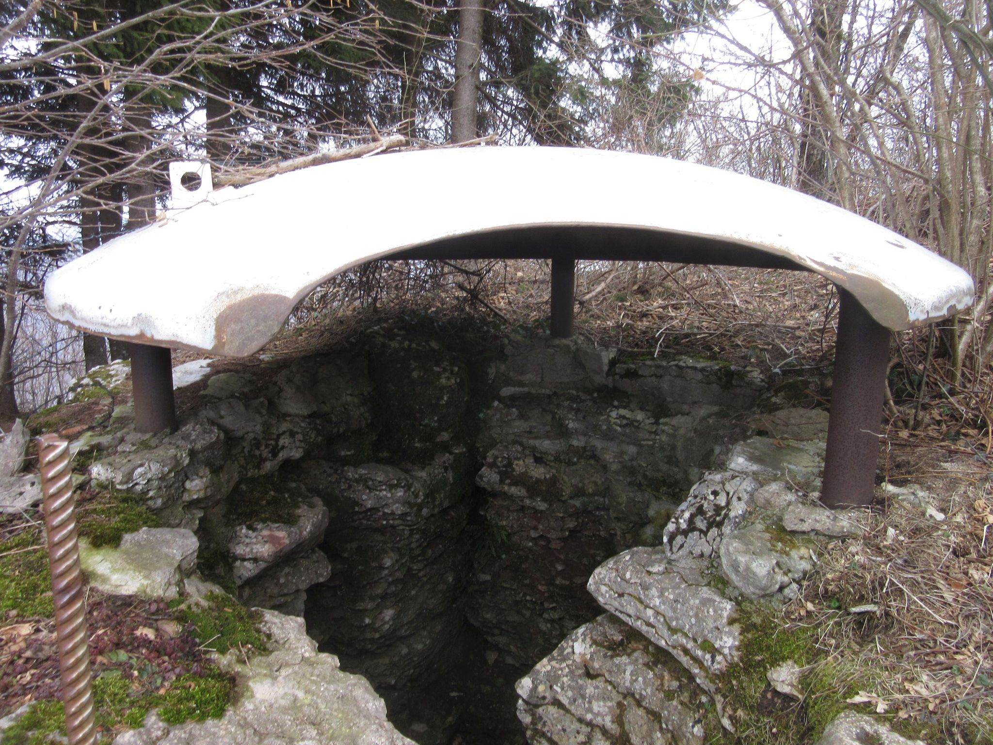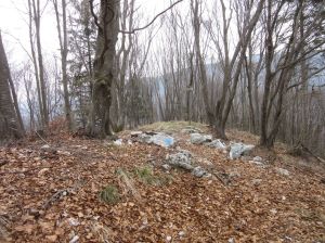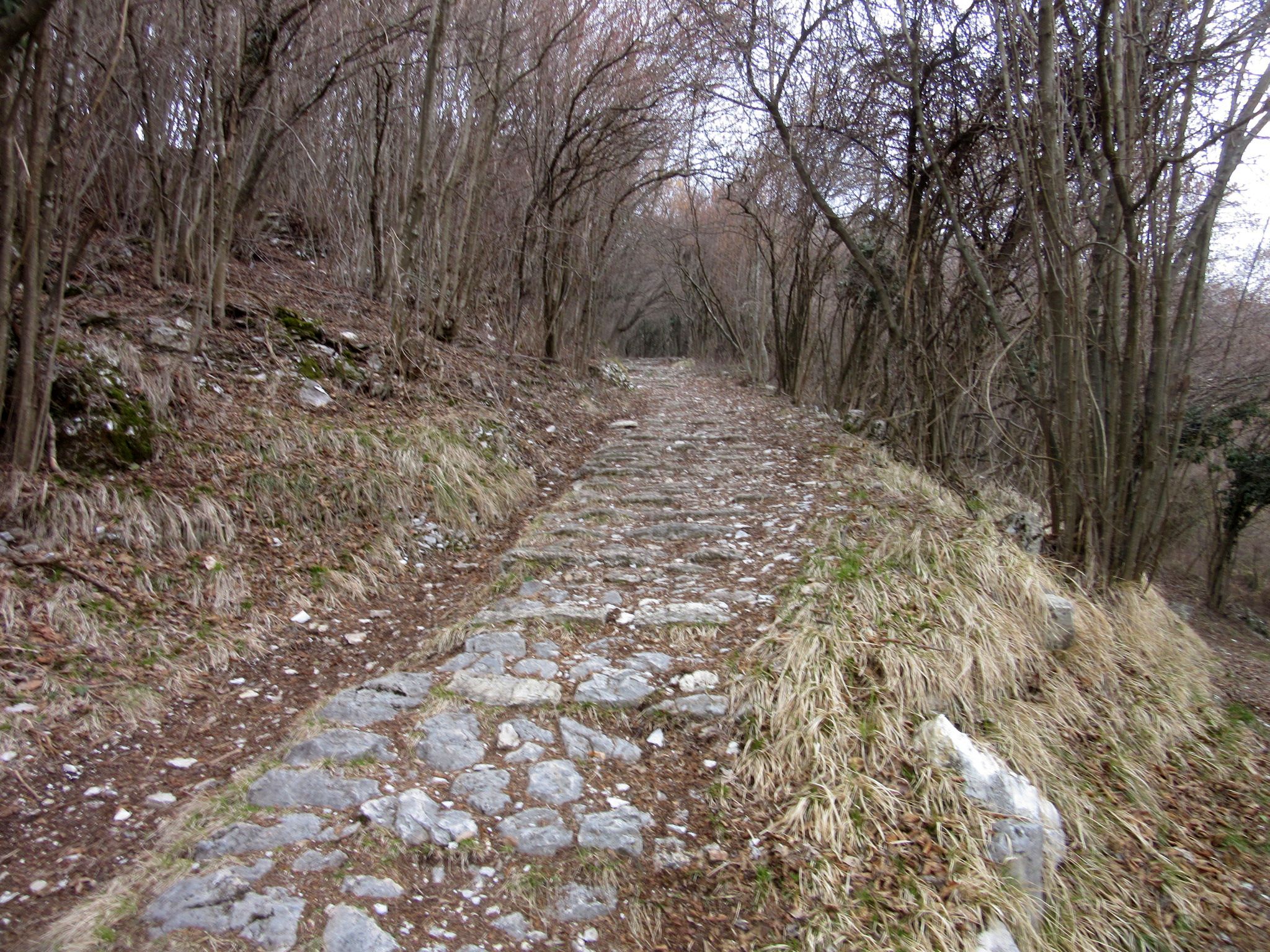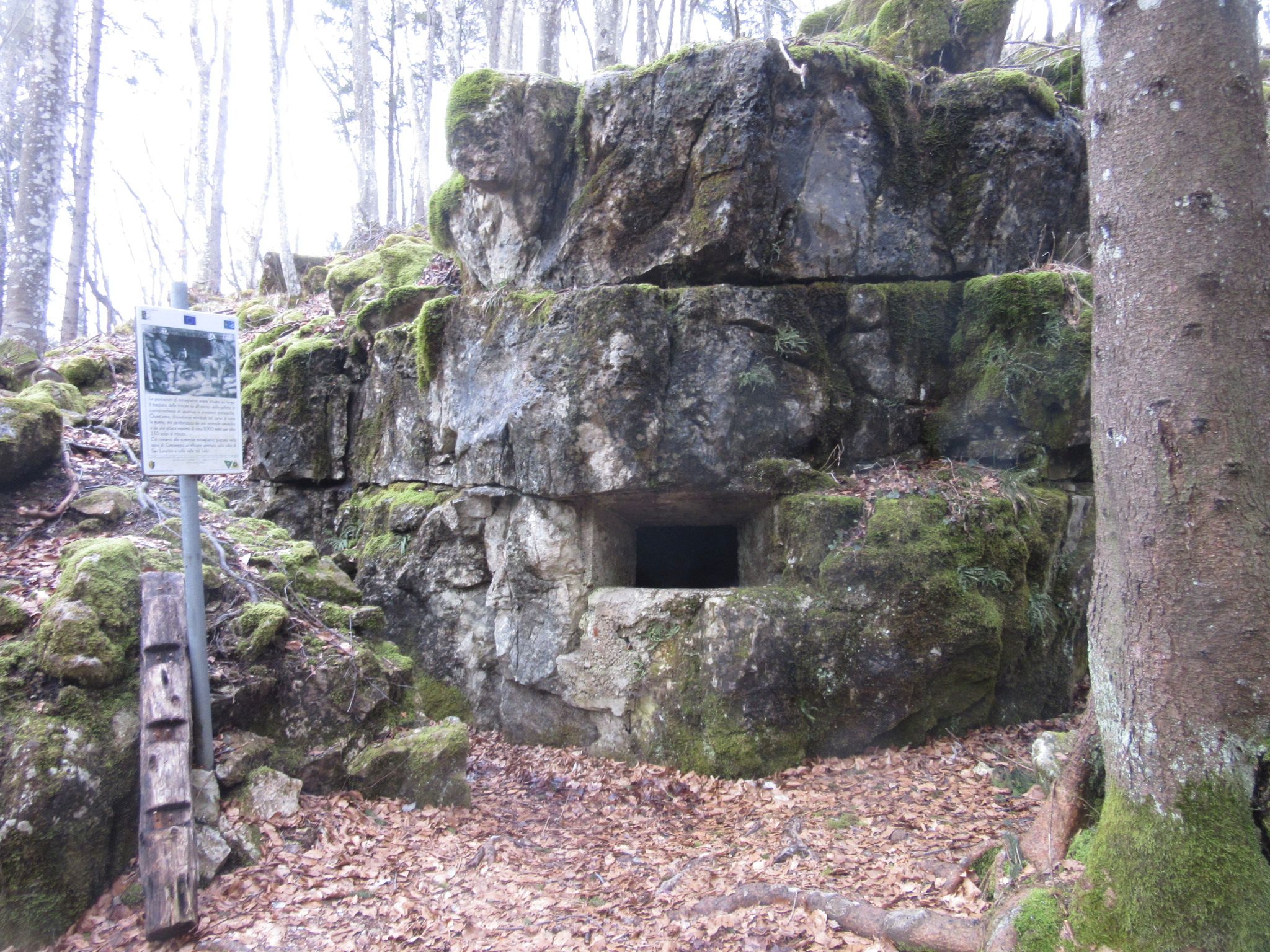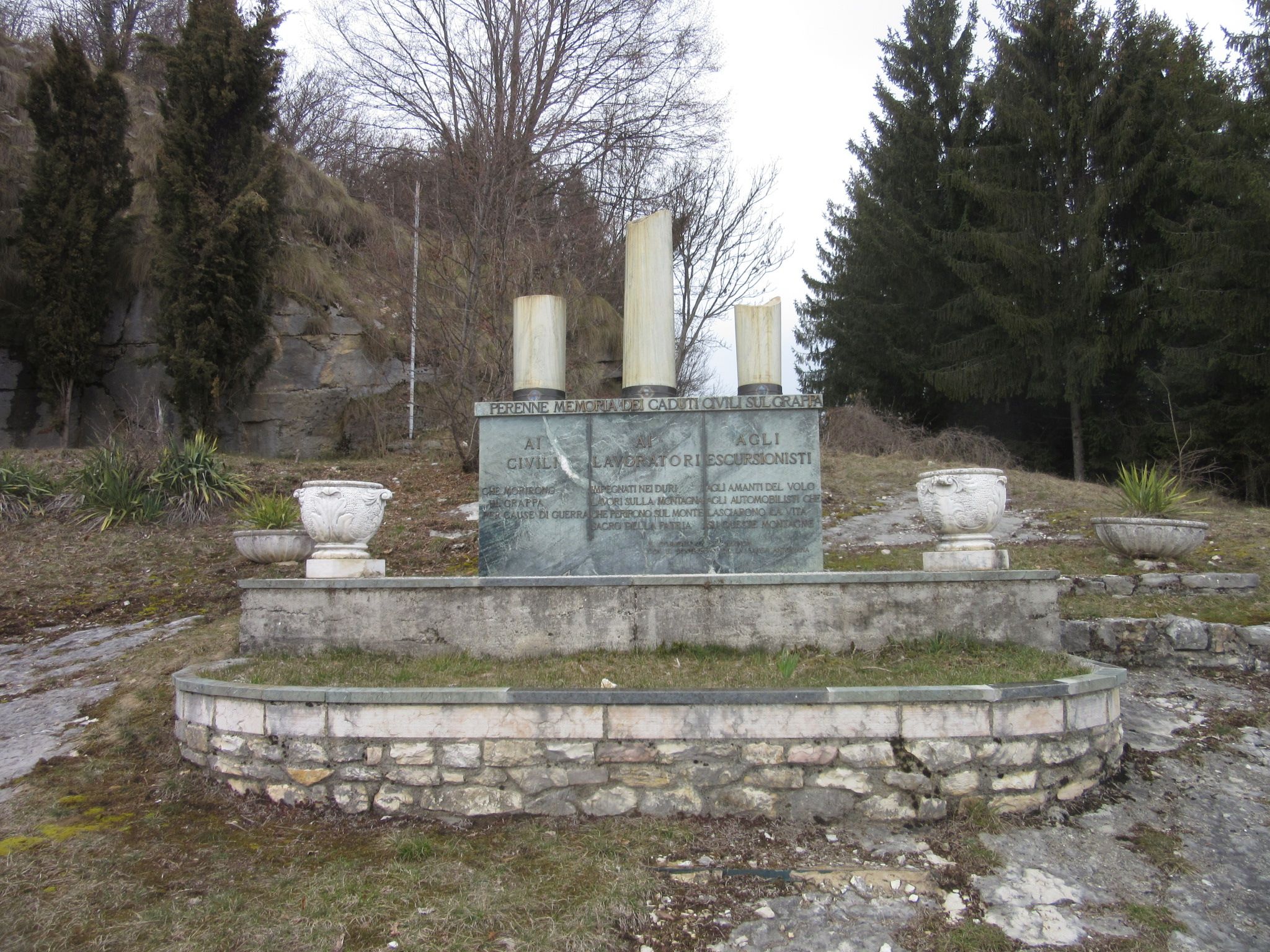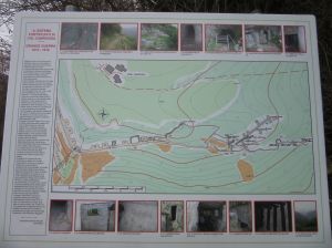 Sul terreno risultano tuttora evidenti i resti degli acquartieramenti ricavati contro roccia negli slarghi della strada militare ed ancor meglio i rifugi incavernati. Dopo aver girato la curva davanti la valle e presa la direzione nord, si incontrano gli slarghi dove erano presenti baraccamenti e ricoveri in pietra e le prime delle nove gallerie che completavano il sistema. Dopo una paio di gallerie a ferro di cavallo, e al termine degli acquartieramenti esterni (baracche e ricoveri), parte una galleria in salita e lunga 35 metri, scavata nella roccia di rosso ammonitico, e dotata di una lunga scalinata incisa nella roccia che conduce ad un pozzo di risalita (osservatorio) posto altre il versante. La scalinata è dotata di un corrimano di corda metallica ed il pozzo si può risalire con una scala di ferro. Un sentiero nel bosco in leggera discesa ci porta, tenendo sempre la destra, al sentiero principale che avevamo lasciato all’ingresso. Si percorre ora una scalinata in discesa e lasciando alla sinistra due ulteriori ingressi di gallerie di modesta importanza, sotto ad una poderosa roccia strapiombante troviamo l’ingresso di una galleria, riconoscibile dai resti di una garrita in calcestruzzo. La galleria, la più articolata e lunga una settantina di metri, fu prevista per la protezione delle truppe durante i bombardamenti. Dopo l’ingresso sotto roccia, si snoda con una serie di allargamenti per gli acquartieramenti. Pregevole è la fattura del muro in pietra, posto all’interno e a destra del corridoio principale, e perfettamente conservato. Curiosi anche i sacchi di cemento pietrificati, con la forma della schiena del mulo, all’ingresso dell’arteria franata a sinistra.