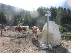 Dopo una buona colazione ci si avvia con calma , il sentiero non presenta difficoltà percorre piccole radure e ampi tratti boschivi di conifere e mughi , con diversi saliscendi poco impegnativi sempre sotto le cenge del Pelmo , molto bello , si incrocia il bivio che imbocca il n.473 che viene usato per la Dolomiti extreme , poi il n.474 che porta al Palafavera , e come ultimo quello che porta alle orme dei dinosauri , una roccia scolpita dalle zampe dei dinosauri a circa 30 minuti dal sentiero principale , si continua verso il passo Staulanza , non ci sono difficoltà in questo sentiero e risulta anche veloce da percorrere , diverse passerelle permettono il passaggio di alcuni punti dove l’umidità ed il fango la fanno da padrone , fino a raggiungere il Passo ed aver completato il nostro anello del Pelmo.