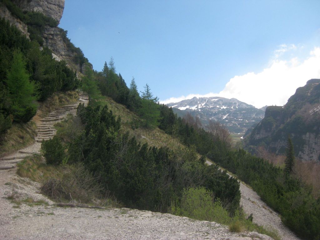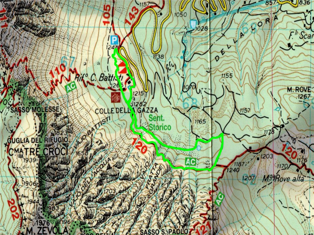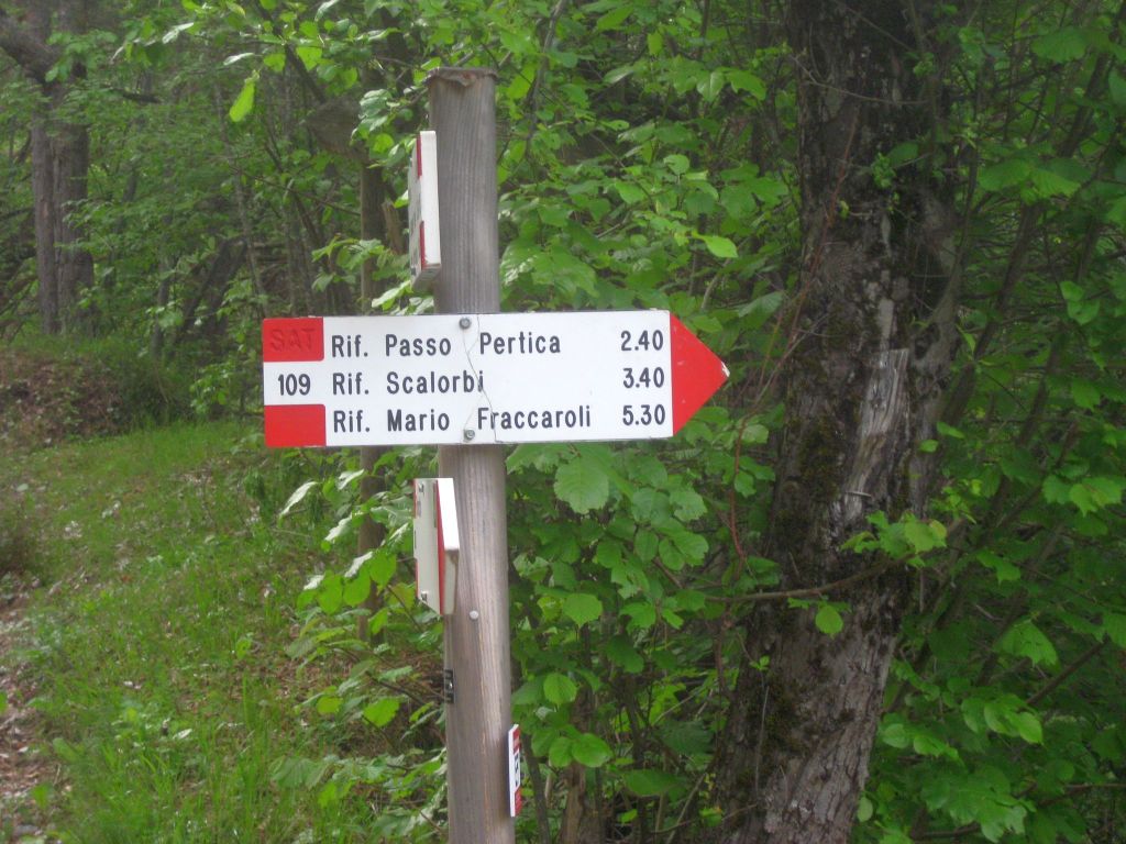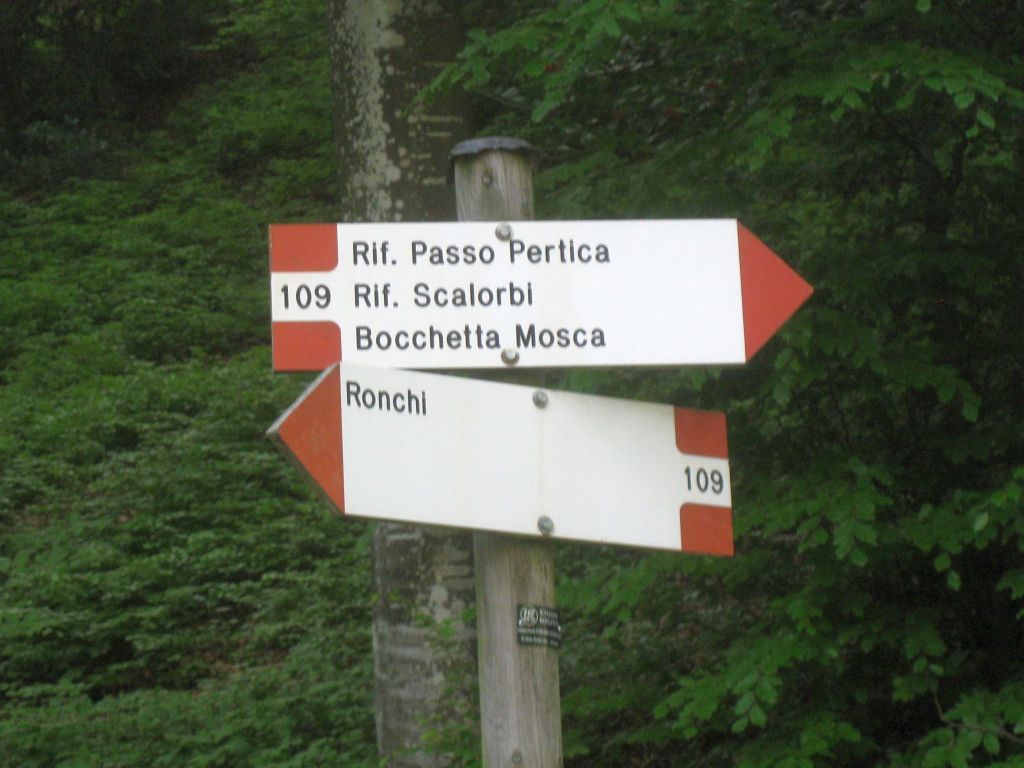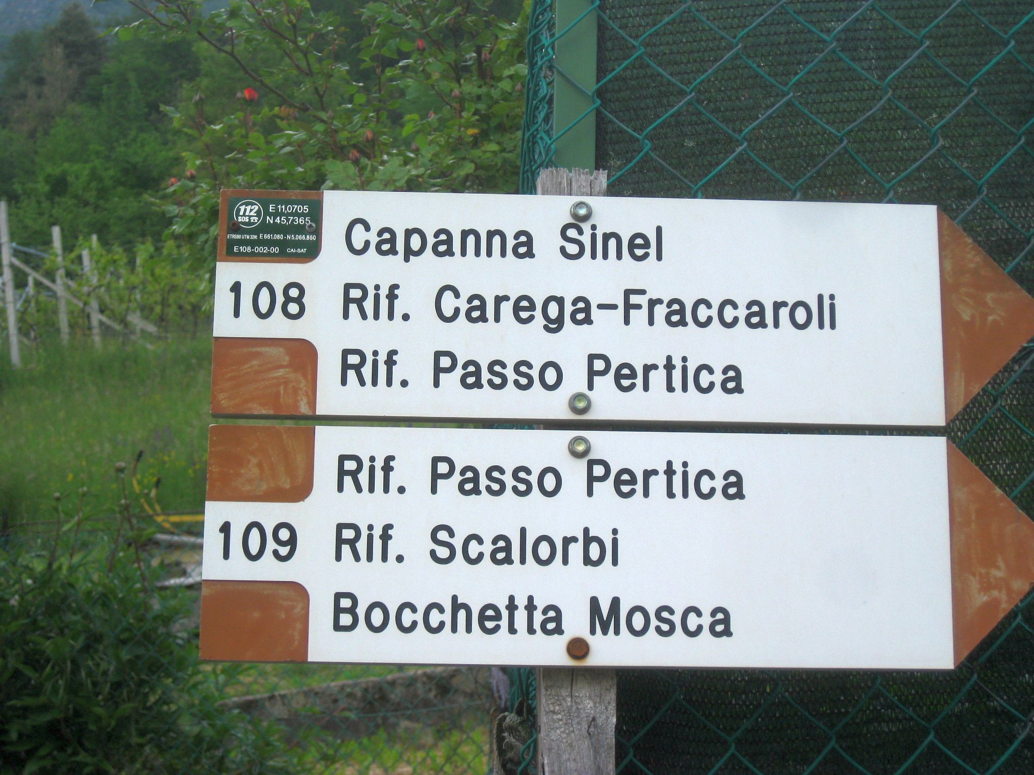 Questo percorso inizia perlopiù su strada asfaltata per poi superata l’ultima Contrada Ronchi 813 m, si entra in una mulattiera che sale e scende maniera abbastanza costante per i primi km, risalendo attraverso pascoli, si incontra l’ultimo abitato Schincheri per poi entrare nel bosco e passare sotto alcune cenge dove scende anche un torrente, si continua nel bosco fino a raggiungere una bellissima fora, ovvero una cascata abbastanza alta è un lungo serpente che si insinua in questo Canyon, usciti da questo l’uovo si inizia alle salire verso malga Brusa quota 892 m. Raggiunta la malga il sentiero riprende senza particolare difficoltà su mulattiera per poi raggiunto il bivio, iniziare in maniera molto ripida arrivando così nella parte principale è più difficile fino all’arrivo al rifugio Pertica 1522 m. all’inizio si presenta boschivo poi man mano che si sale, il bosco lascia la parte ai mughi e rododendri fino a raggiungere tratti detritici di rocce e poi incrociare il bivio con la via attrezzata Angelo Poiesi e da lì poco raggiungere rifugio Pertica . Superato anche il rifugio si prosegue per le mulattiera carrareccia che ti porta direttamente al rifugio Scalorbi a quota 1767 m, La mulattiera presenta anche alcune scorciatoie, ma se si volesse salire dal 108 costa media non si devono imboccare le scorciatoie altrimenti si supera il segnavia di partenza del sentiero. La strada non è difficile si nota Il rifugio anche a distanza e si impiega circa 40 minuti per raggiungere il rifugio. Raggiunto il rifugio si può godere dello spettacolo verso la pianura vicentina verso il rifugio Cesare Battisti verso il Pasubio e verso altre mete circostanti , il sentiero poi prosegue fino a raggiungere Bocchetta Fondi a quota 1900 m finendo cosi la sua lunga traccia. Entrando poi nell’itinerario 157 che sale da Campogrosso e prosegue raggiungendo il Rifugio Mario Fraccaroli . Il ritorno può essere fatto dello stesso sentiero, ricordo che la pendenza è la lunghezza di questo itinerario è di notevole entità resta quindi l’escursionista di capire e di conoscere le proprie potenzialità allo scopo di riuscire ad effettuare anche il ritorno senza problemi.