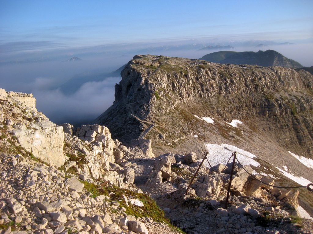 Sono una persona fortunata , forse anche un pò coraggiosa , mi piace vivere le emozioni di un’alba in quota , qualcuno mi può dire : ma va la sono solo cavolate . Ieri la mia notte è iniziata così , ore 00.30 mi trovavo con l’auto al Pian delle Fugazze , tutto era pronto , tenda e sacco a pelo , la temperatura era ideale per salire , ho scelto la via più semplice non credo che occorra rischiare di trovare neve salendo su una via più corta ma piena di insidie, salendo in quota ho pensato che visto ho un ‘ora solo per dormire potrei usare il bivacco Sacchi Marzotto , verso le 4.10 ho iniziato a prepararmi per uscire ed ammirare il sorgere del sole , quasi non l’avessi mai visto , ma si sa le emozioni non sono sempre uguali e non si accendono con un pulsante , poi ho proseguito nel mio cammino , volevo una giornata memorabile a casa , lo è stata , le mie rocce che ho toccato più volte con le mani , in mezzo a quel’immenso verde speranza dei pascoli di alpe delle pozze , per poi una breve sosta per un caffe al rifugio Lancia , te lo devo fare con la moka ha detto Paolo , ok va benissimo , per poi proseguire ancora con la voglia di riempire gli occhi di quella cosa che è mancata molto La Montagna , proseguendo su alpe Alba altro spettacolare pascolo su un altipiano grandioso ,dove le piccole malghe rustiche rendono questo luogo magico , quasi fossero casette degli gnomi. Come sono solito fare ho preso il mio solito classico “sentiero a ocio” che i miei amici conoscono bene perché complica loro la vita , ma io la montagna la voglio sentire dentro che circoli libera nelle mie vene , poi attraverso la Val del Trughle una salita impervia e non segnalata raggiungendo così la Sellette del Dos dell’anziana e poi col Santo 2112 m , ritornando per ora di pranzo al Rifugio Lancia , poi via verso il rientro pur sempre lungo ma con occhi e cuore pieni di emozioni raccolte per poi attraverso l’incudine e le sue creste scendere fino al Pian delle fugazze contento e sereno per questa giornata incredibilmente fantastica . Memento audere semper diceva Gabriele D’Annunzio .