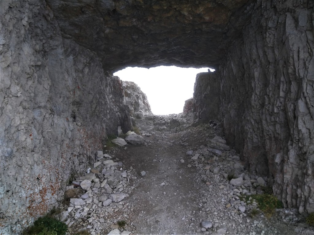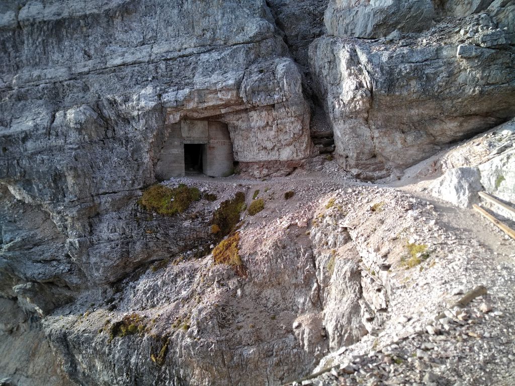 Ideatore di questa Galleria fu il Generale Segato , fu scavata per poter raggiungere il Sasso di Sesto conquistato dagli italiani anche nelle ore diurne riducendo cosi l’esposizione al fuoco nemico , di evitare la parte sotto il paterno soggetto sempre a valanghe , e con le feritoie poteva essere punto di osservazione verso la forcella Lavaredo, gli austriaci tentarono di impedirne i lavori e di riconquistare il Sasso di Sesto l’imbocco veniva dalla selletta della salsiccia attraverso una scala , mentre il pezzo che partiva dal Cadin del Passaporto risulta franato.