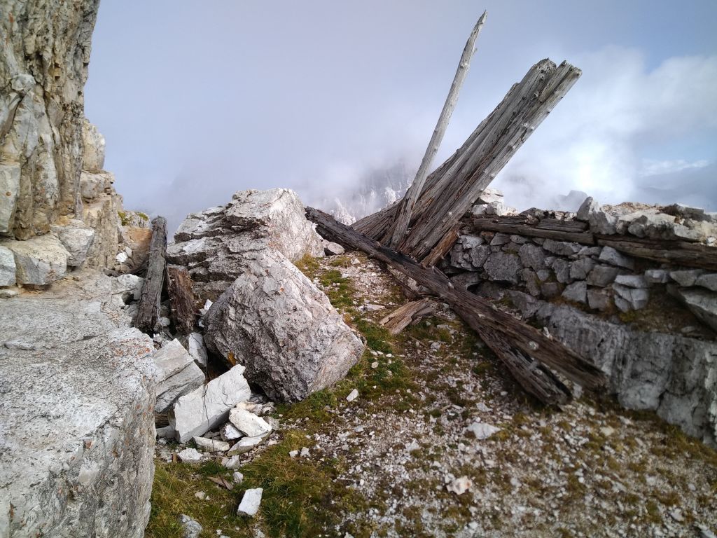 Non era ancora giunto l’inizio della guerra in questo luogo , ma i preparativi sulle due forcelle erano in preparazione , verso le 8.45 un grosso rombo dal monte Piana e dal Monte Rudo che gli austriaci avevano trasformato in fortezza , partono i primi due colpi , il terzo shrapnel colpisce in pieno due alpini, i primi caduti sul fronte del Cadore, un forte sibilare di granate mentre il 25 maggio una granata colpisce in pieno la casermetta sui piani di Lavaredo , è il momento di rispondere , sulla casermetta del Dreizinnenhütte sventola la bandiera della Croce Rossa , gli italiani sono convinti che sia una copertura per un deposito di munizioni e qualcos’altro , e si apprestano a portare l’artiglieria sulla Forcella Lavaredo e aprono il fuoco , dopo alcuni colpi rettificano il tiro ed al quinto colpo lo centrano in pieno incendiandolo ; sul Paternò la Guida alpina della val di sesto Sepp Innerkofler con Andreas Piller per poter controllare la precisione del tiro austriaco sulle posizioni italiane , mentre vede con amarezza che la sua casa arde colpita dal quinto colpo d’artiglieria italiana, e lui il proprietario del Dreizinnenhütte sorto nel 1882 che ha fatto la storia dell’alpinismo dolomitico.