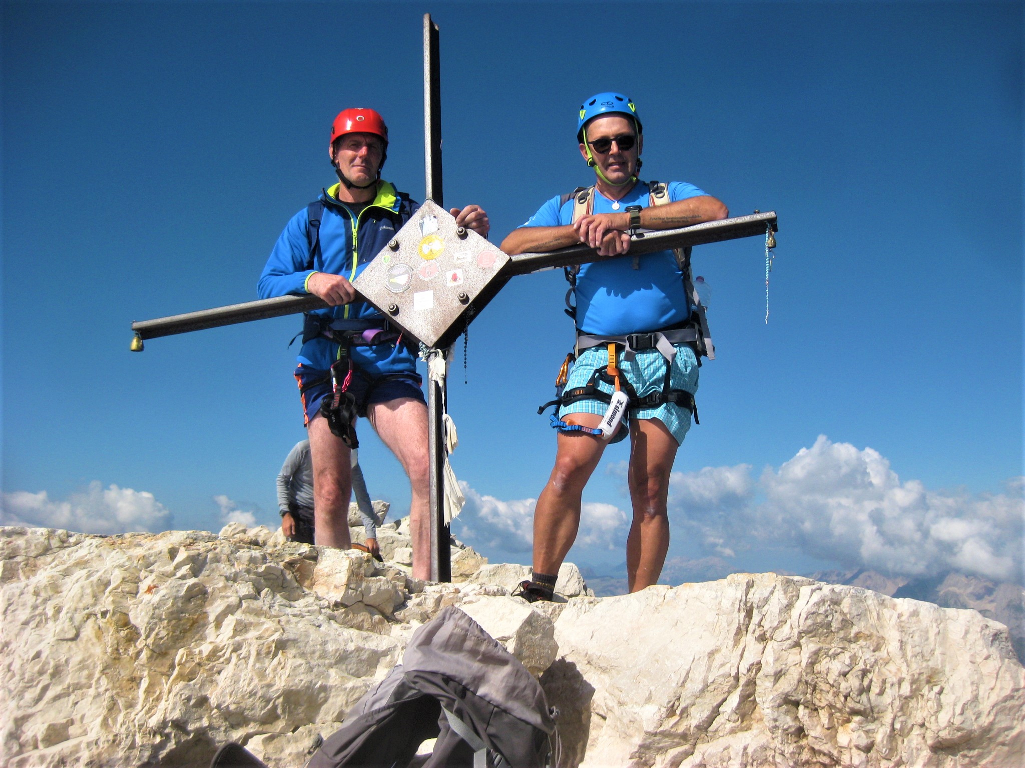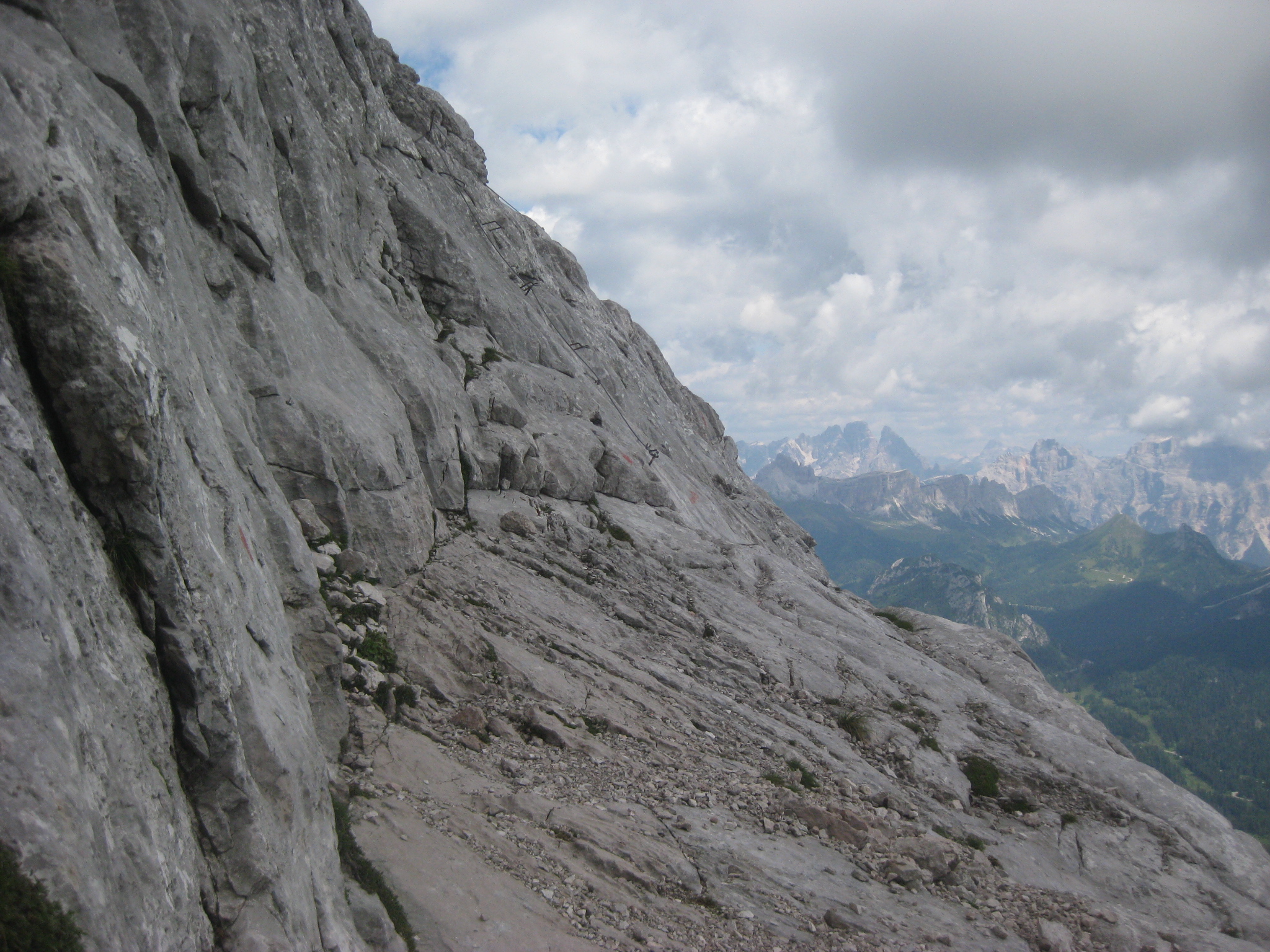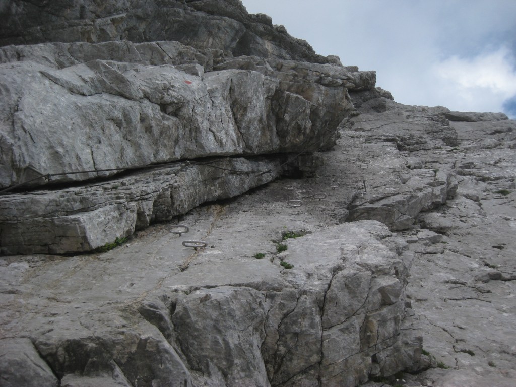 Percorso molto bello che porta in una delle più belle cime del Gruppo Moiazza Civetta , privo di difficoltà tecniche , qualche tratto attrezzato e in cui bisogna prestare un pò di attenzione , panorami e scorci mozzafiato sempre tempo permettendo. Si sale lungo il sentiero ai piedi delle rocette fino ad incontrare circa 400 metri dopo l’attacco della via composto da un piccolo risalto e dalla prima corda di acciaio, che sale con gradoni molto semplici in cui posizionare piedi e mani , ed una vista verso Zoldo molto bella, si prosegue fino a raggiungere un primo tratto pianeggiante per poi affrontare una corda di circa 25 metri del Passo del Tenente o Grunwald ,si continua a salire con tratti attrezzati ma poco difficoltosi grazie ai gradoni di roccia , e qualche traverso in cui prestare attenzione , spettacolare la composizione della roccia segnata dal tempo e dagli eventi atmosferici. Si entra in un canalone detritico passando sulla sinistra dello stesso ed affrontando una tratto leggermente più difficile , semplificato da chi ha le gambe lunghe , fino a raggiungere un caminetto di circa 4 metri per poi completare l’ultima parte più ripida , raggiungendo cosi gli ultimi 300 metri che portano al Rifugio Torrani 2984 m, in leggera salita, si prosegue praticamente su un sentiero detritico fino a raggiungere la vetta del Civetta a 3220 m , dove lo scenario incredibilmente unico a 360° riempie gli occhi ed il cuore di emozioni uniche e indescrivibili,