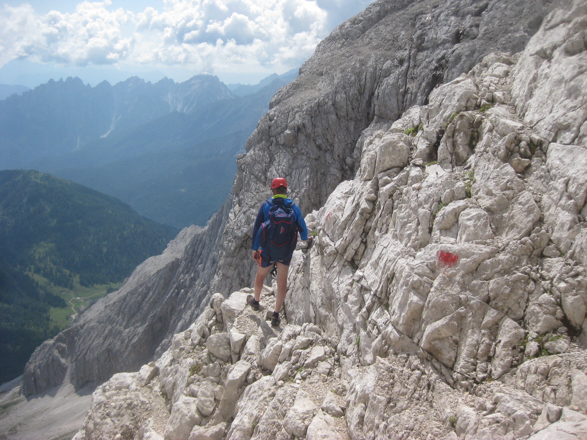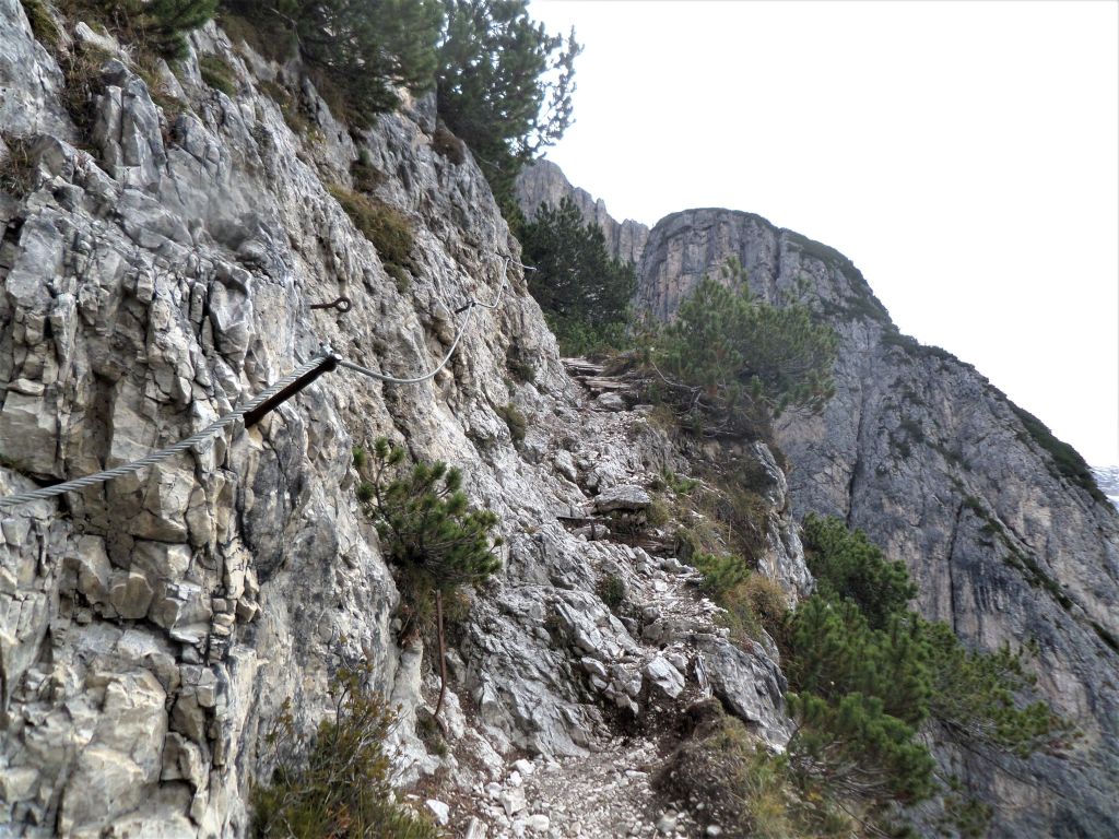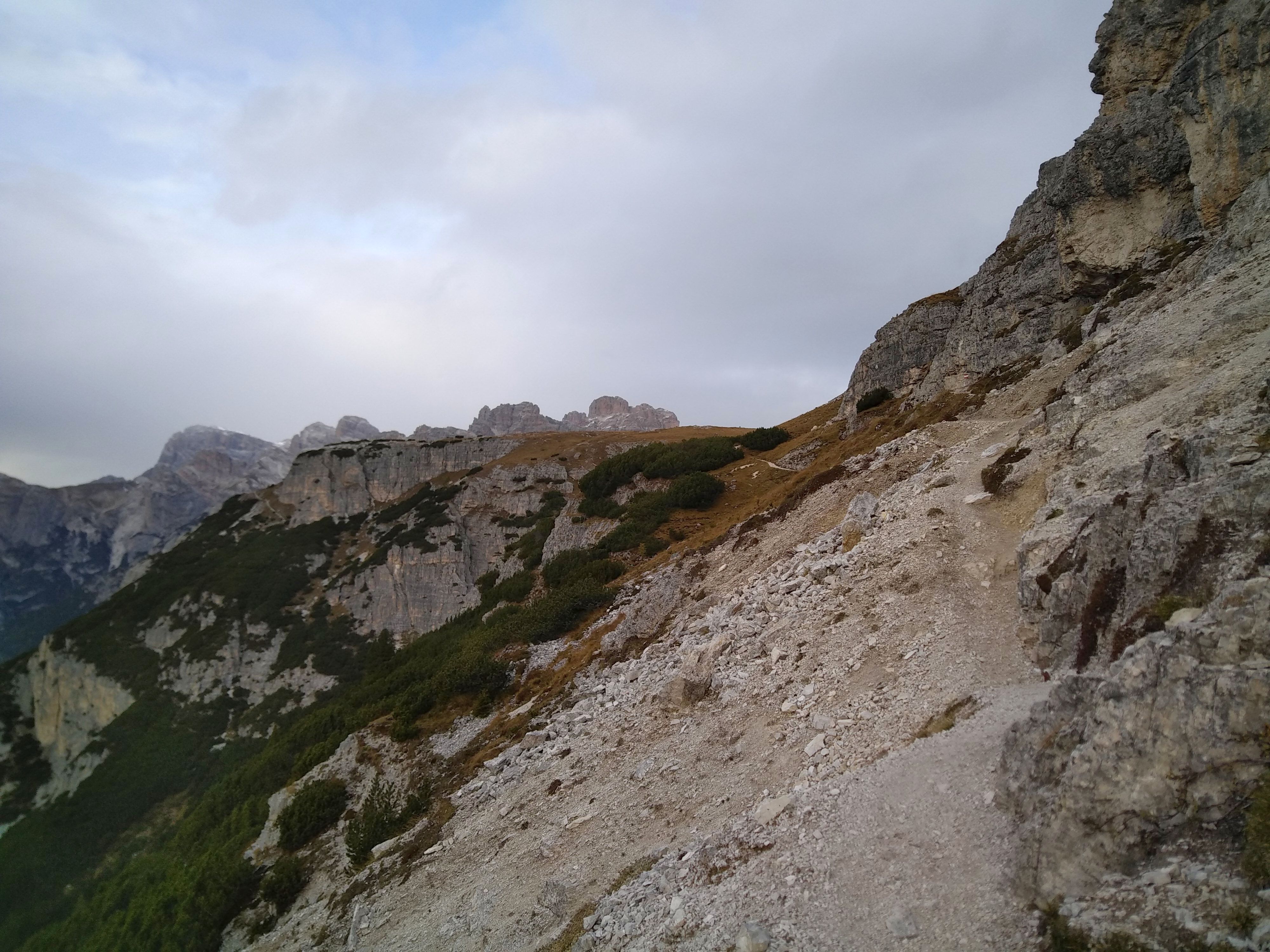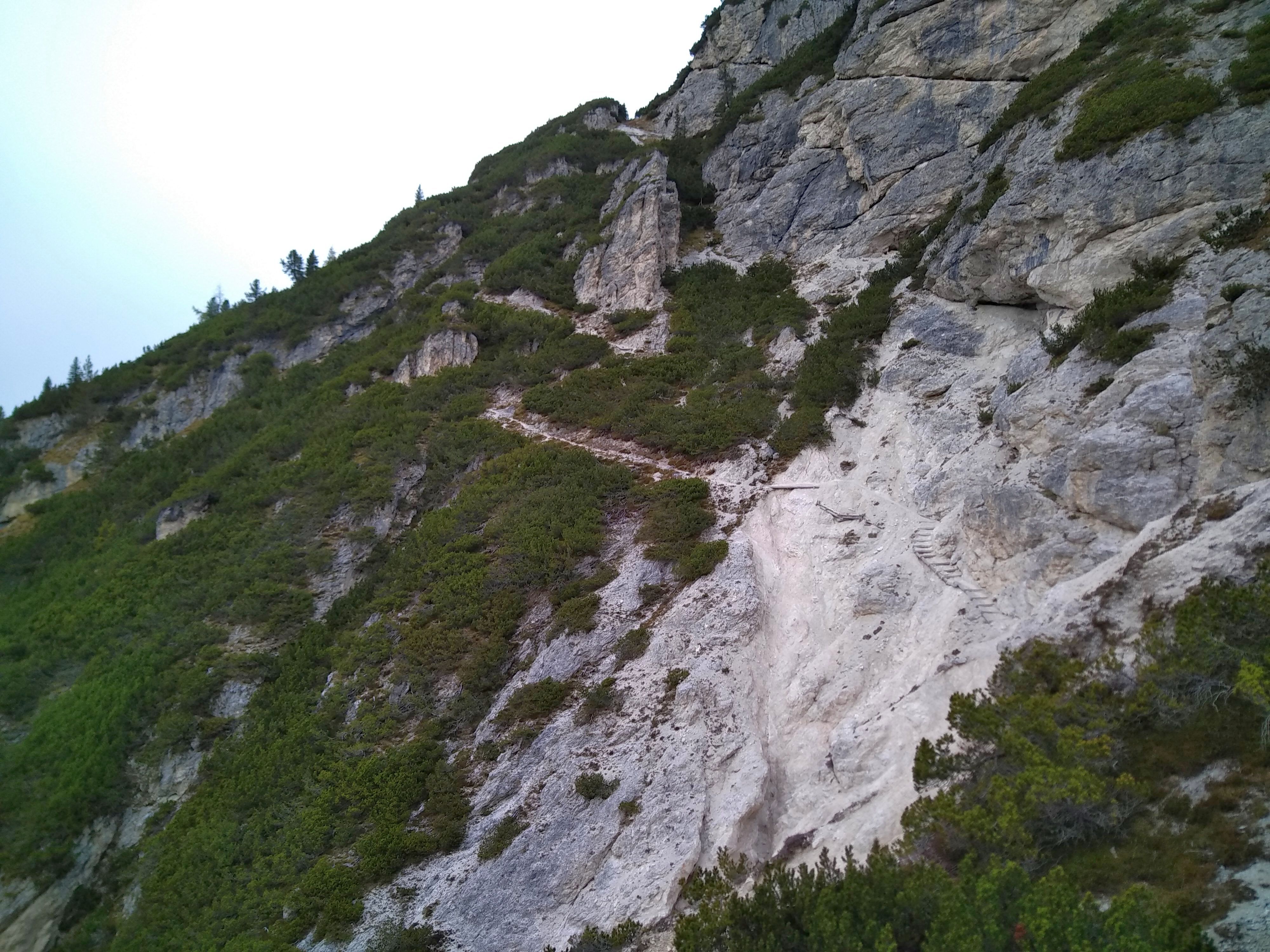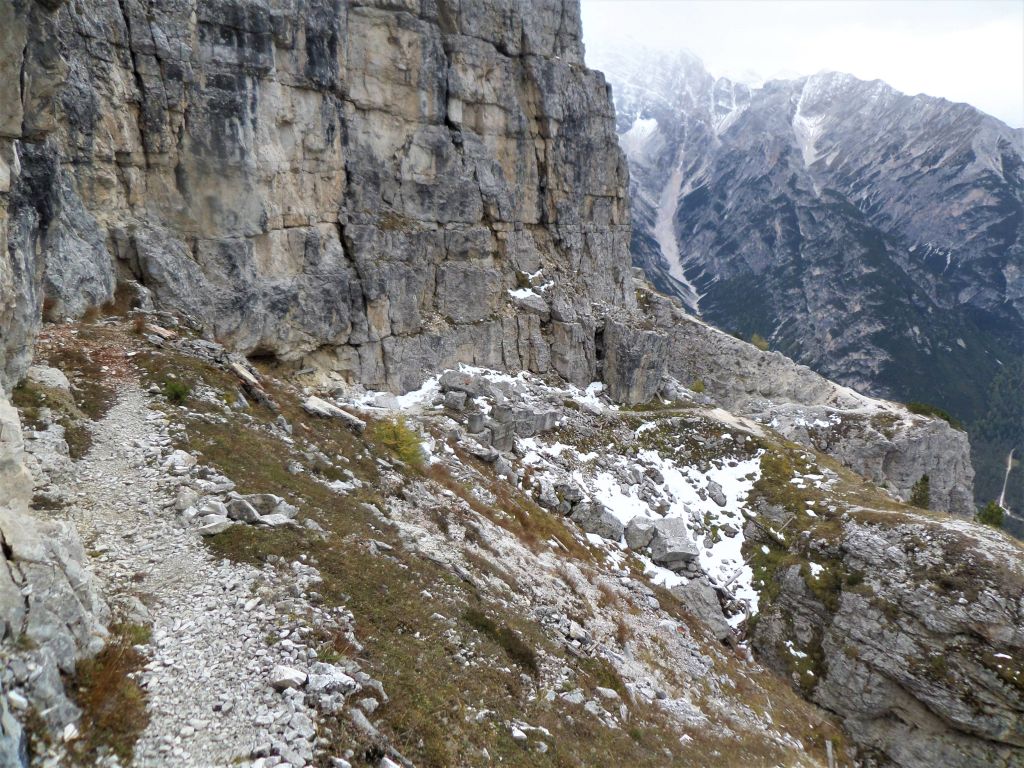 Una doverosa considerazione dev’essere fatta , si chiama sentiero dei Turisti ma non per questo si può prendere sottogamba, è un sentiero di tutto rispetto. Si parte dal lago di Landro 1406 m, in piena vista della Val della Rienza e Tre Cime, si sale dapprima sul fondovalle ghiaioso, letto fluviale, verso il ponte della Marogna dove inizierà la salita, molto panoraamica come del resto la via dei pionieri si sale su un crinale quasi a strapiombo nella valle di landro, la salita iniziale in mezzo a un boschetto con mughi , dove il sentiero si snoda e poi zizzagando sale fino a raggiungere un tratto esposto a slavine , su ghiaino fino anche abbastanza stabile ed alcuni passaggi con corde ma poco difficili per poi entrare nella parte più bella priva di vegetazione e con scalini in legno fisaati nella roccia e passaggi stretti sotto la cima del monte Piana 2324 m, si prosegue nel traverso fino a raggiungere la forcella dei Castrati 2272 m, situata tra le quote di Monte Piano e Monte Piana .