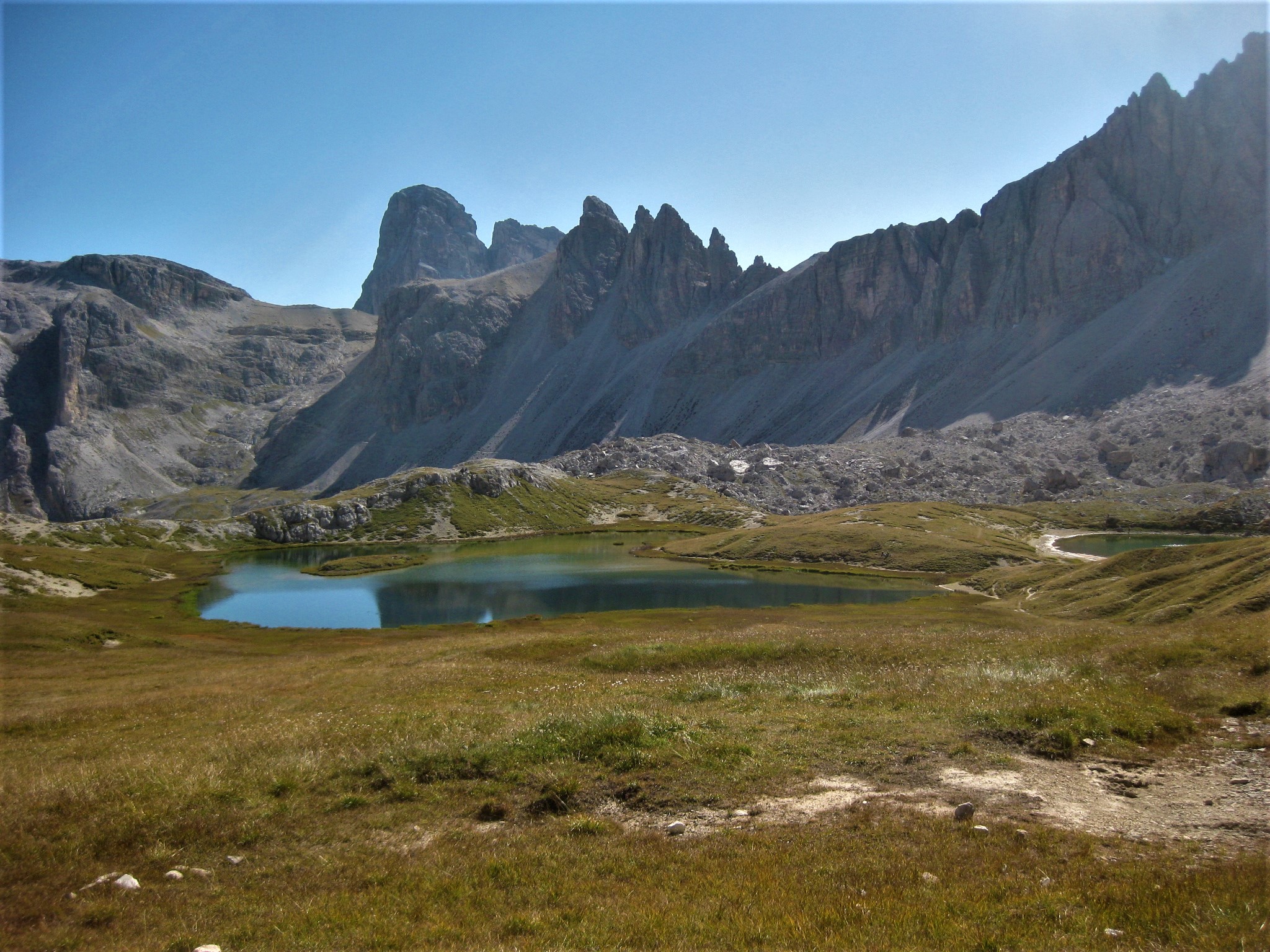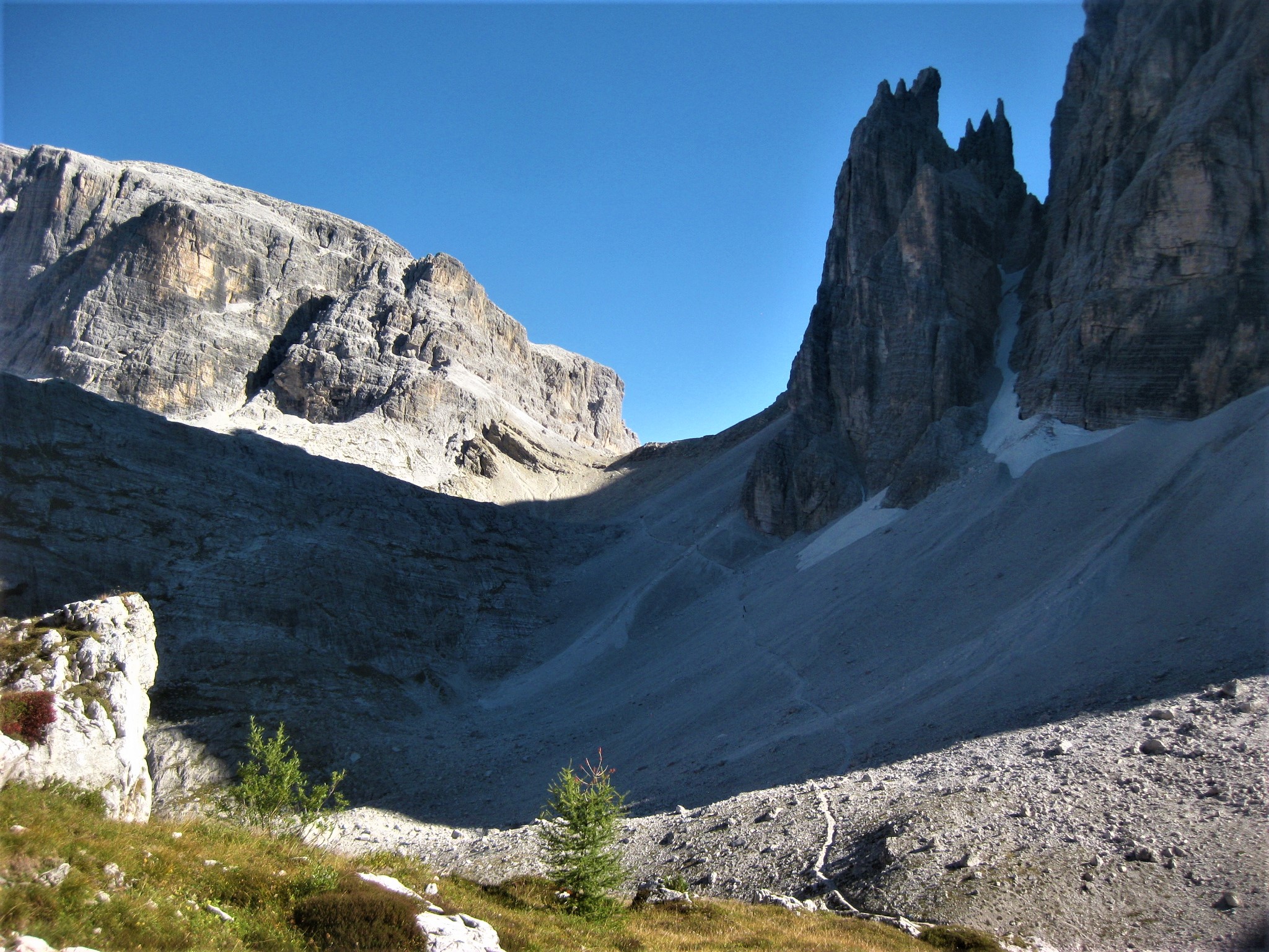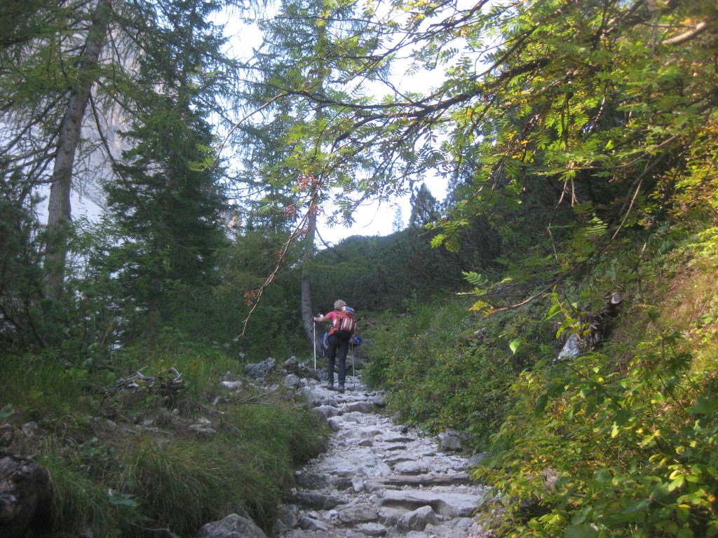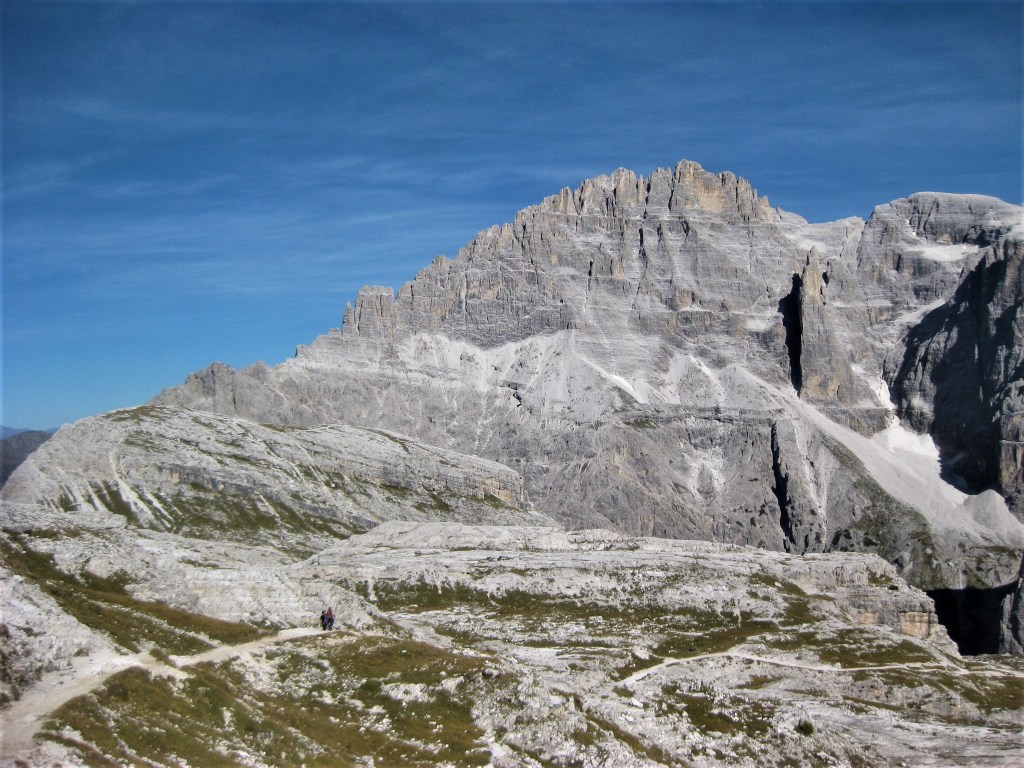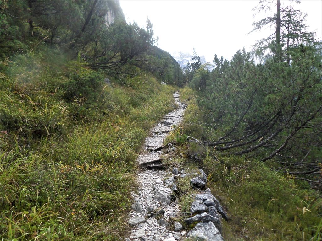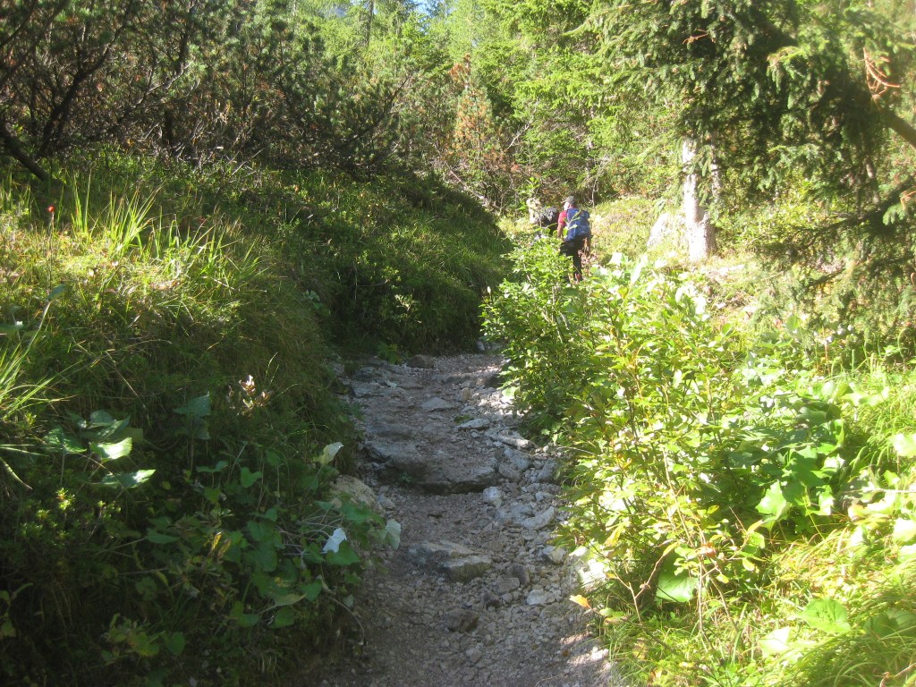 Uno dei percorsi più belli per salire al Rifugio Locatelli Innerkofler 2405 m , si parte dal Rifugio Fondovalle 1548 m, il sentiero poco difficile e molto variegato , presenta passaggi molto belli nel suo primo tratto boschivo per poi salendo sempre privo di difficoltà su tratti rocciosi per poi culminare sull’Alpe dei Piani . Il tracciato sale su un terreno sassoso, ma piacevole in mezzo ad una vegetazione molto variabile , dai mughi alle pinete di abeti ,transitando sul lato destro di un piccolo torrente, mentre man mano che si sale si allontana dallo stesso nel punto in cui la pendenza inizia un pò ad aumentare senza mai divenire ostica e difficile, raggiungendo questo tratto si potrà notare la cascata proprio a ridosso del boschetto, dove anche la pendenza si farà un po più severa e sulle cengie circostanti si ammirerà la Cima Fiscalina e la Cima dell’Uno mentre giusto davanti si vedrà la croce de Paterno 2746 m. All’uscita del canalone a circa 2025 m lo scenario cambia ancora divenendo fatto di rocce e mughi, dove apparirà davanti la Torre di Toblin e il Sasso di Sesto teatro di cruente battaglie alla baionetta, per poi infine raggiungere il tratto prativo a ridosso dell’Alpe dei Piani e degli omonimi laghi, dove uscirà anche la sagoma delle Tre Cime di Lavaredo e il Rifugio Locatelli Innerkofler 2405 m.